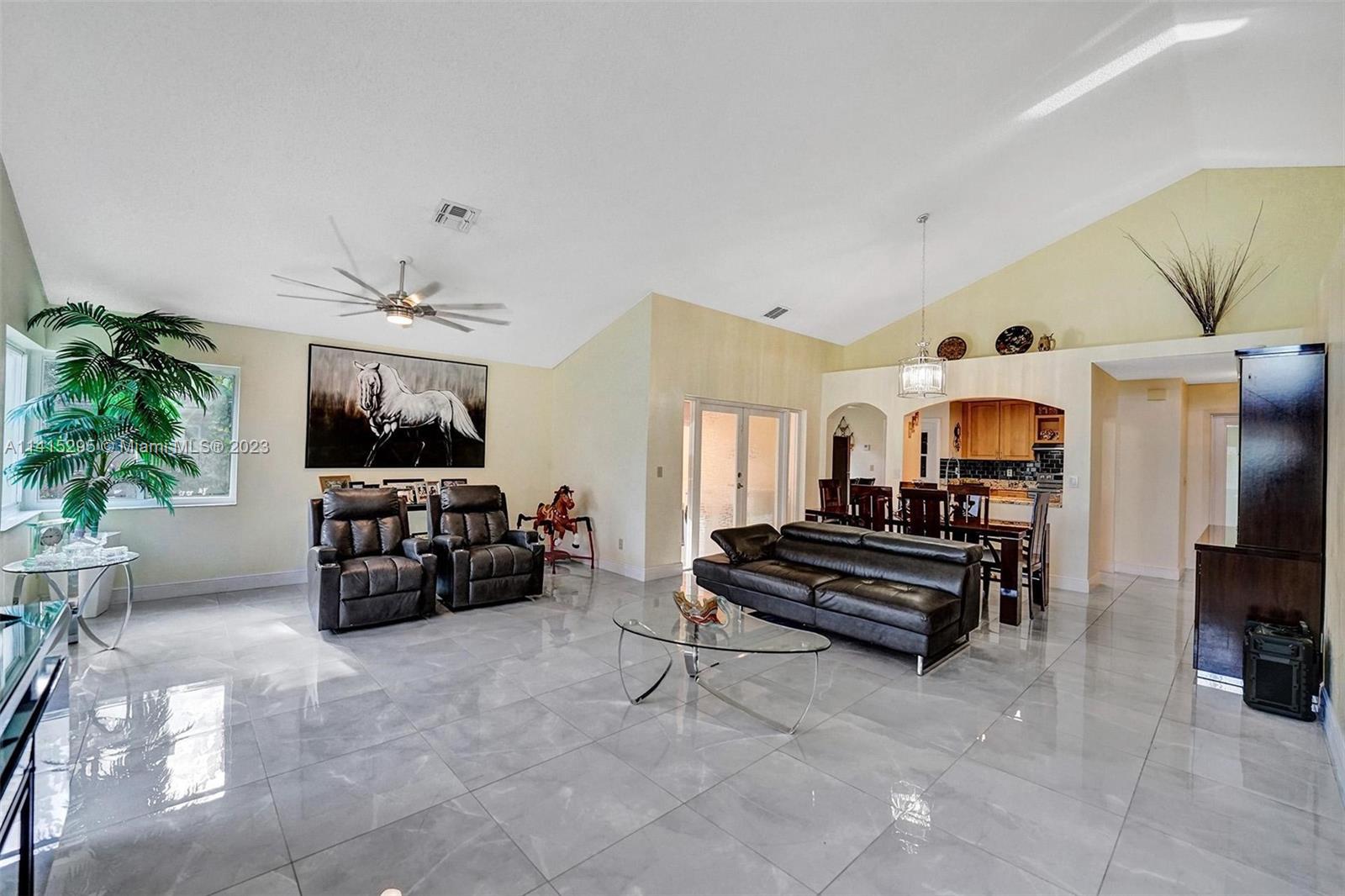 This immaculate 2 bedroom 2 bathroom home features impact windows and doors (2023), tiled throughout, vaulted ceilings, remodeled guest and primary bathroom, eat in kitchen, lots of natural light! Backyard features huge screened in porch with plenty of room for outdoor entertaining! Additional screened in porch off dining room with water & electric! Upgraded lights and fans! Walking distance to community pool! Located in a top school district (Silver Ridge, Indian Ridge & Western High)! Centrally located for easy access to major highways and only 15 minutes from FTL airport & beaches! Community features pool, tennis, basketball and pickle ball courts! Ridge access at front entrance with trails that take you to Tree Top Park! Okay to lease!