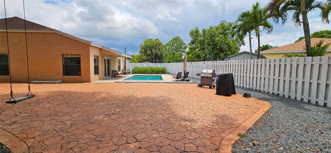 Gorgeous, well-maintained single-family 3 br/2ba home. Location, location, location! Tax roll shows 9526 S.F. lot size; but just look at the lot- pool, back yard, side yard, front yard. WOW! The pictures speak volumes for what you're about to purchase. The exterior is a tropical oasis, just screaming "SERENITY NOW". It includes a private, underground salt water pool. Fenced, private side and back yard, with room for a family backyard barbeque or gathering, and for the kids to play. Plenty of front and side parking space when you have guests. It even has an additional storage shed. Front door and sliding door are hurricane-proof. Showings: NO SHOWINGS AT THIS TIME