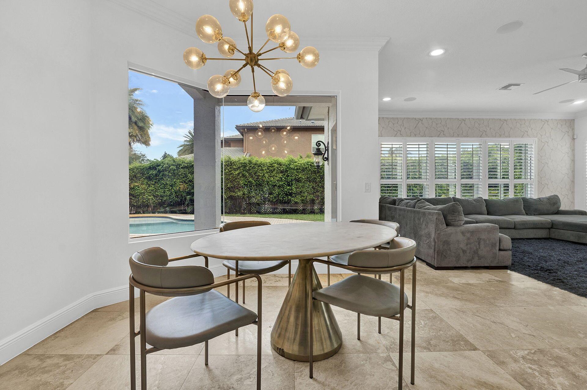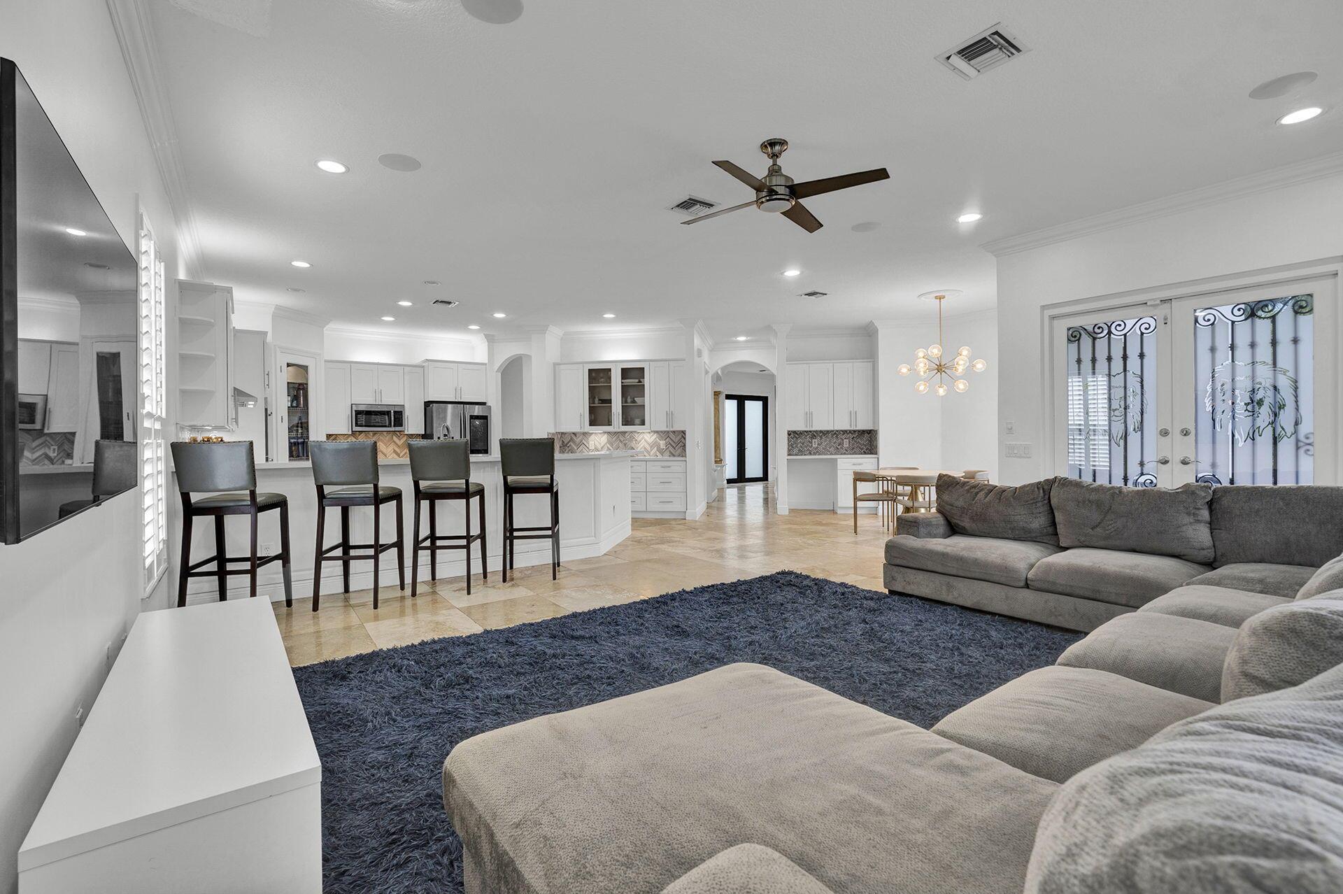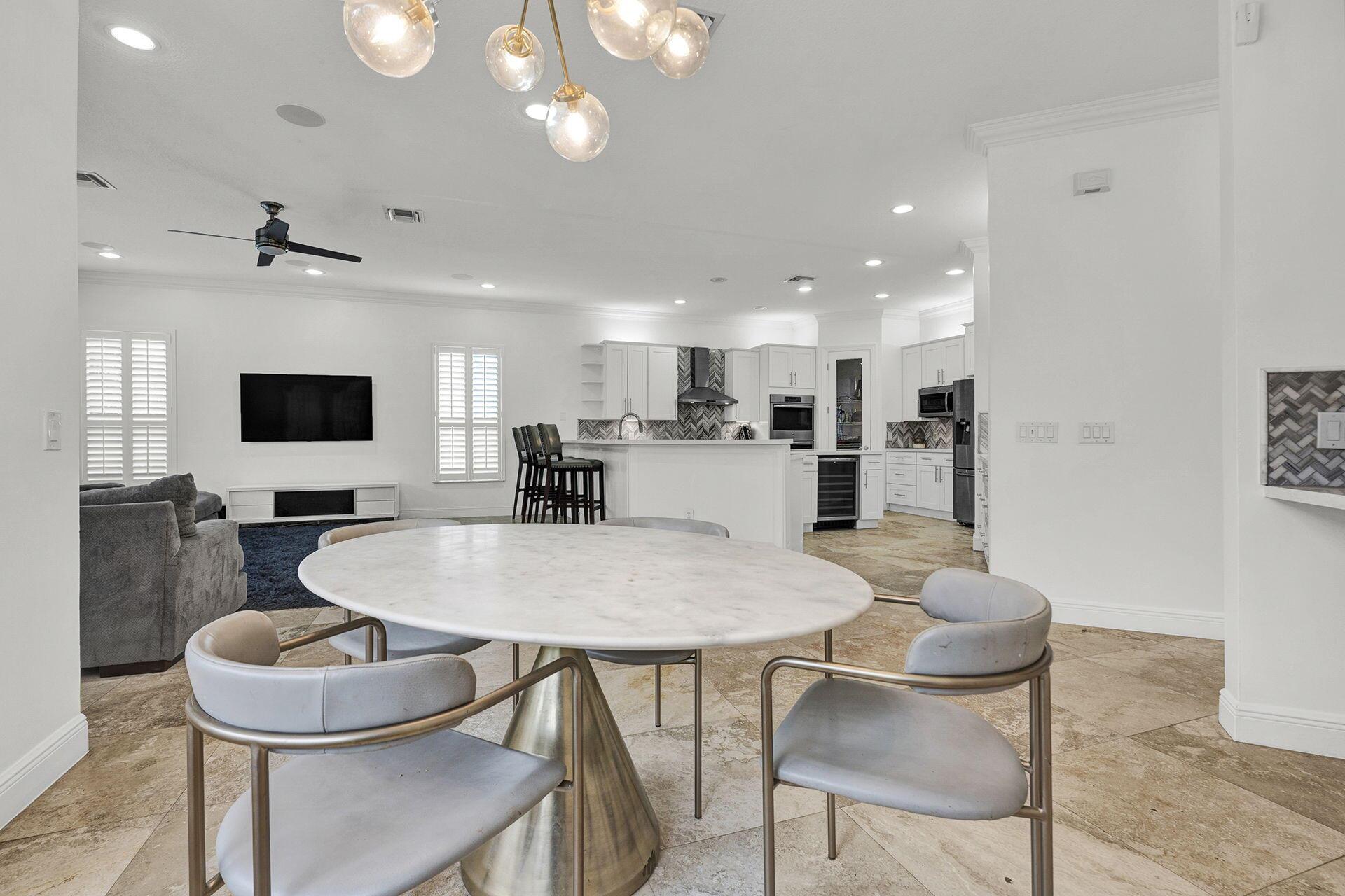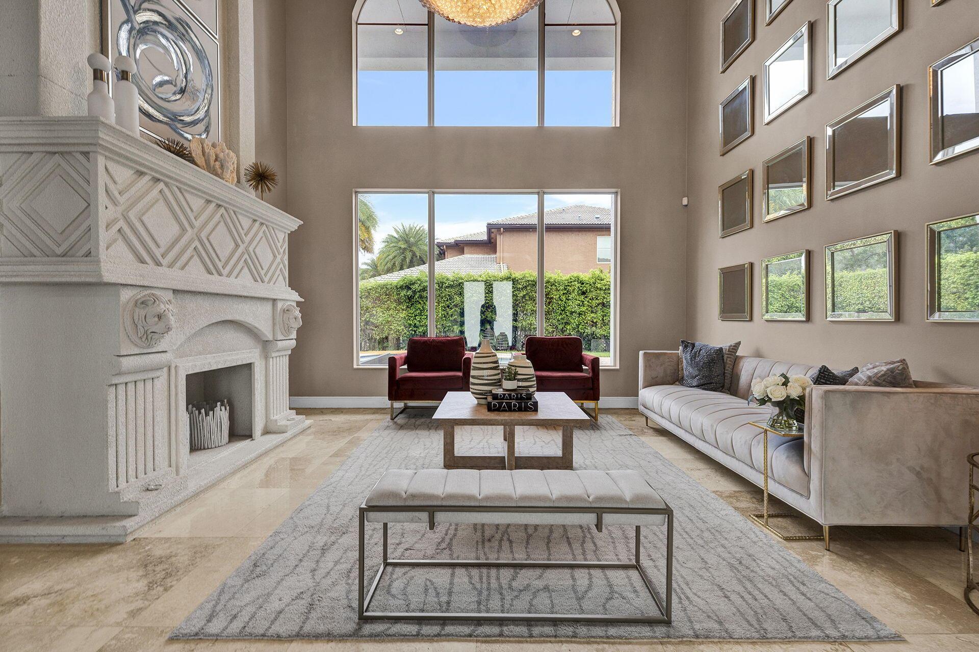 Welcome to this exquisite luxury home, a masterpiece of elegance & opulence. As you approach the grand entrance, the sight of this architectural marvel takes your breath away. This sprawling 6 bedroom, 4.5 bathroom residence is a testament to luxury living at its finest. Upon entering, you're greeted by soaring 20 foot ceilings with the stunning marble floors that stretch across home. The open floor plan leading you to the heart of the home: the custom-designed kitchen. High-end appliances seamlessly blend with custom cabinetry & granite countertops, creating a culinary haven that is both functional & visually striking. This home has been designed to embrace outdoor living & the backyard with private sparkling pool and meticulously manicured landscaping.
