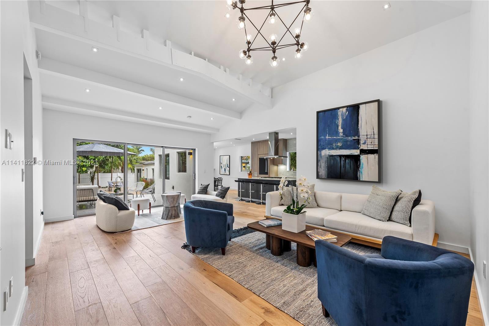 Be the First to Live Here! Best priced home on prestigious Pine Tree drive! This chic modern residence is remodeled & ready for you. After a total gut renovation, this home was completed in 2023 & is equipped with all new electrical, plumbing, impact windows & doors, & A/C. Inside find a spacious open floor-plan w/5BD + den, 4.5BA, sun-filled interiors, high Cathedral ceilings in the great room, wide-plank oak hardwood floors, primary suite w/walk-in closet & gorgeous bathroom, & a custom Italian gas kitchen by Pedini w/quartz backsplash, huge island, & top-of-the-line Miele, Viking, Wolf, & Monogram appliances. Outside enjoy a private fenced backyard w/a heated saltwater pool, summer kitchen w/sink & pizza oven, lush landscaping, & ample parking + plans for garage expansion included.