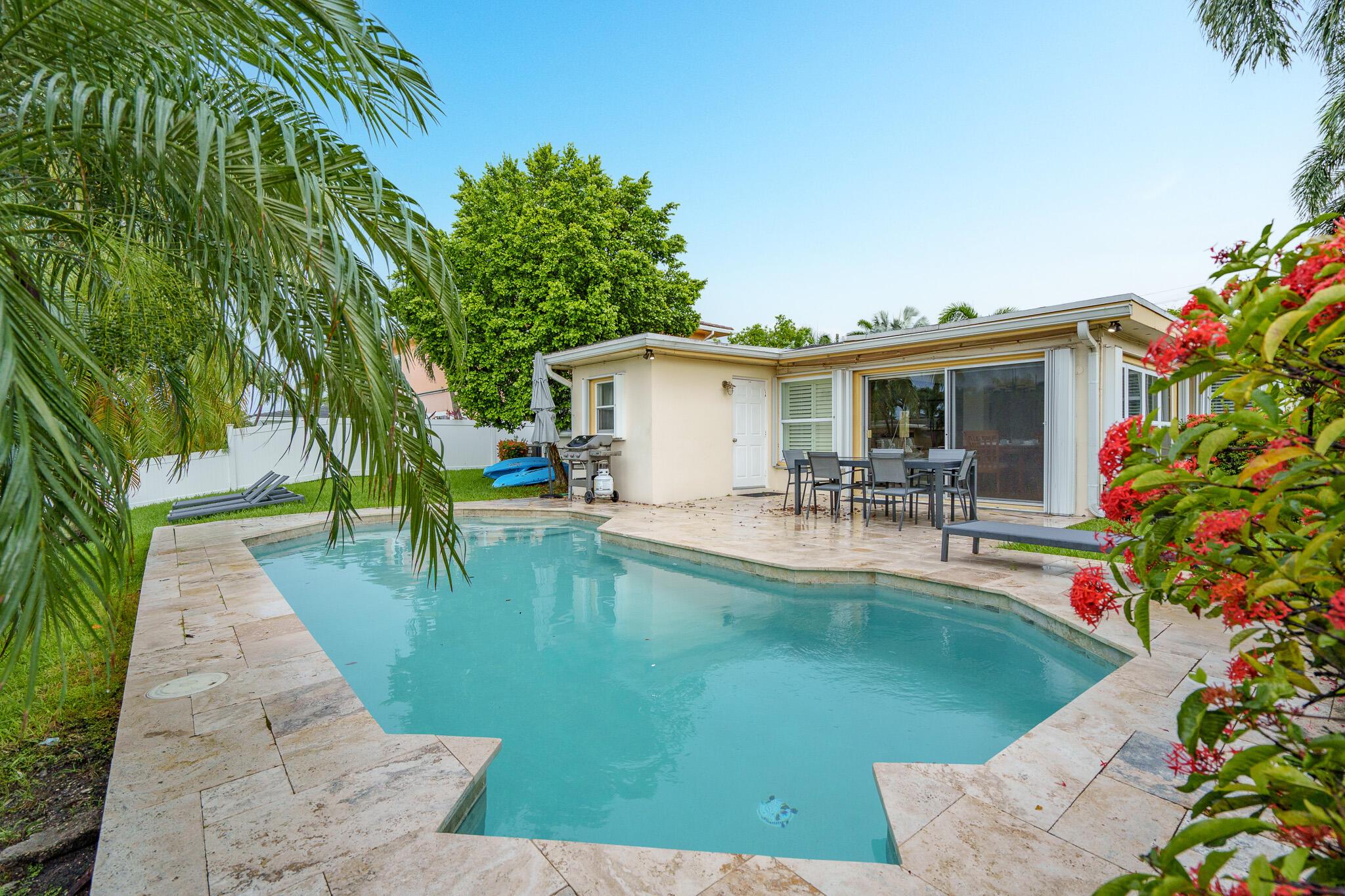 Exquisite Remodelled 3/3 Ocean Access Waterfront Home: A Captivating HavenDiscover the allure of this impeccably remodelled 3/3 ocean access waterfront home, an enchanting retreat that combines modern elegance with waterfront living. Nestled on a serene waterfront location, this property boasts a generous 70 feet dock, complete with 120v power and pole-top lights to enhance your boating experience.As you step into the 12-foot ceiling tower entrance, you'll be greeted by a luxurious marble foyer that sets the tone for the captivating design that awaits. The home's thoughtful layout encompasses a pool area with a stylish cool deck, providing the perfect spot to unwind and enjoy the tranquil surroundings.A great master bedroom and a spacious walk-in closet suite offer a private sanctuary