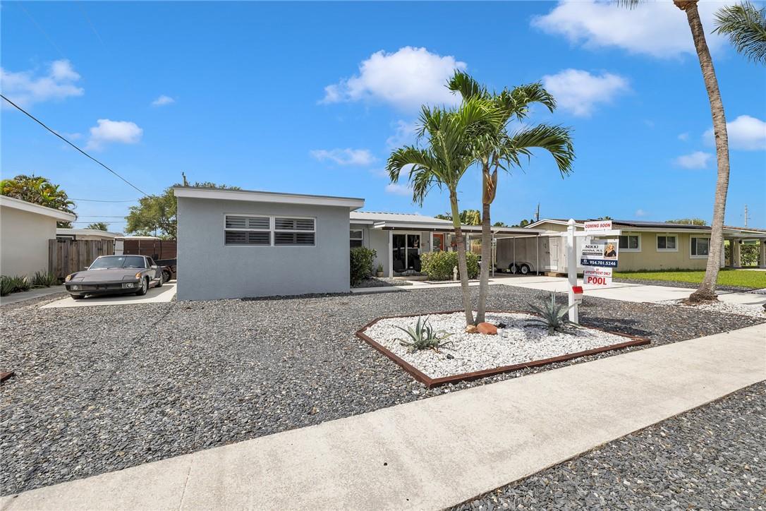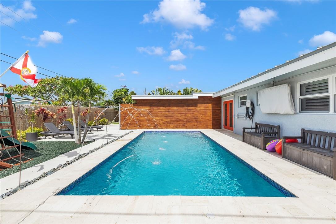 Your new home awaits you in Fort Lauderdale, Florida. Live in this turn key adorable home with a 2022 metal roof, beautiful new bathrooms, open kitchen, new luxury vinyl flooring and impact windows and doors. Enjoy summer nights by the heated saltwater pool, a custom playground area with rubber chip flooring, a lounge area, a separate outside bathroom and shower off the pool. The main home features 3 bedrooms and 2 full bathrooms. A big bonus is an attached 1/1 studio apartment with it's own entrance & little yard. Park your car under a covered car port and enjoy a circular driveway and a side driveway for all of your toys. All Tv's, floating entertainment center and patio furniture stay with the home. No HOA. Close to the beach, 595, Florida turnpike and more!