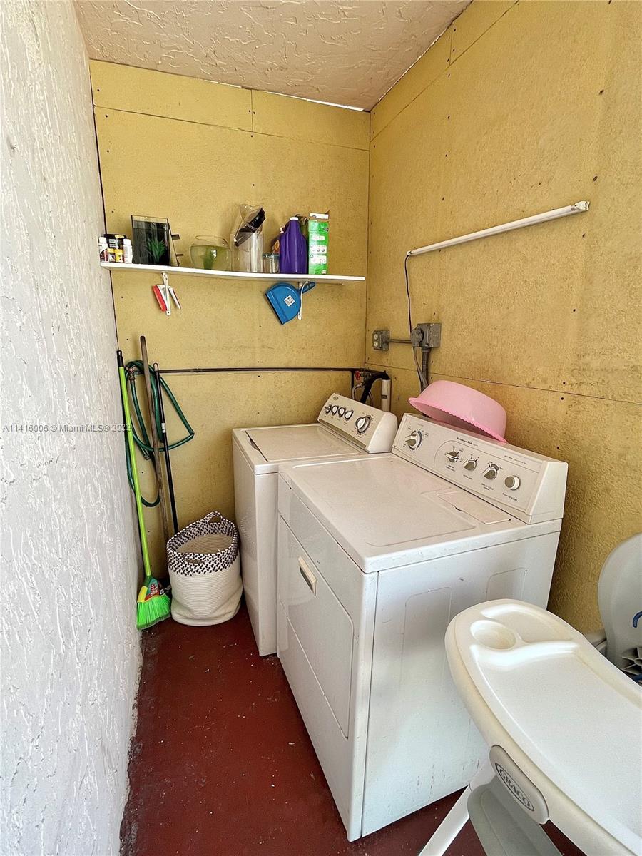 SUPER rare townhome with no HOA. Spacious Bradley estate townhouse, west of Hialeah, 3 bedroom 3 bathrooms, tile throughout and wood stairs, fence patio, Tankless water heater , large balcony, 2017 new ac, laundry room with washer and dryer, walking distance to High School, supermarket, parking space for 4 cars. Tenant will be moving by September 1, 2023 or before.