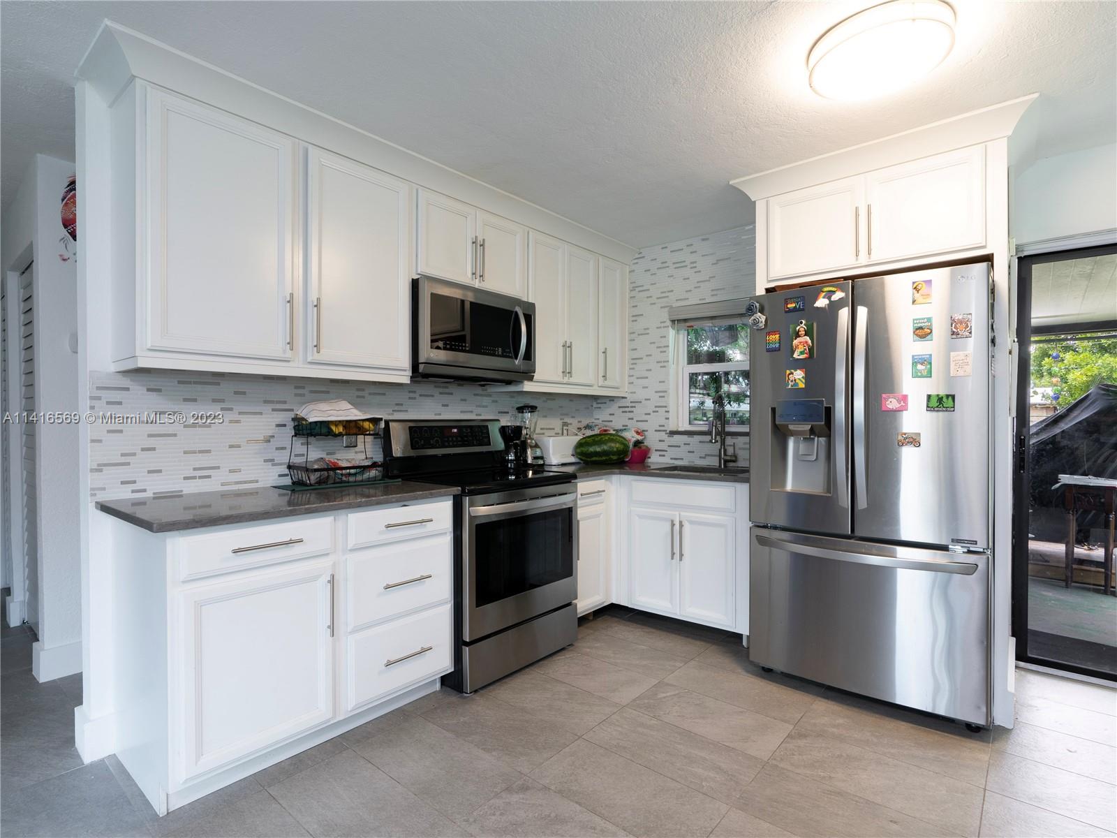 AMAZING Fully renovated 3-bedroom, 2 full bathroom, Turnkey ready home. This home offers Hurricane Impact Windows, newly installed slate tile throughout, fully remodeled bathrooms, a massive fenced backyard, freshly painted interior, exterior, and new roof. Brand new Ceiling fans in all rooms with remote, open spacious floor plan. Remodeled kitchen with white cabinets, new LG stainless steel appliances, and oversized driveway. Wonderfully located single-family residence in the heart of Davie Easy access to 595 and the Turnpike. Walk to shops and restaurants in new downtown Davie. Universities are minutes away.