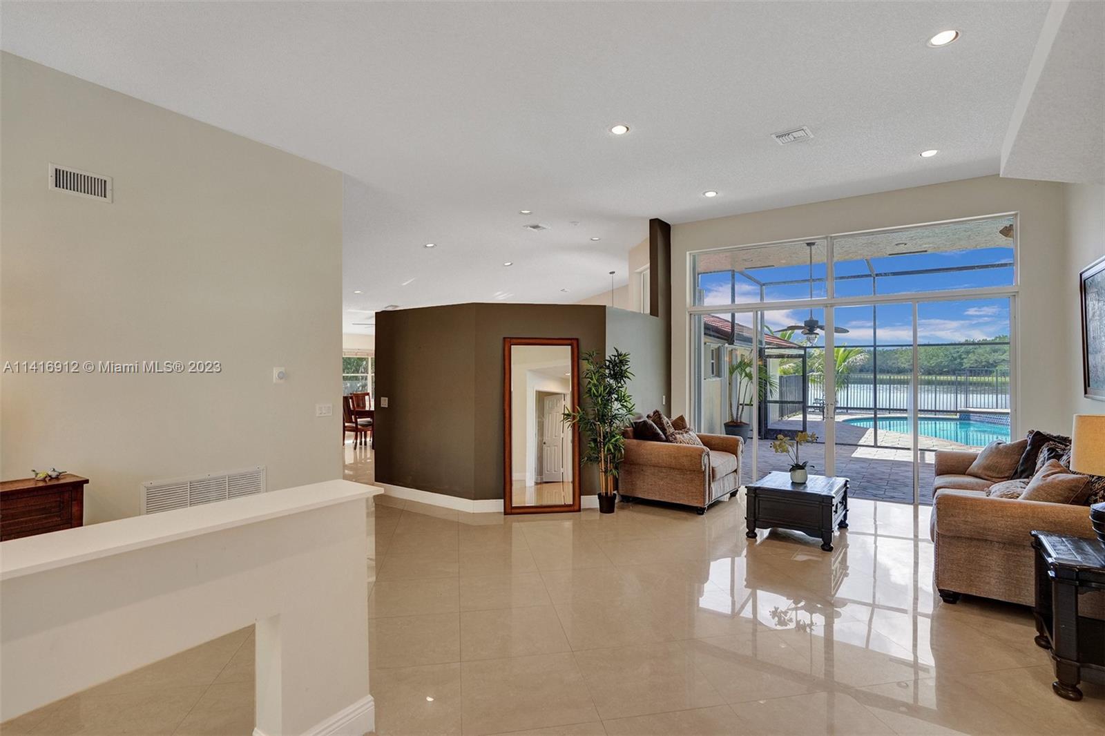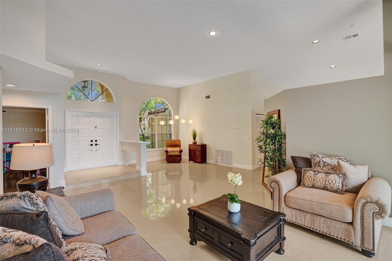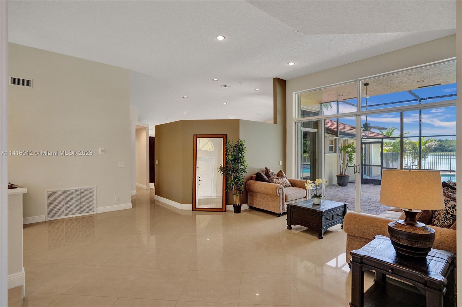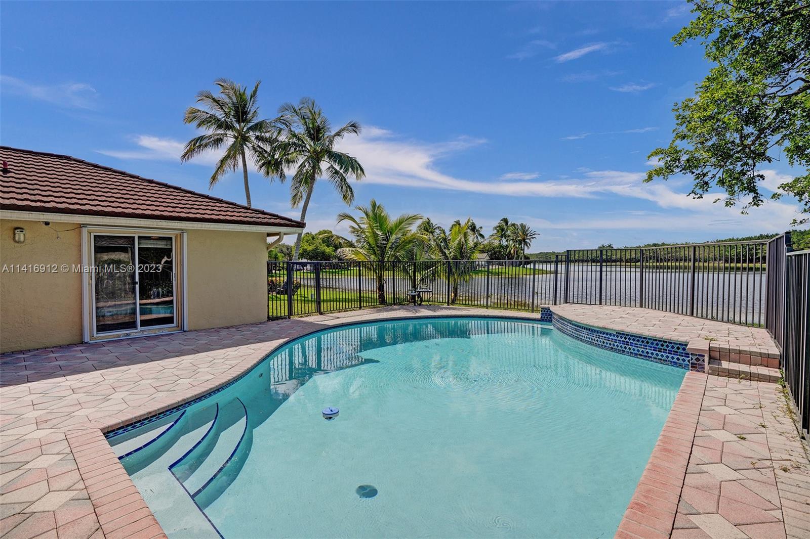 This exceptional residence is situated in the highly sought-after Orchid Island neighborhood, where properties rarely become available on the market. Well maintained, 4-bed/2.5-bath home boasts volume ceilings that flood the space w natural light. It features formal living room & dining area, creating an elegant atmosphere for entertaining. The spacious kitchen seamlessly opens up to the inviting family room. Additionally, the living room, family room, & owner's bedroom all have direct access to the patio. Owner's bedroom is generously proportioned and offers a breathtaking view of the sparkling pool & serene lake. Property has hurricane shutters, ensuring peace of mind. Weston offers top-rated schools. Experience the Weston lifestyle at its finest by seizing this incredible opportunity.