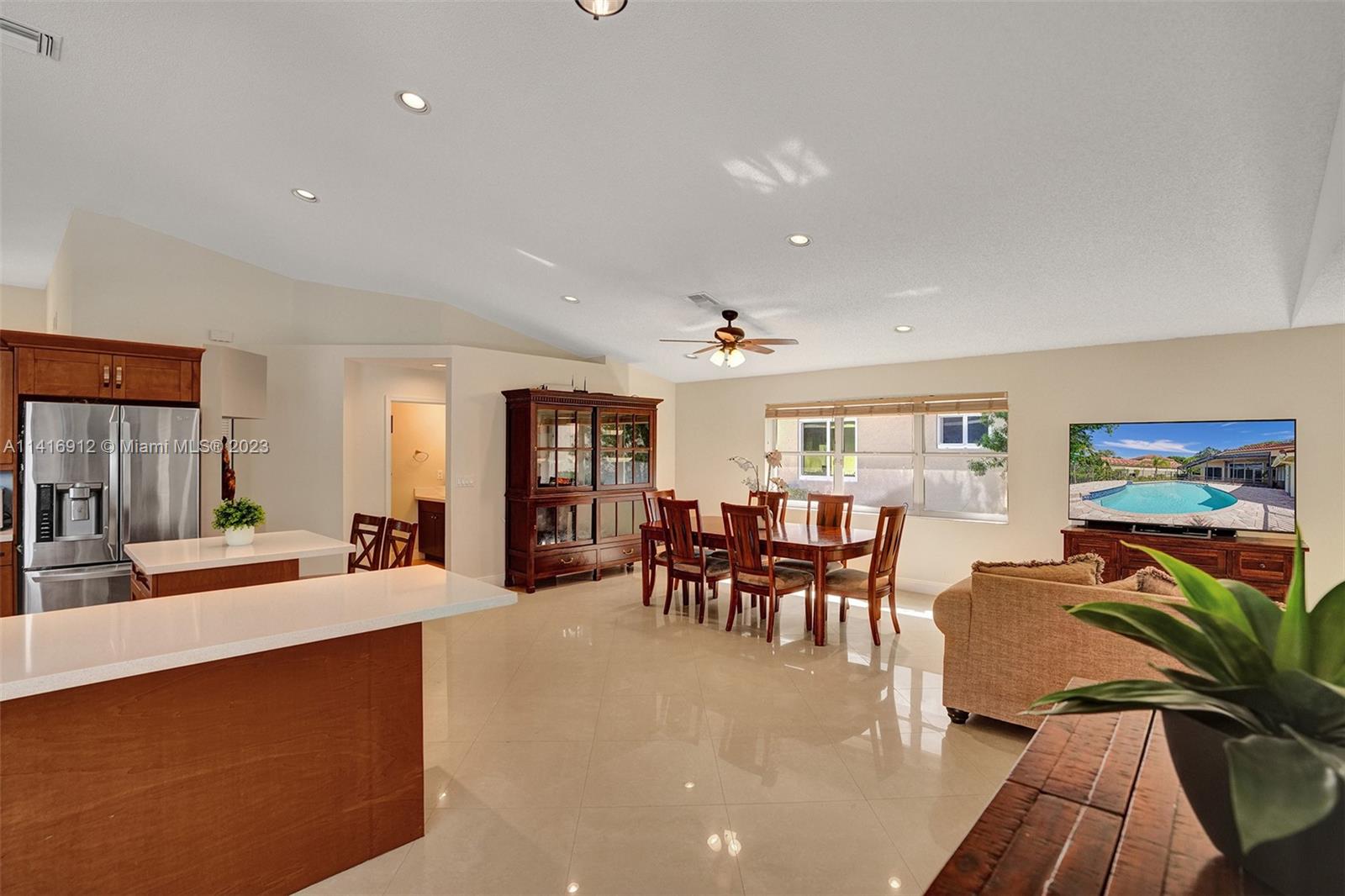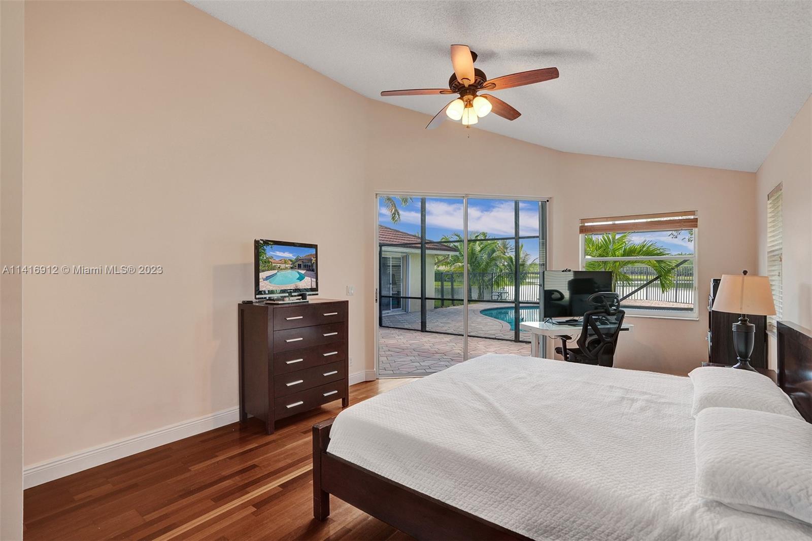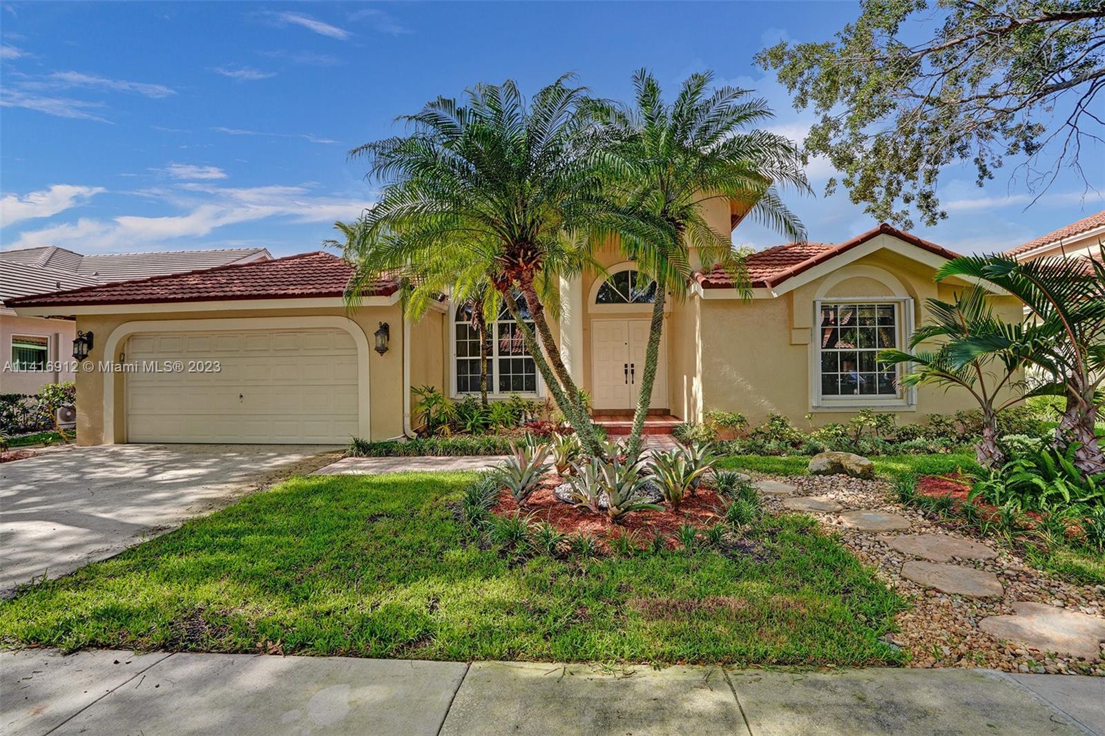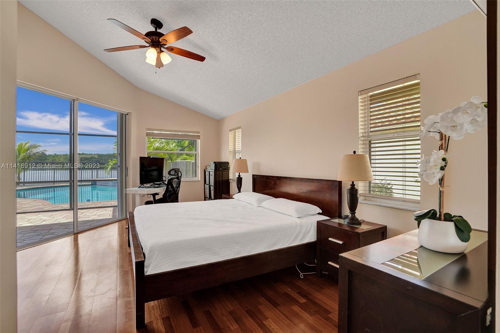 This exceptional residence is situated in the highly sought-after Orchid Island neighborhood, where properties rarely become available on the market. Well maintained, 4-bed/2.5-bath home boasts volume ceilings that flood the space w natural light. It features formal living room & dining area, creating an elegant atmosphere for entertaining. The spacious kitchen seamlessly opens up to the inviting family room. Additionally, the living room, family room, & owner's bedroom all have direct access to the patio. Owner's bedroom is generously proportioned and offers a breathtaking view of the sparkling pool & serene lake. Property has hurricane shutters, ensuring peace of mind. Weston offers top-rated schools. Experience the Weston lifestyle at its finest by seizing this incredible opportunity.