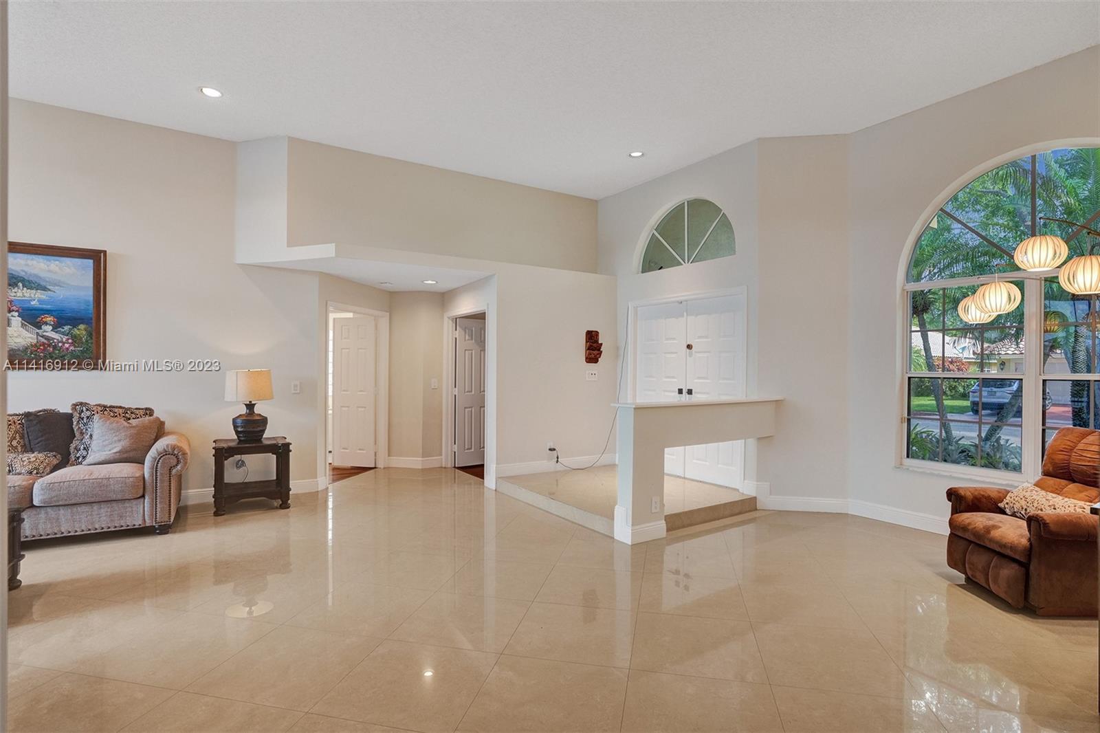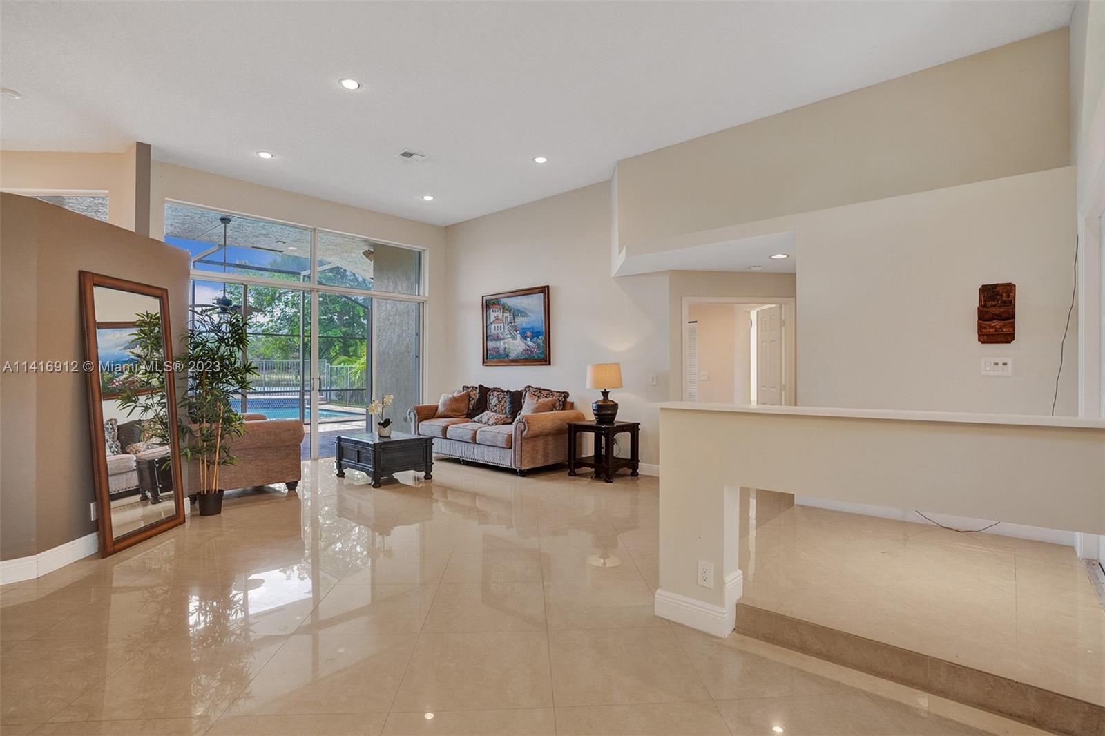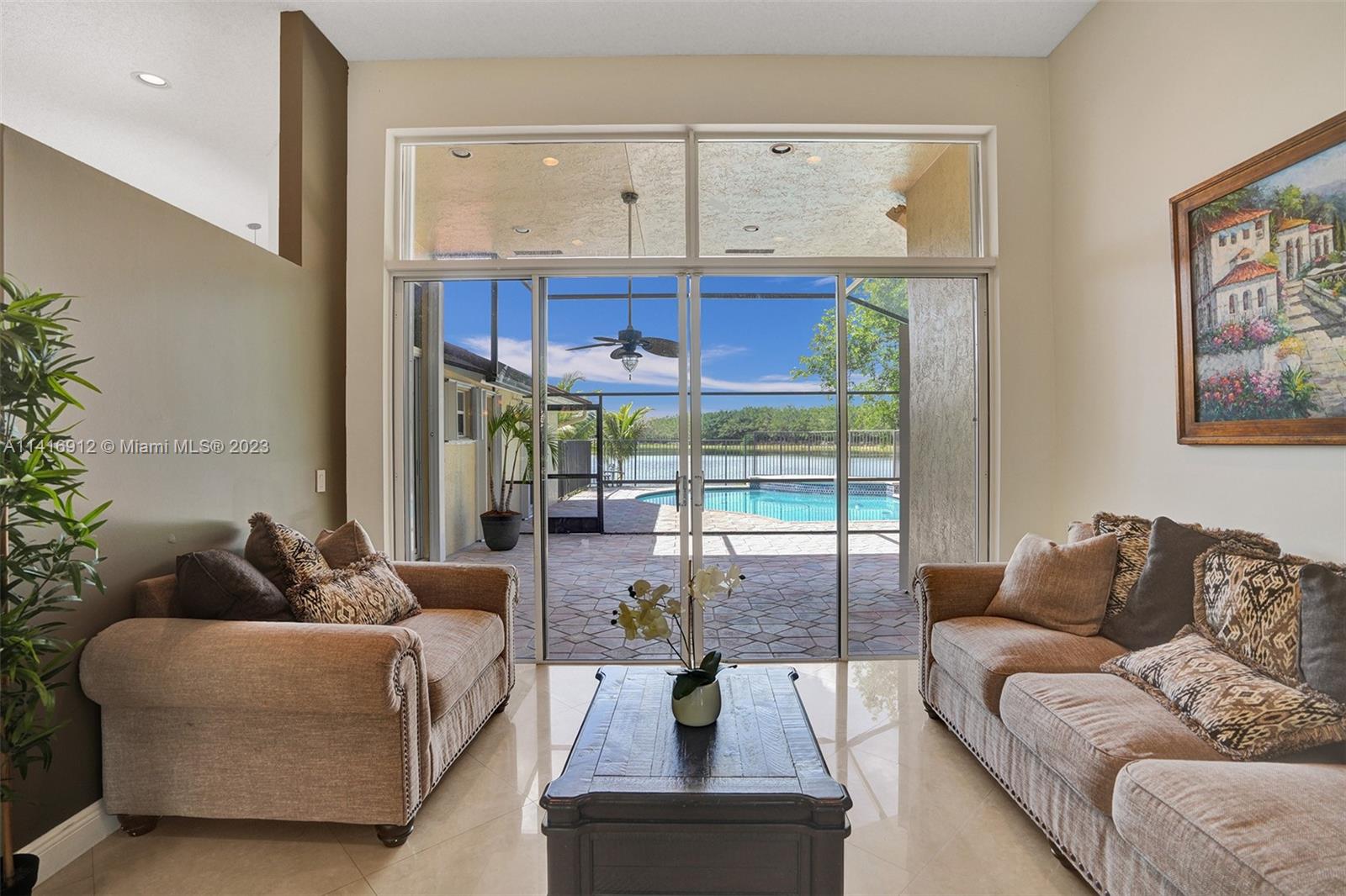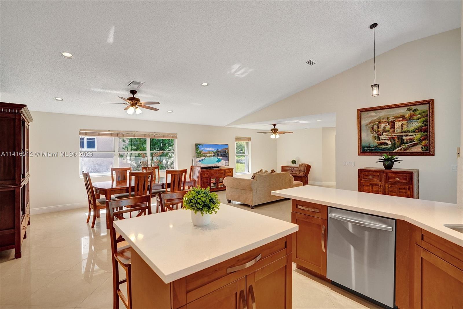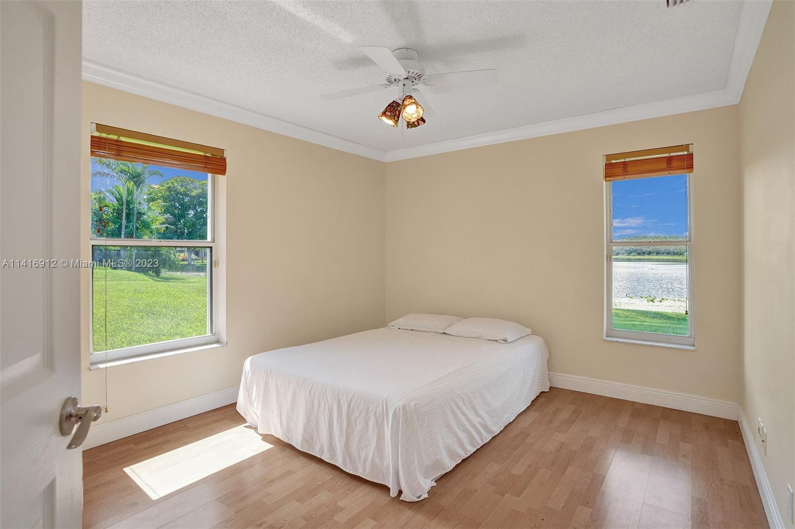This exceptional residence is situated in the highly sought-after Orchid Island neighborhood, where properties rarely become available on the market. Well maintained, 4-bed/2.5-bath home boasts volume ceilings that flood the space w natural light. It features formal living room & dining area, creating an elegant atmosphere for entertaining. The spacious kitchen seamlessly opens up to the inviting family room. Additionally, the living room, family room, & owner's bedroom all have direct access to the patio. Owner's bedroom is generously proportioned and offers a breathtaking view of the sparkling pool & serene lake. Property has hurricane shutters, ensuring peace of mind. Weston offers top-rated schools. Experience the Weston lifestyle at its finest by seizing this incredible opportunity.