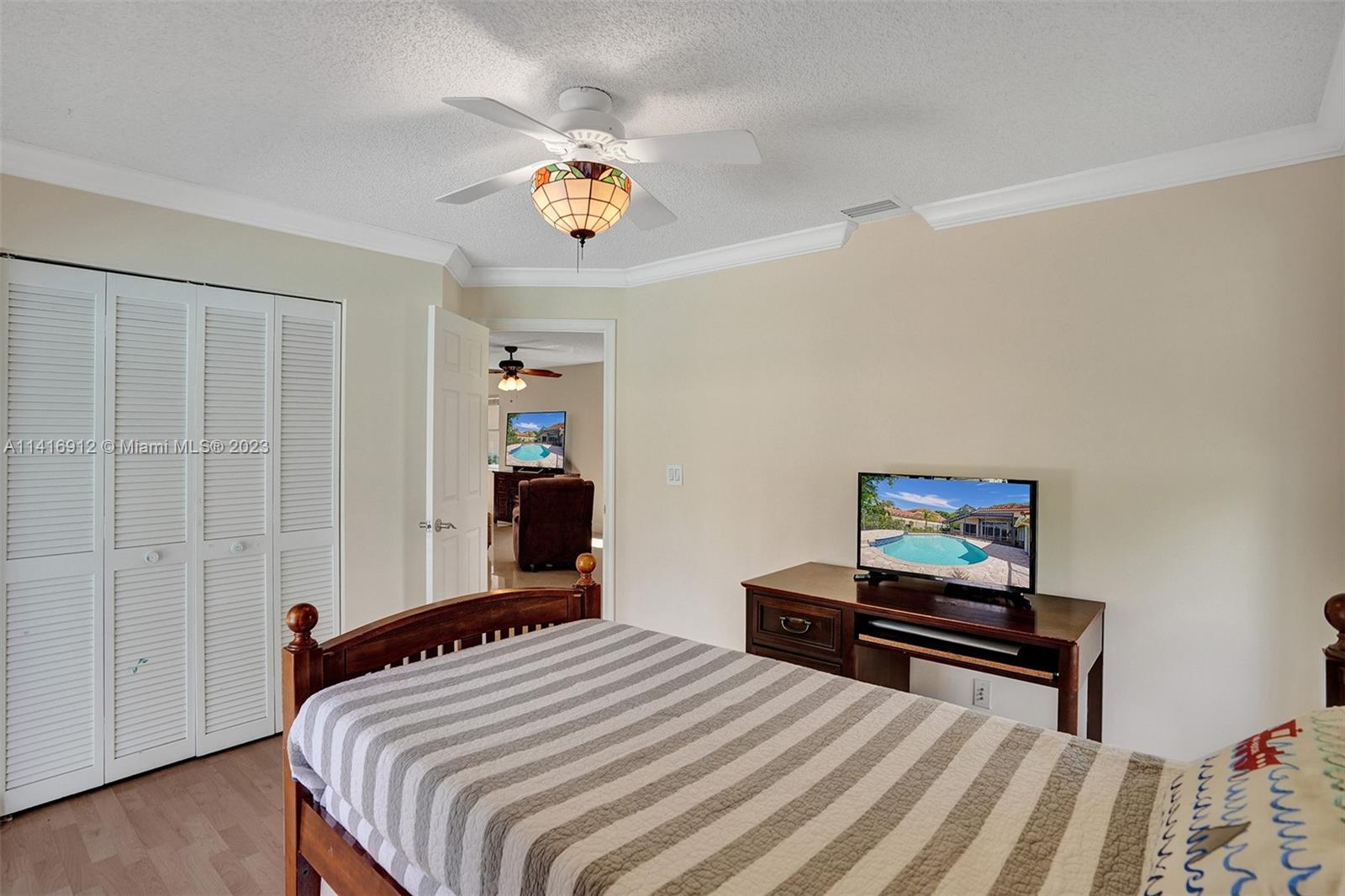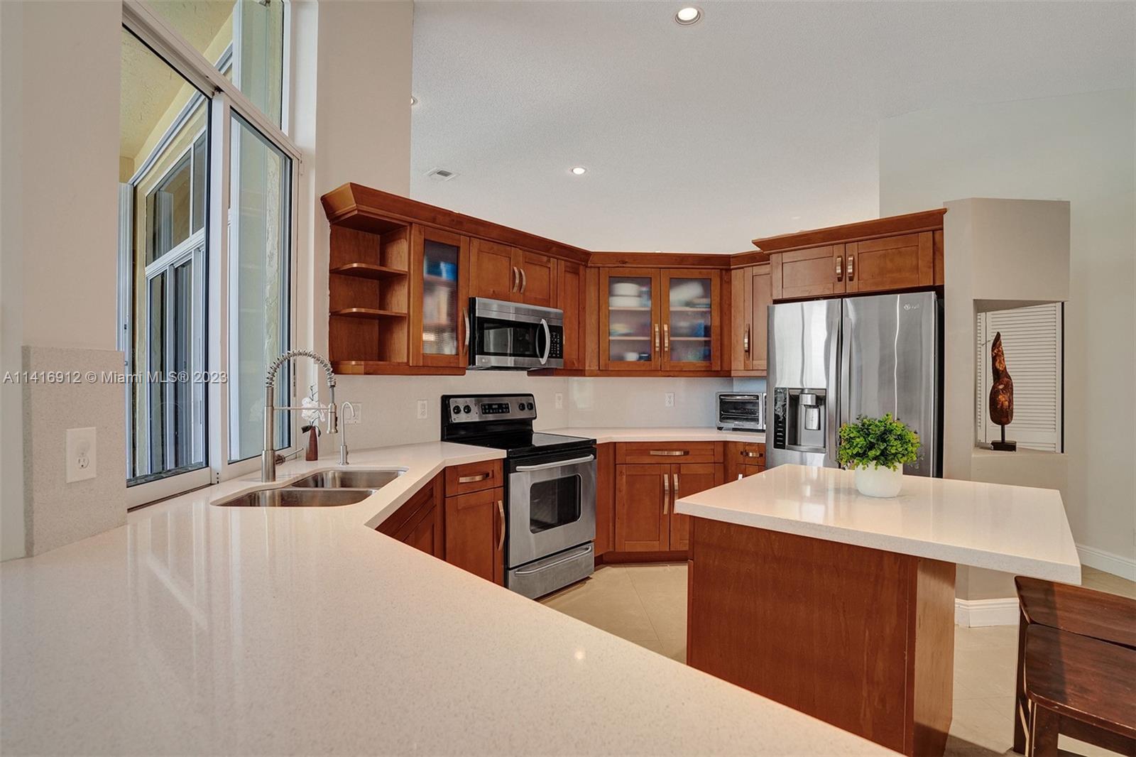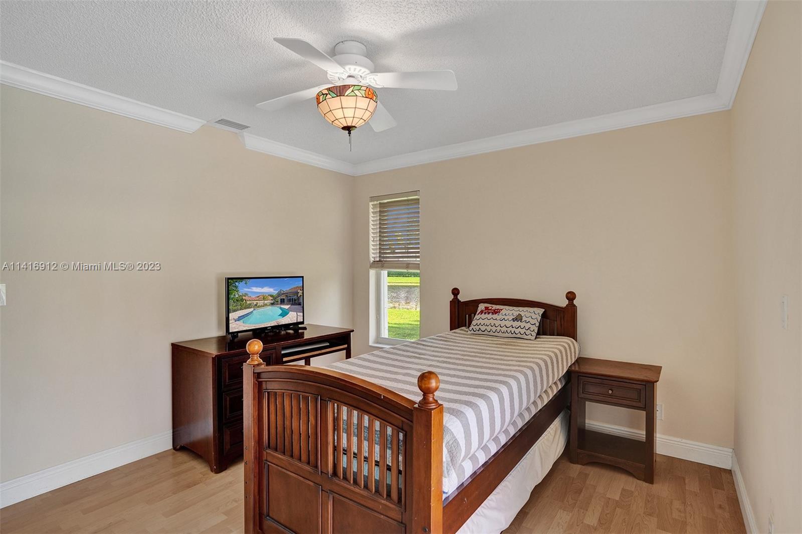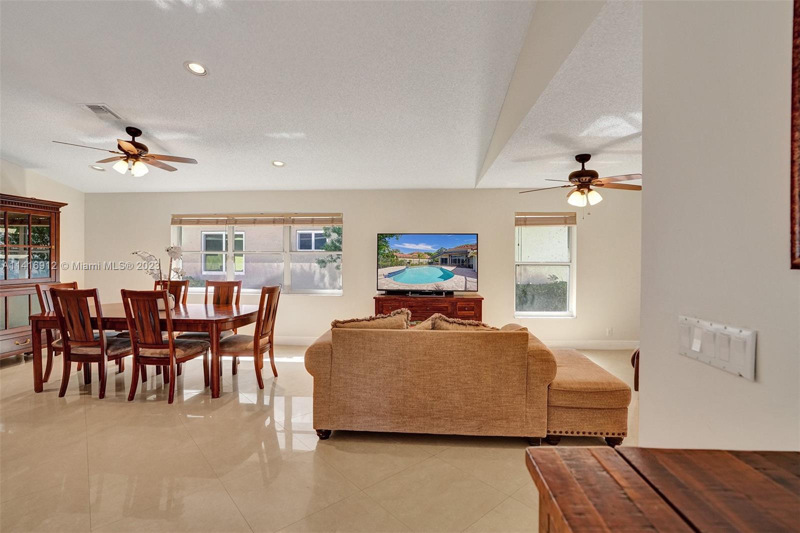 This exceptional residence is situated in the highly sought-after Orchid Island neighborhood, where properties rarely become available on the market. Well maintained, 4-bed/2.5-bath home boasts volume ceilings that flood the space w natural light. It features formal living room & dining area, creating an elegant atmosphere for entertaining. The spacious kitchen seamlessly opens up to the inviting family room. Additionally, the living room, family room, & owner's bedroom all have direct access to the patio. Owner's bedroom is generously proportioned and offers a breathtaking view of the sparkling pool & serene lake. Property has hurricane shutters, ensuring peace of mind. Weston offers top-rated schools. Experience the Weston lifestyle at its finest by seizing this incredible opportunity.