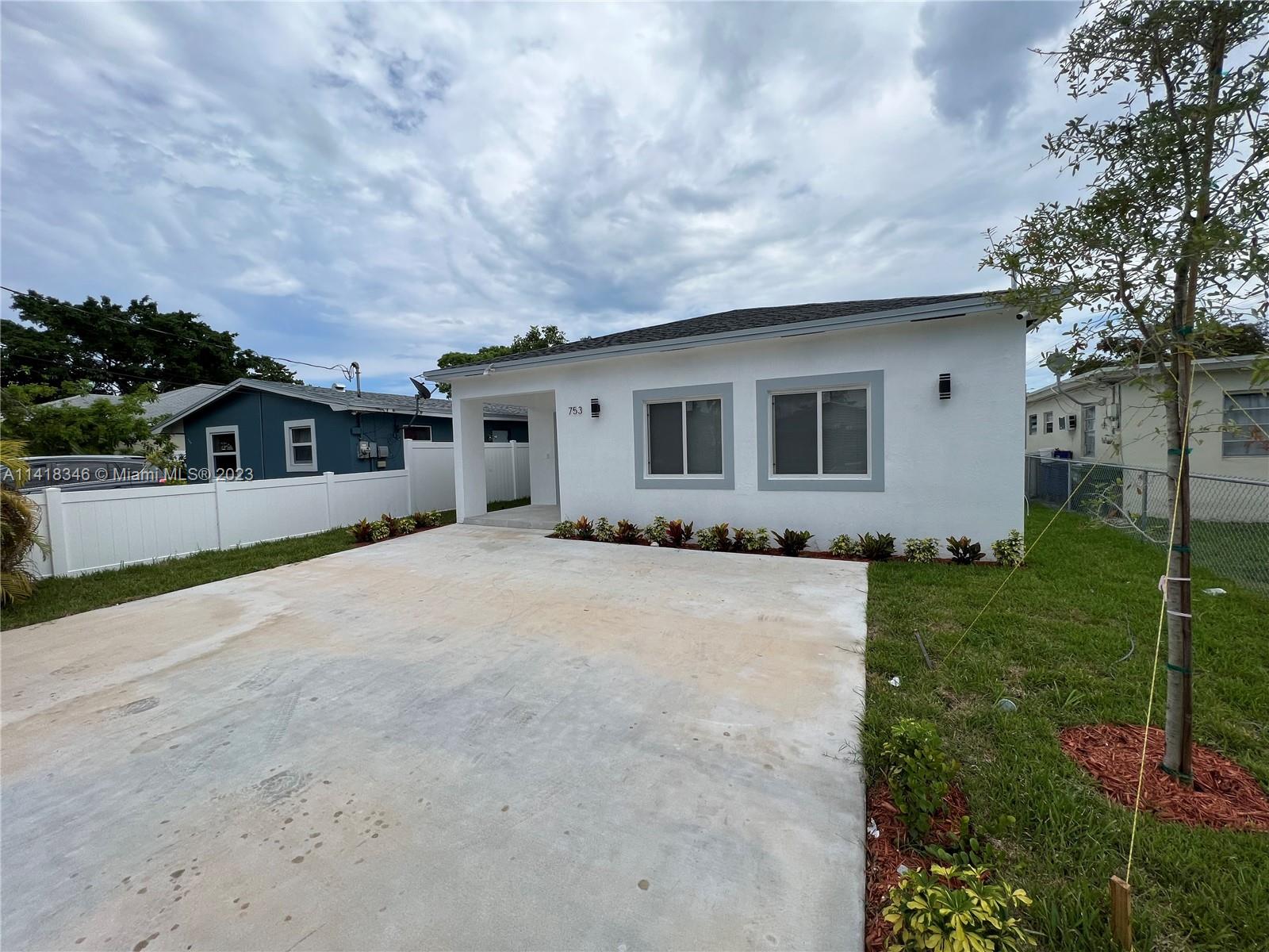 NEW CONSTRUCTION, PROPERTY QUALIFIES FOR CHIP100. 100% FINANCING WITH NO MORTGAGE INSURANCE. Quiet Street, Beautiful house with modern design, open kitchen concept and modern finishes. 1,560 sq ft under A/C. 3 bedrooms, 2 full baths, equipped with New stainless steel kitchen appliances, granite countertop, white kitchen cabinets made of pine wood, high cabinets upgraded to 42'' height. Modern floors in white Venatto porcelain tile throughout the house. Impact windows. Access to the backyard through a street, so you can park a boat, trailer, you named it. Concrete driveway.