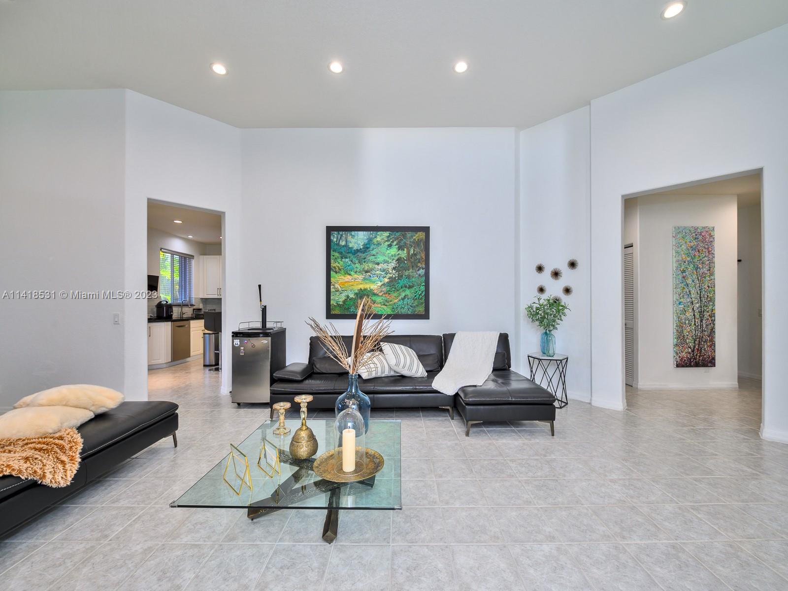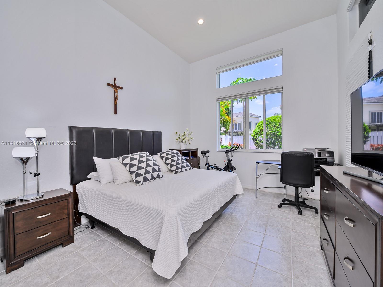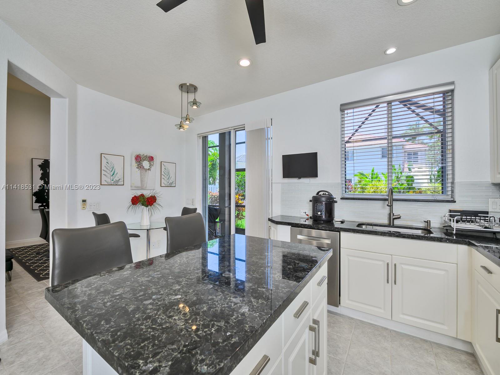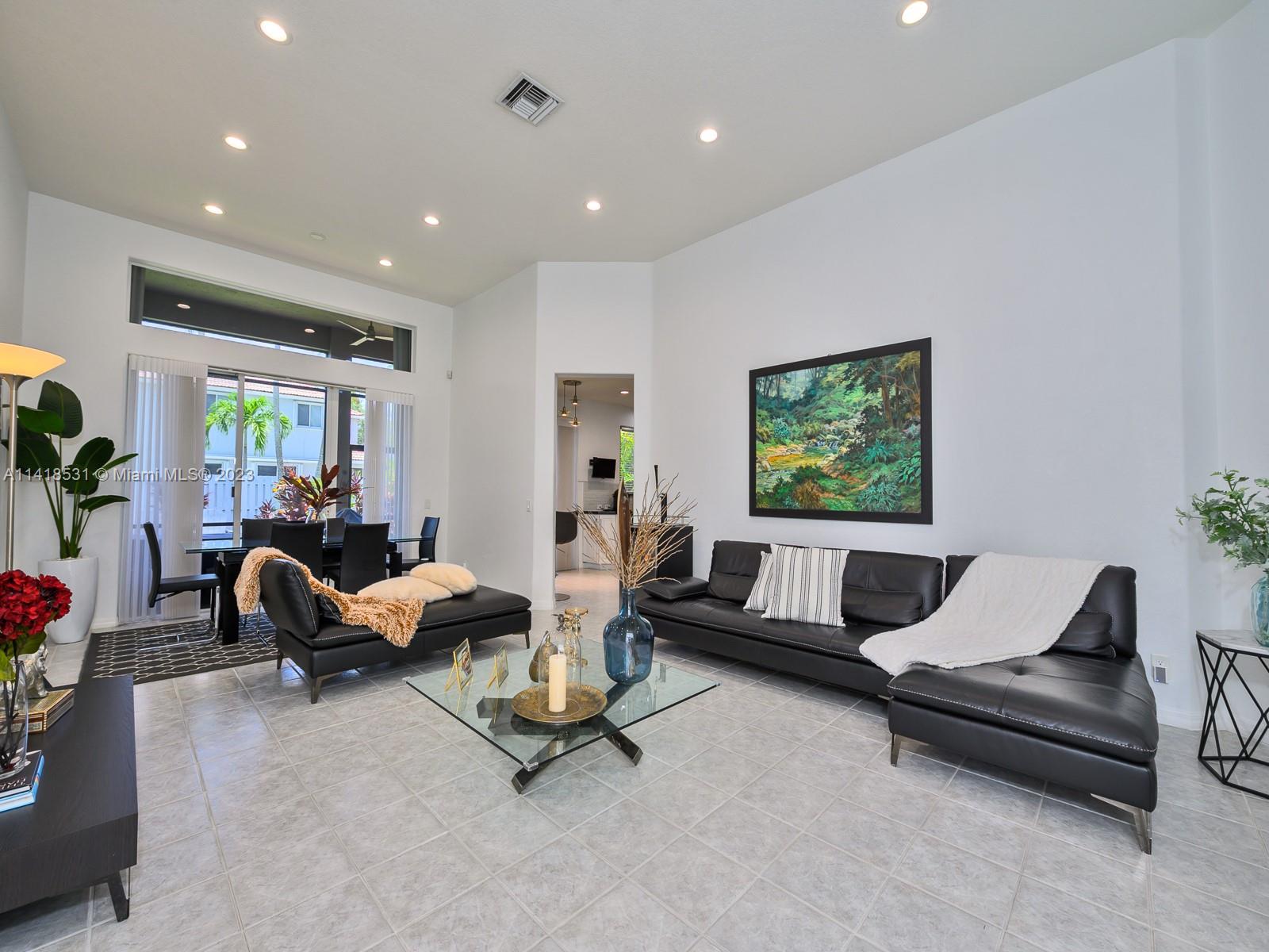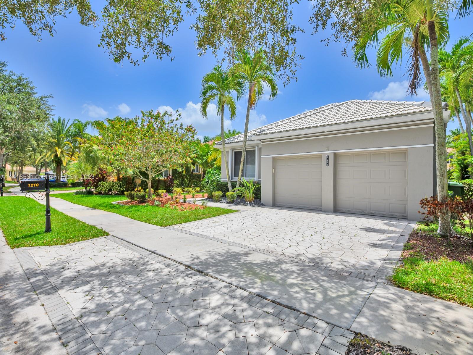 Beautifully maintained 3 bedrooms / 3 full bath rooms!! Home located in the desired guard gated Weston community, The Island. Unique triple split floor plan, Chef's Kitchen has 42" cabinets, cooking island, granite counter tops, SS appliances, huge laundry room, 13ft ceilings in master bedroom & living room, screened in patio, spacious yard with room for pool! Hurricane shutters, Upgraded garage with Epoxy floor, lots of storage, 2 attics, A + Schools.