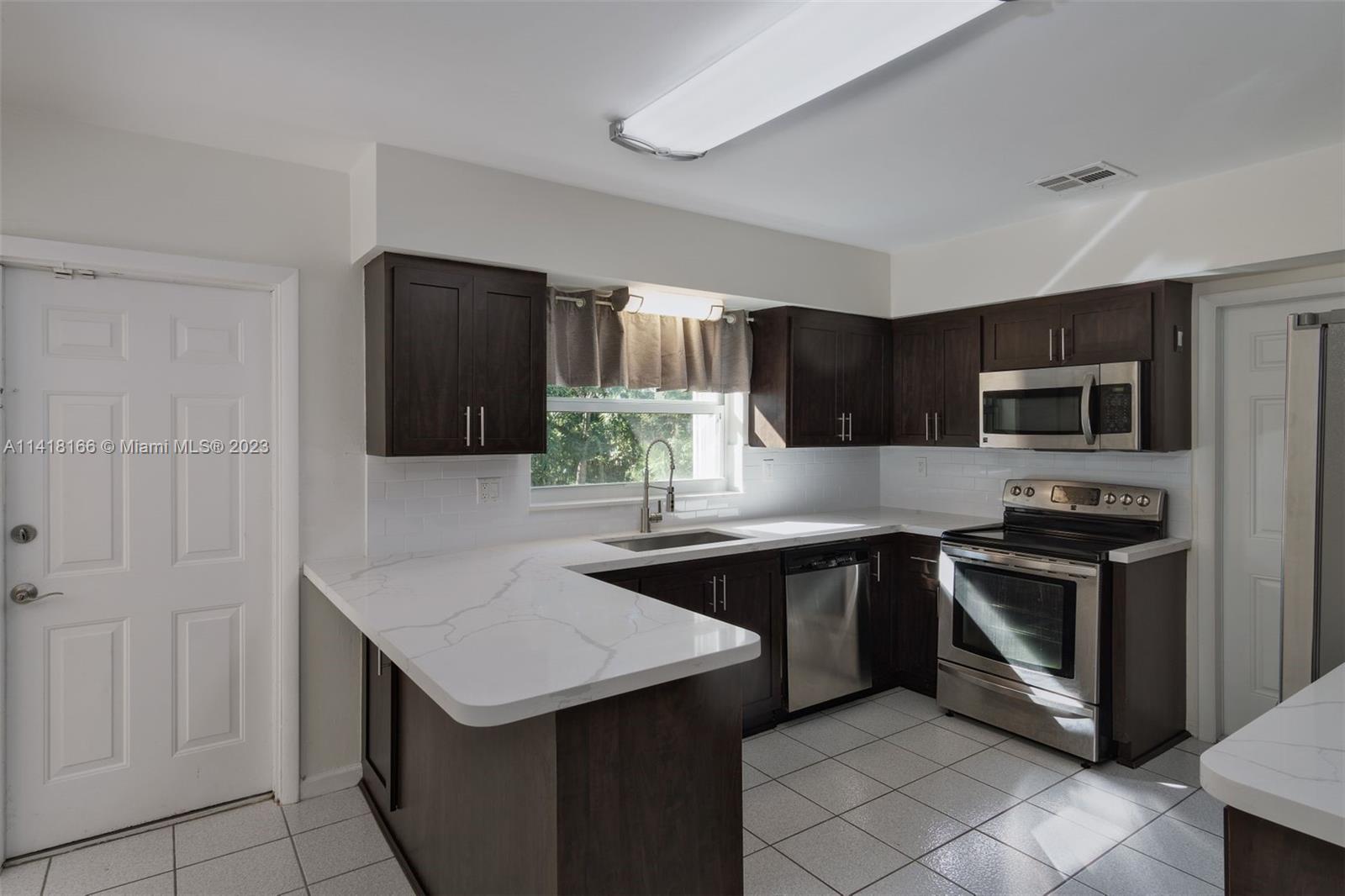 Charming 3 bedroom 2 bath home on huge lot (16,900sf) on a quiet, tree-lined street in Miami Shores. Attached oversized 2-car garage and tons of parking. Entry foyer, open floor plan, tile floors throughout. Split bedroom plan; master suite with walk-in closet. Impact windows and doors, new central a/c, updated plumbing and electric. Big kitchen with stainless steel appliances, new quartz countertop/subway tile backsplash, and abundant storage. New washer and dryer and overhead storage in 2-plus-car garage. Room to expand as big as you can dream. Fully fenced yard with fruit trees. 5 minutes to I-95 and US1. Walking distance to downtown Miami Shores. FIRST SHOWINGS THIS WEEKEND, Sat 7/15, Open House, 12-2pm.