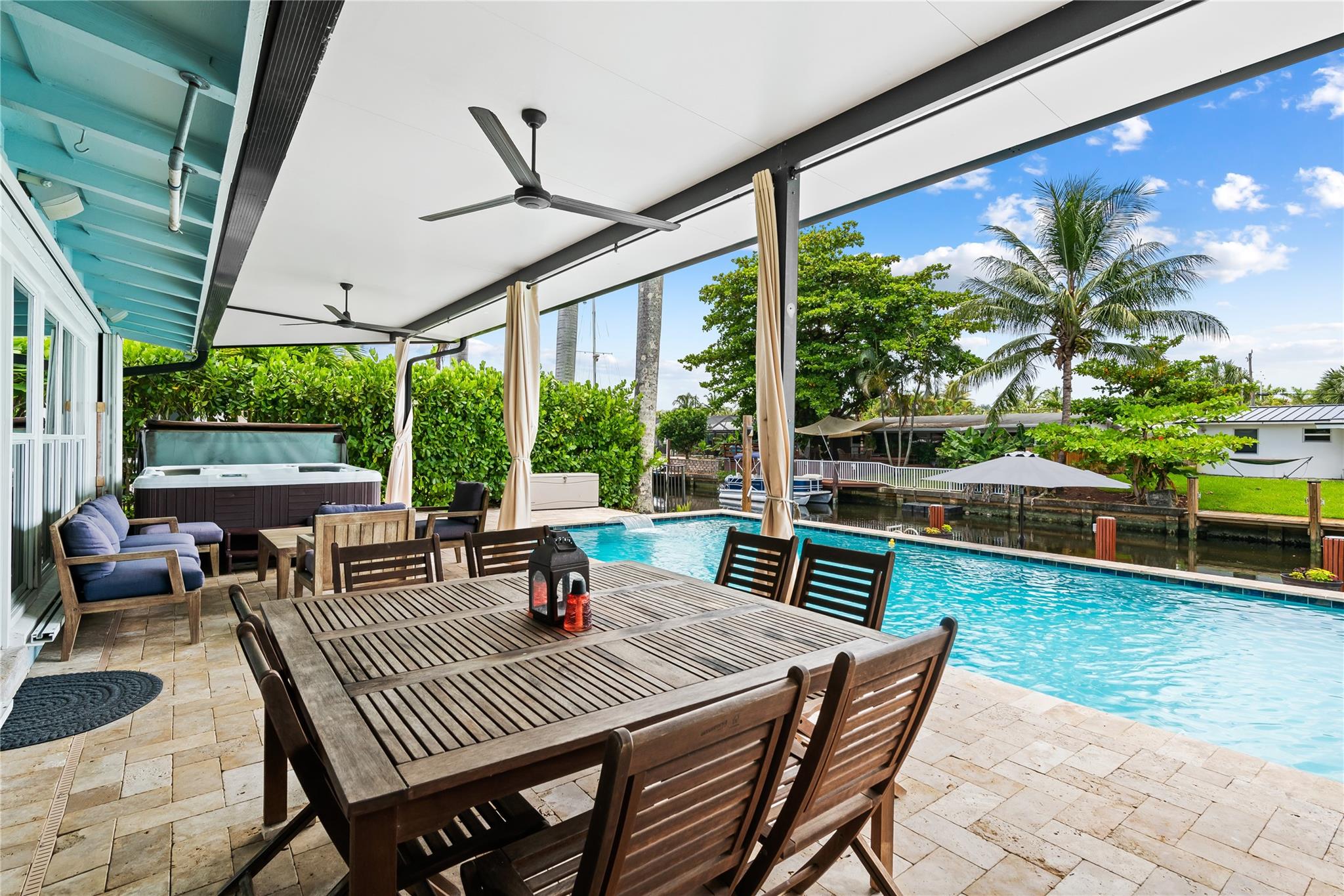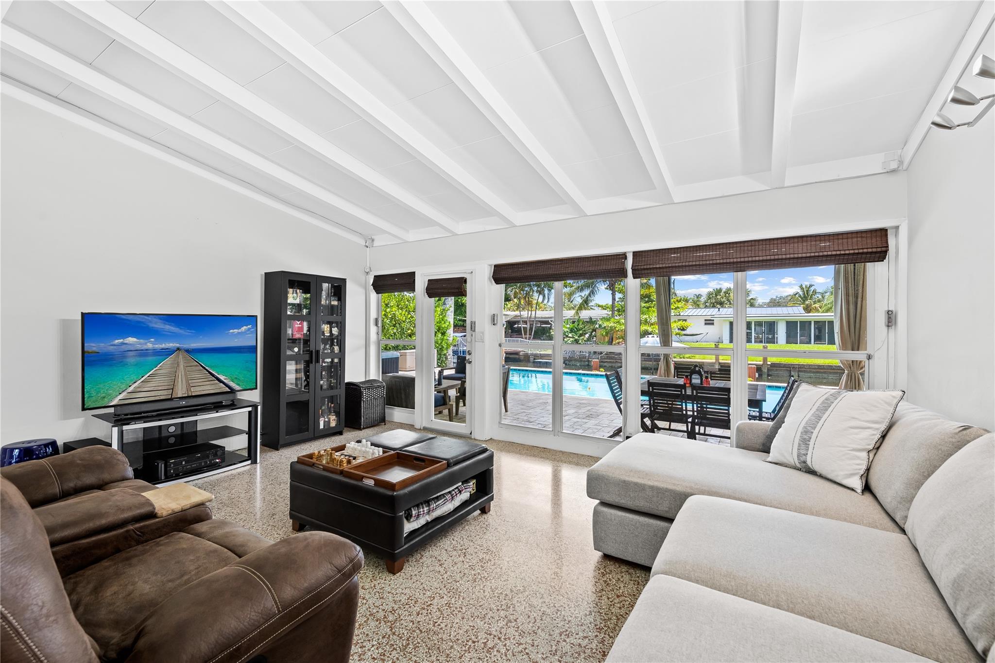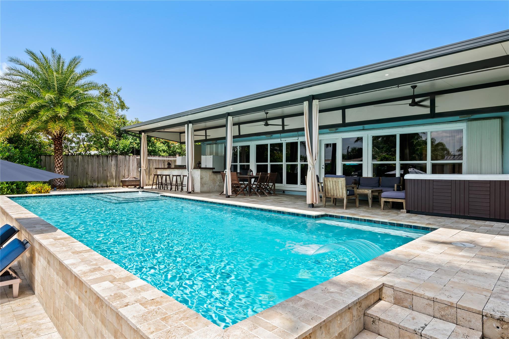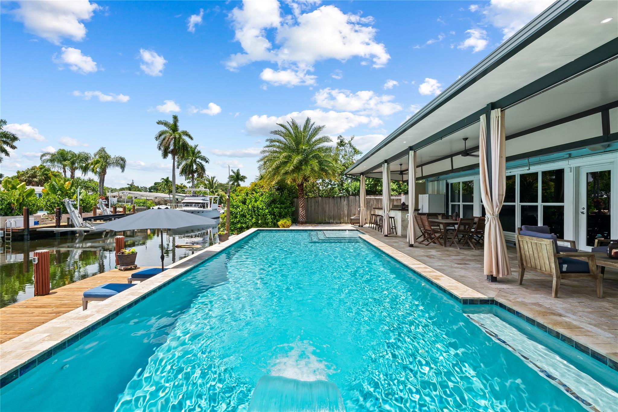 YOUR 65FT WATERFRONT 3BR | 2BA POOL HOME awaits for you! Your home features an extended driveway great for Boats, and RV'S. As you walk inside the grand foyer entry, you will be greeted with an Open Floor Plan great for entertaining. Updated Kitchen features Quartz Countertops and stainless steel appliances. Vaulted Ceilings and terrazzo floors throughout your home! Spacious Master Bedroom bath with Tub and Shower. The private backyard is a retreat with modern travertine, beautiful 20,000 Gallon Salt Water Pool, Separate Hot Tub, outdoor shower and a kitchen. A 65ft-Sea Wall accompanied by a 20ft-dock and option to extend the dock. Added water and 30 amp shore power for a boat completes this waterfront paradise!