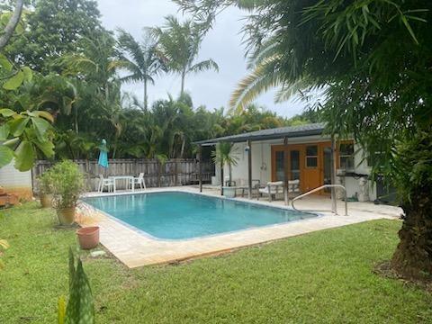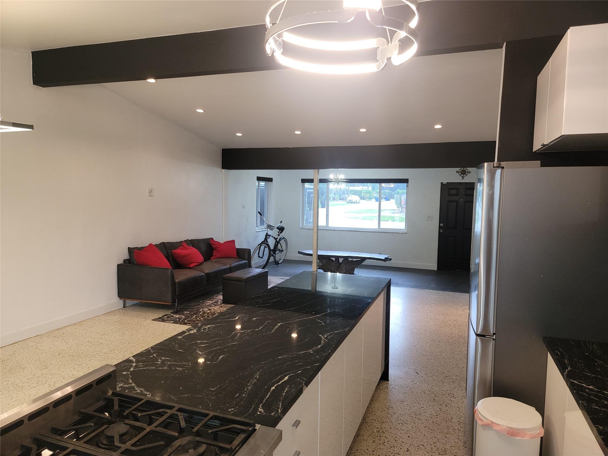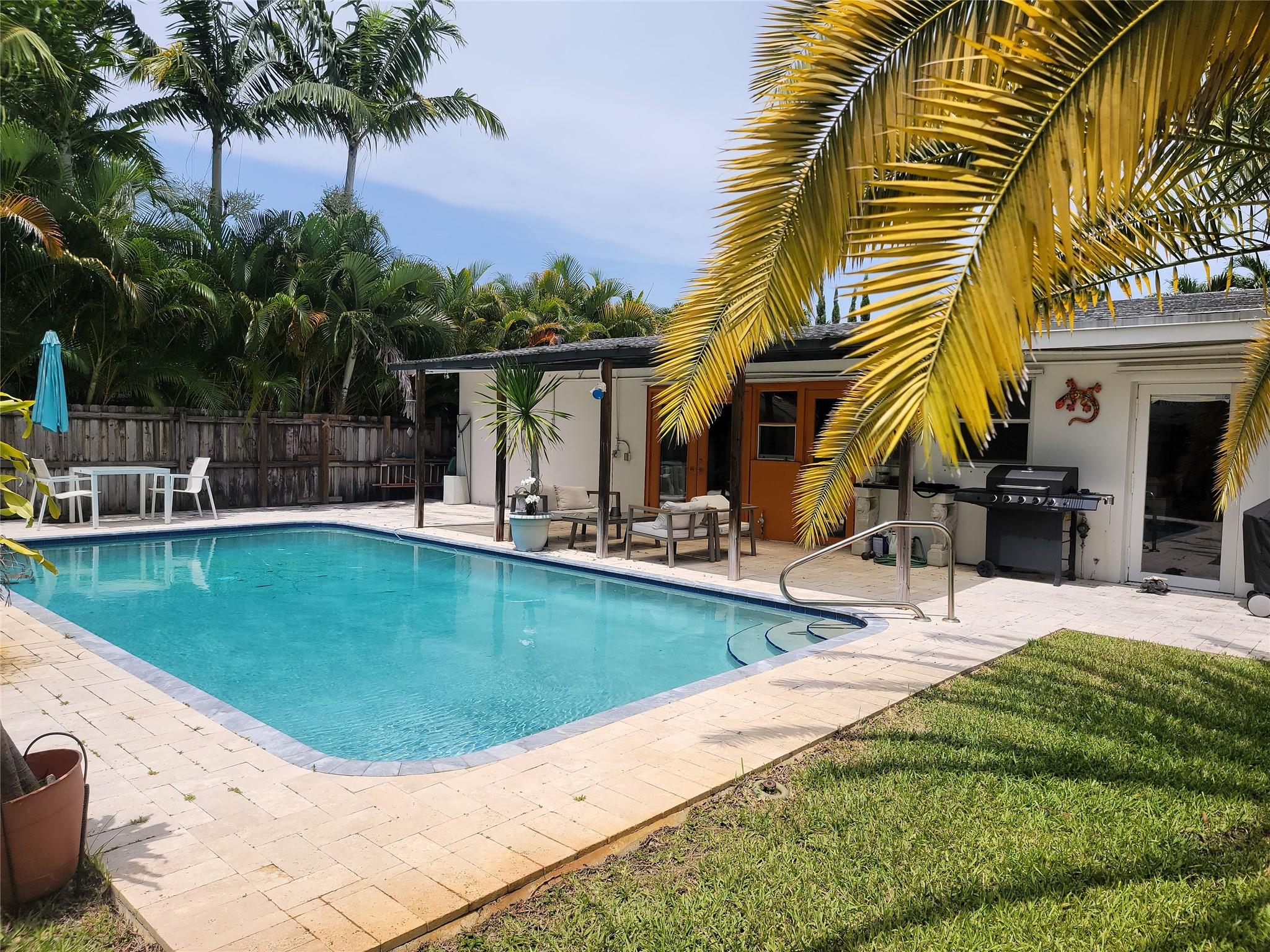 Just a few blocks from Wilton Drive and its world renown entertainment district. Minutes to Beach, FLL, I-95, Downtown FtL,... Walk inside this Mid-Century Modern to airy, open living space with exposed beam vaulted ceiling and view straight through French doors to pool. Substantially renovated in 2018 to include Kitchen w/ 6 burner gas range, new Roof, Travertine pool deck, restored Terrazzo floors, Black-out shades, Wine cooler, Instant Hot Water Heater,... Designed with outdoor / pool entertaining in mind with 2 kitchen pass through windows, dinning room, kitchen and bedroom doorways to covered porch and pool. Large storage/laundry room accessible from carport and dinning room. Gas and charcoal grills, portable generator, shed items, furnishings can convey.