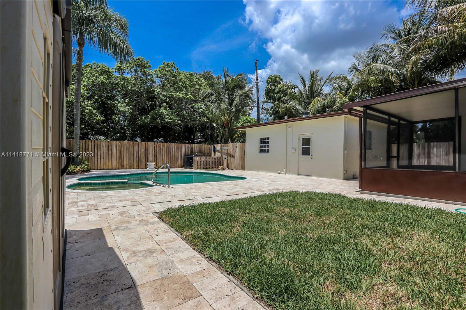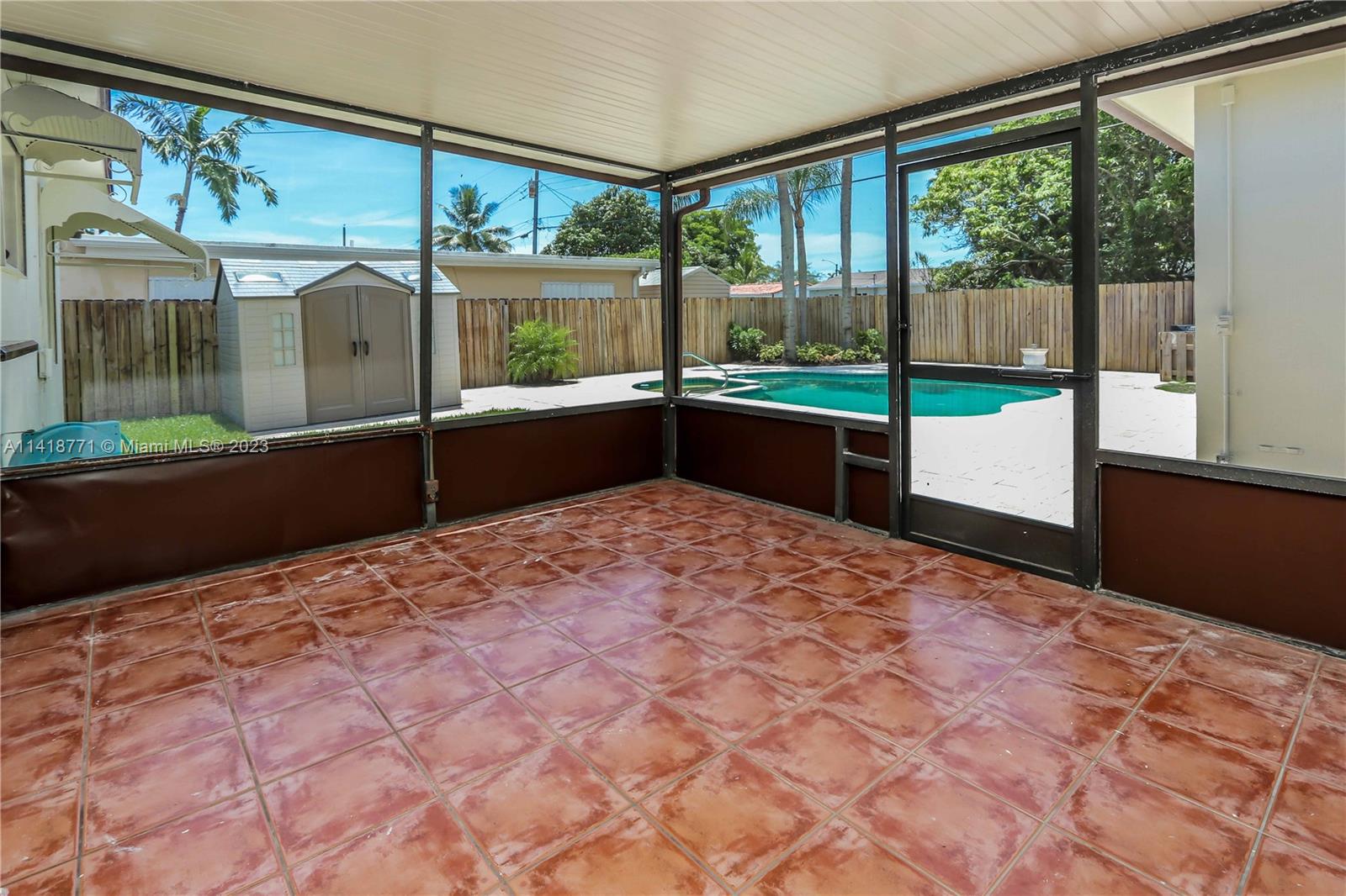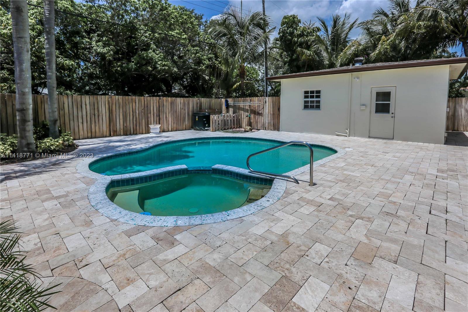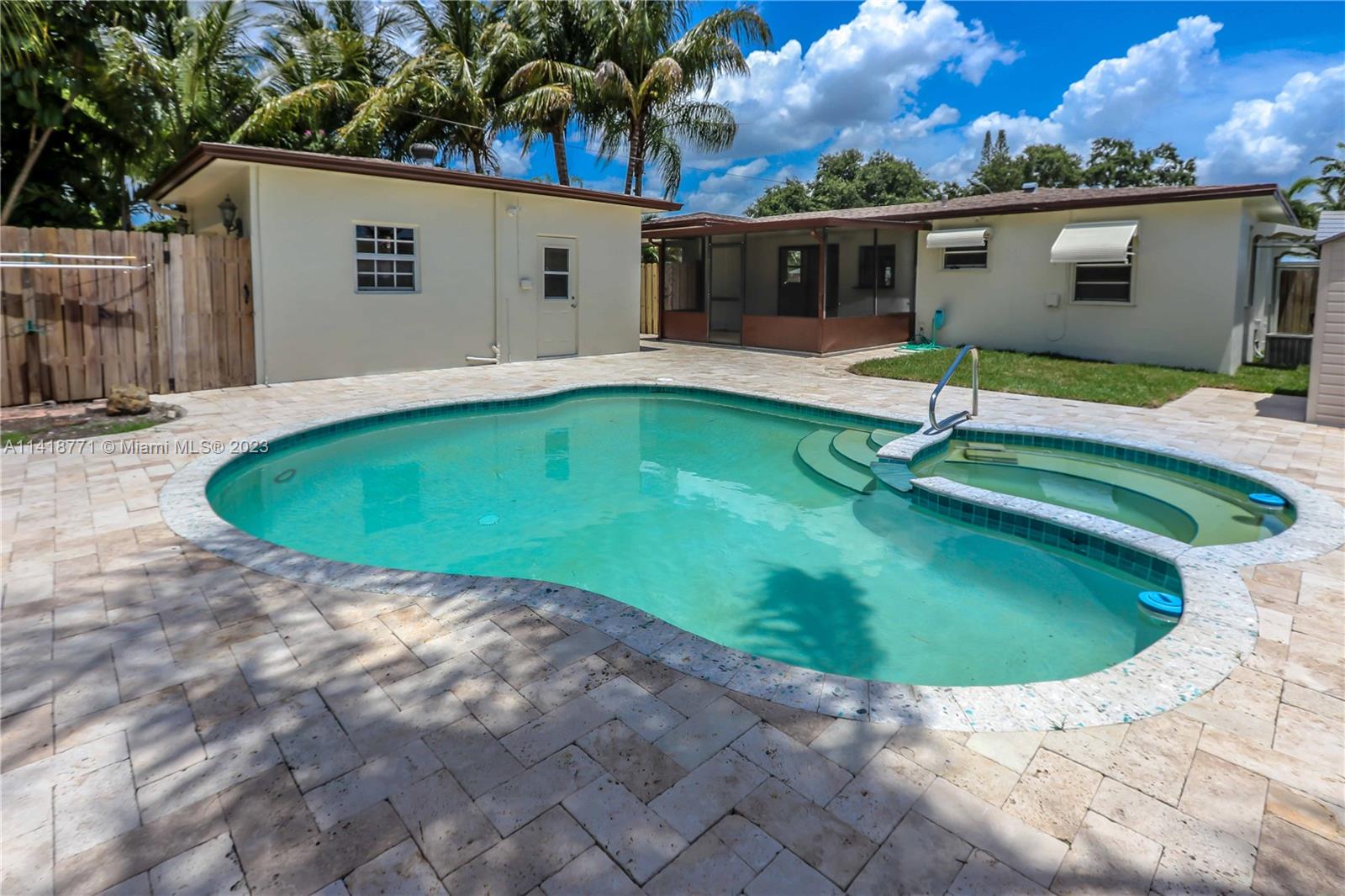 Fantastic Hollywood Hills pool home! Total 2/1, main house with 2 bedrooms/1 bath and large screened in porch 2nd bath in the converted garage. Features include a beautiful free form pool with spa surrounded by travertine pavers, brick paved driveways, attractive landscaping, large storage shed, and service alley. Just freshened up for your immediate enjoyment with complete painting of interior and exterior, new tile floors in main house bedrooms, HVAC unit and ducts cleaned and sanitized with new UV light system, new ceiling fans, all windows and sliding glass door serviced with new track install, new wall unit/ac for garage, and more! Great neighborhood integrity and close to Rotary Park, YMCA, TY Park, Memorial Hospital, shopping, dining, airport, and beaches.