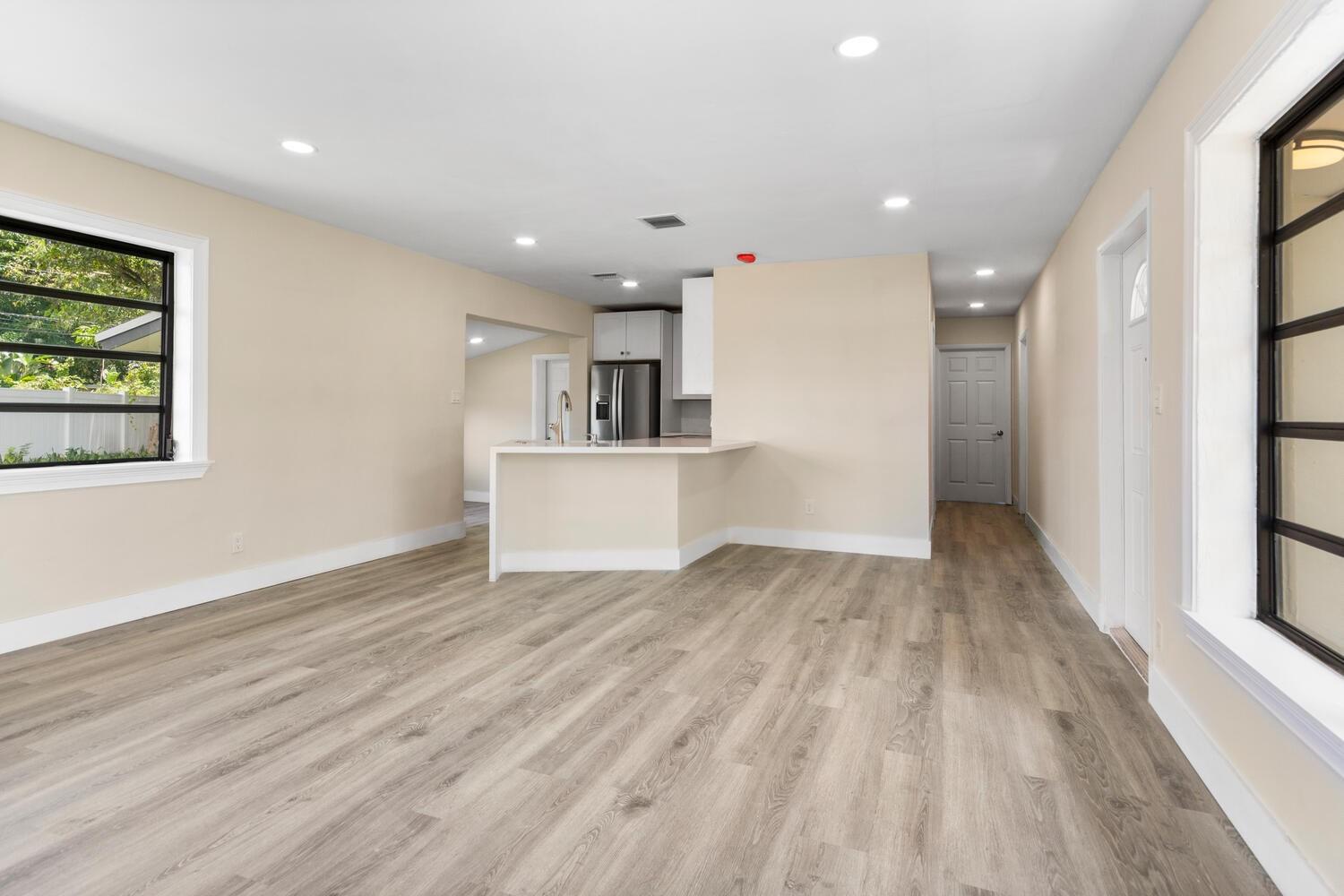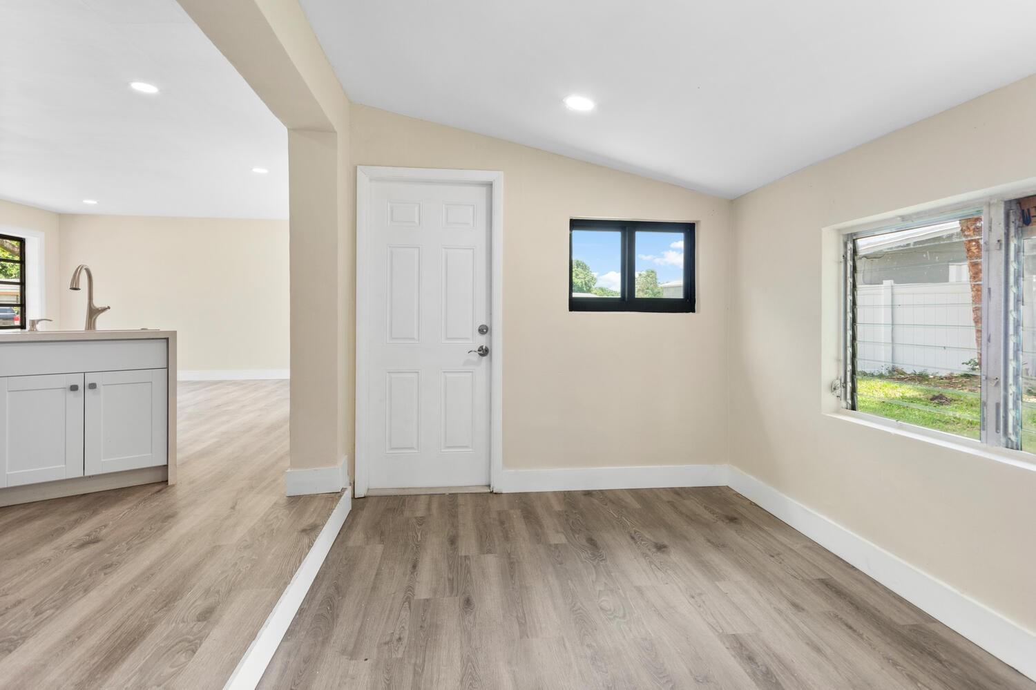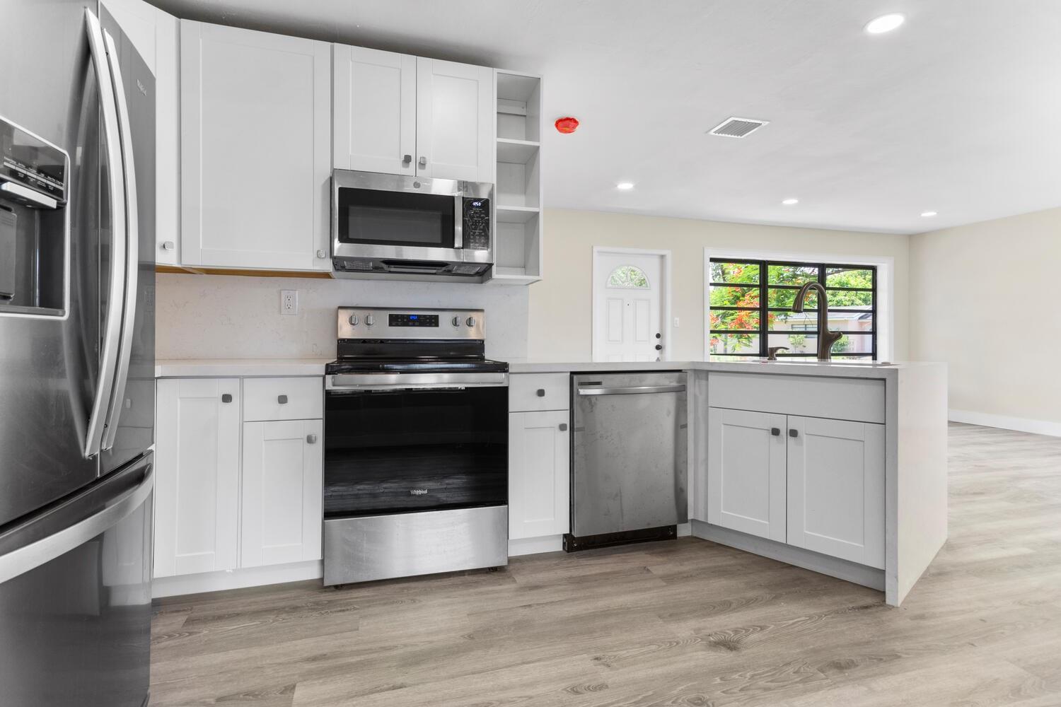 Introducing a stunning and move-in ready gem! This brand new 3-bedroom plus den, 2-bath property is ready to impress its lucky new owner. With a brand new roof, 2023 AC, impact windows, new water heater, you can enjoy worry-free living. Step inside to discover the vinyl floors that complement the modern aesthetic. The kitchen boasts quartz countertops, white shaker cabinets, and sleek stainless steel appliances. Washer and dryer are included. The new driveway adds to the overall appeal. Situated on one of the largest lots in the neighborhood, tranquility awaits you. Additionally, relish the privacy of having a vacant lot beside you. With convenient access to I-95 and just a short 10-minute drive to downtown, this location is hard to beat. Your dream home awaits! *NEW ROOF*