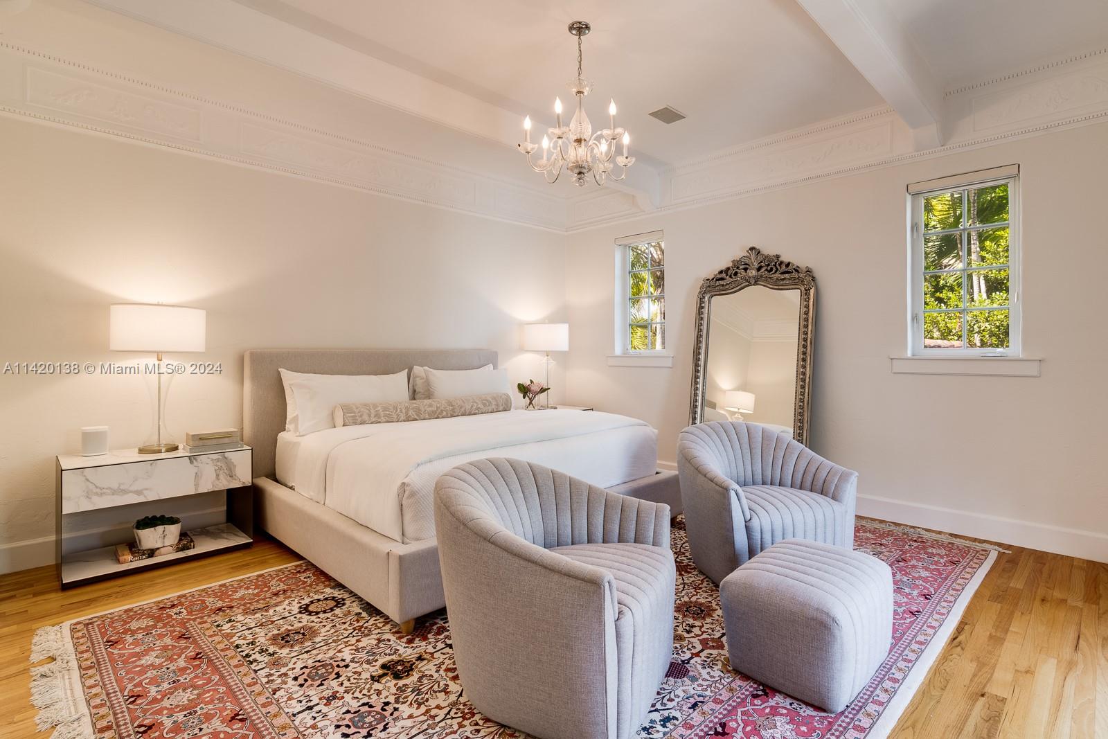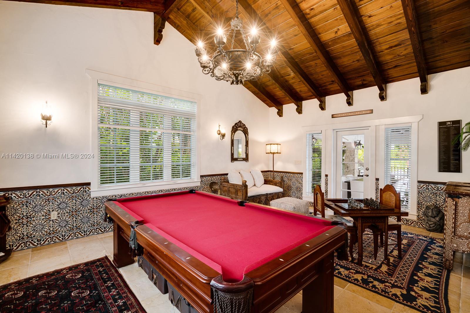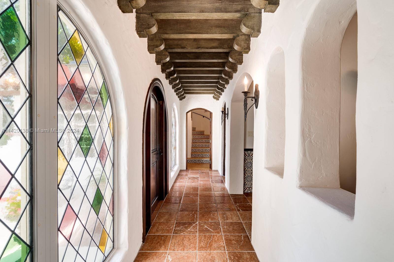 1920's Old Spanish style villa with 6397 actual square feet (5044 living area) on a 15,750 sq ft lot steps from the Biltmore Hotel & Golf Course, Salvadore Park and the Venetian Pool. Classical architecture with loggia, Palladian window frames, high timber-beamed ceiling in the main living room & sun-dappled courtyards with flowing fountains. There are 6 bedrooms and 6.5 bathrooms. The primary bedroom suite & 3 other bedrooms are upstairs. Guest bedroom and a maid's bedroom on the 1st floor. Summer kitchen, large library & office by the heated pool. The home is walled and gated and within walking distance to many Coral Gables landmark destinations and to Downtown Coral Gables. 2-car garage, impact doors & windows. Also available for annual lease at $29,000 a month or $39,000 furnished