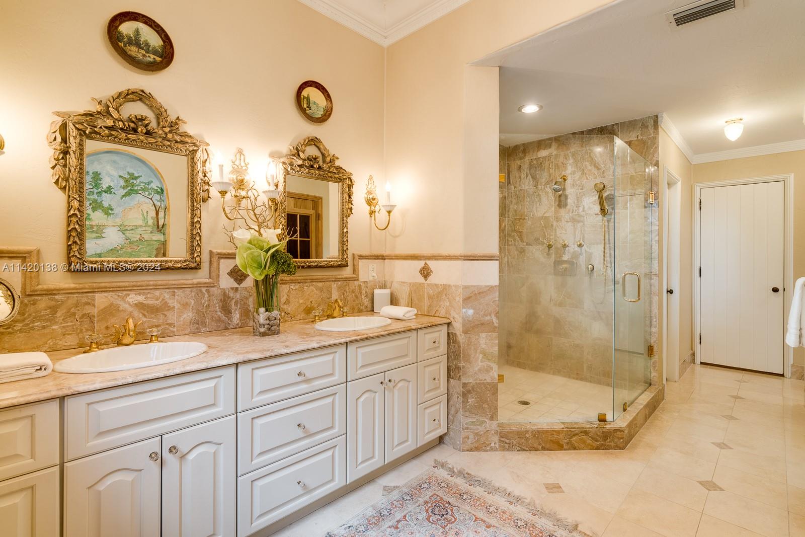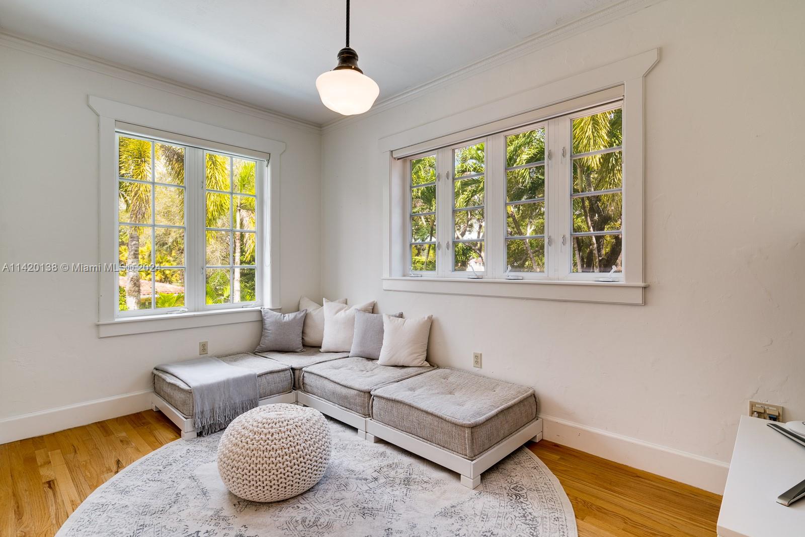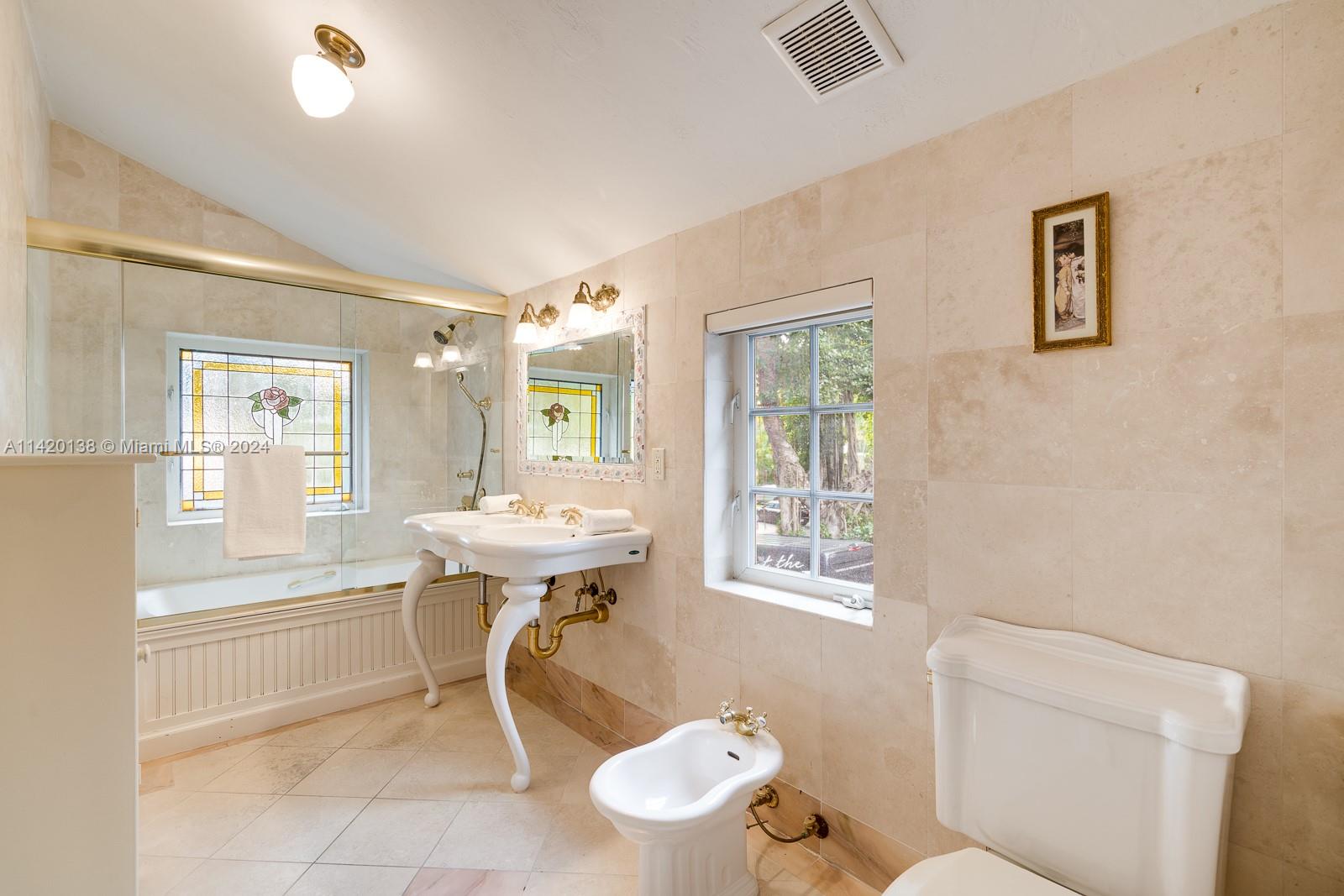 1920's Old Spanish style villa with 6397 actual square feet (5044 living area) on a 15,750 sq ft lot steps from the Biltmore Hotel & Golf Course, Salvadore Park and the Venetian Pool. Classical architecture with loggia, Palladian window frames, high timber-beamed ceiling in the main living room & sun-dappled courtyards with flowing fountains. There are 6 bedrooms and 6.5 bathrooms. The primary bedroom suite & 3 other bedrooms are upstairs. Guest bedroom and a maid's bedroom on the 1st floor. Summer kitchen, large library & office by the heated pool. The home is walled and gated and within walking distance to many Coral Gables landmark destinations and to Downtown Coral Gables. 2-car garage, impact doors & windows. Also available for annual lease at $29,000 a month or $39,000 furnished