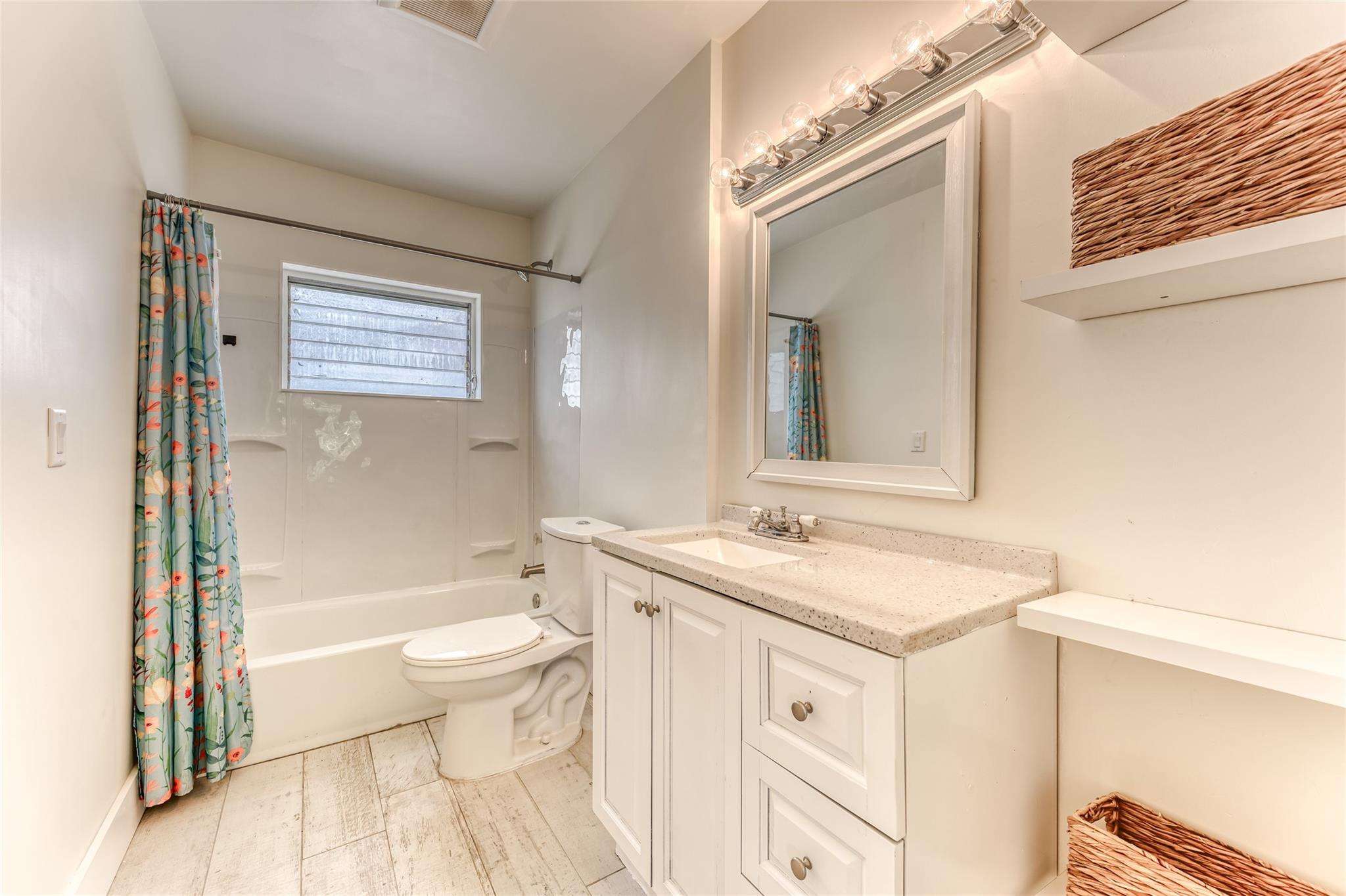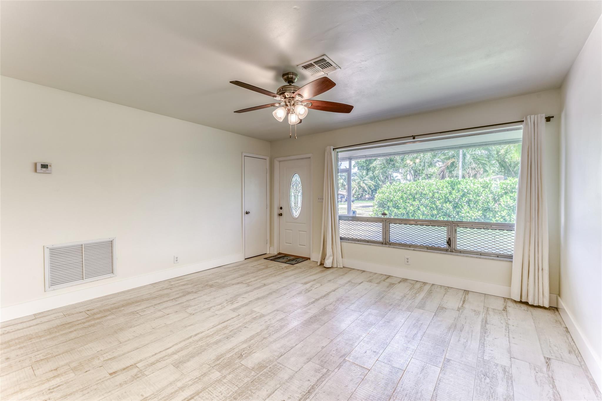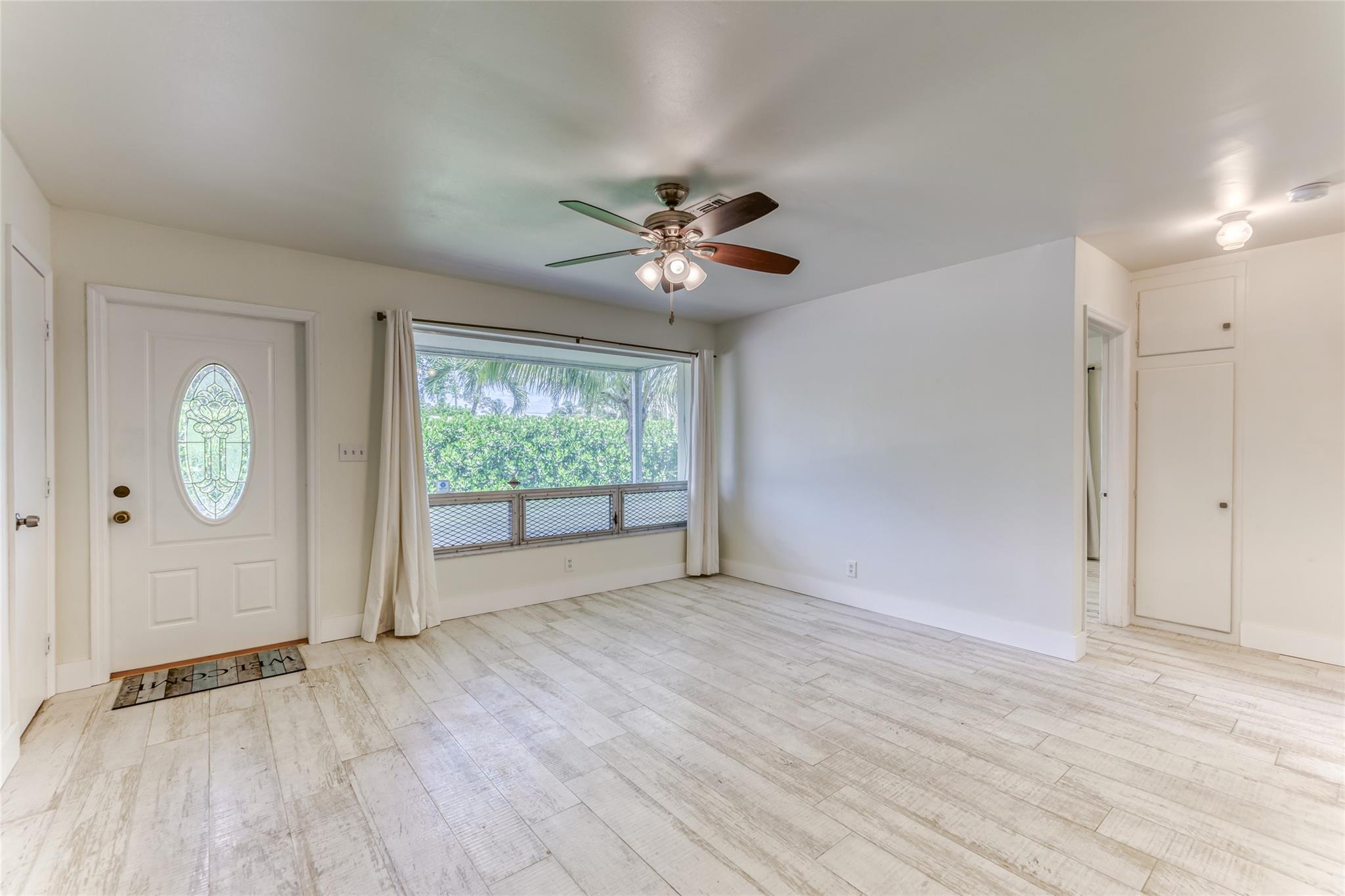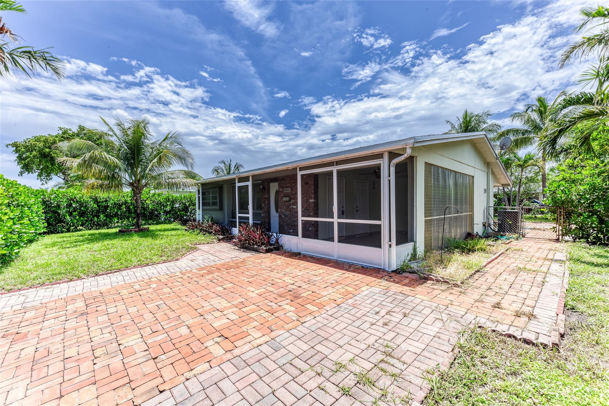 Enjoy this updated 2 bedroom, 1 bath home with a 1 car carport in the heart of Pompano Beach. This freshly painted home features a New Roof 2023, New Kitchen 2022, Updated Bathroom 2022 & new wood-plank tile throughout the entire home 2022. Enjoy entertaining in this large kitchen with white cabinets, new appliances, floating shelves, and tons of great storage. The living room is large with tons of natural light and dining room has french doors out to the back screened patio and backyard. The home also features new duct work, indoor laundry room, updated electrical, large back screened patio that is perfect for extending living space. The home has a huge fenced yard with tons of room for boat, car and RV parking. Centrally located and close to great dining, shopping and transportation.
