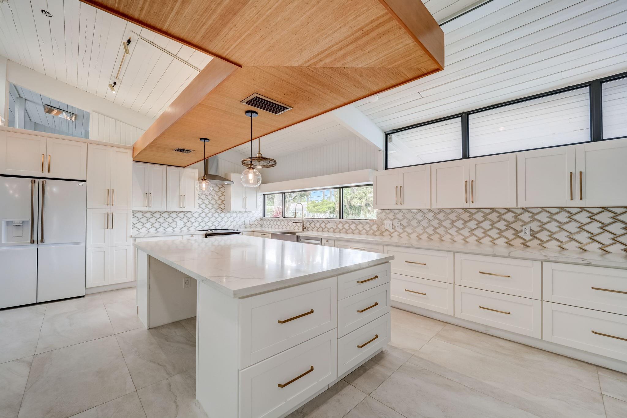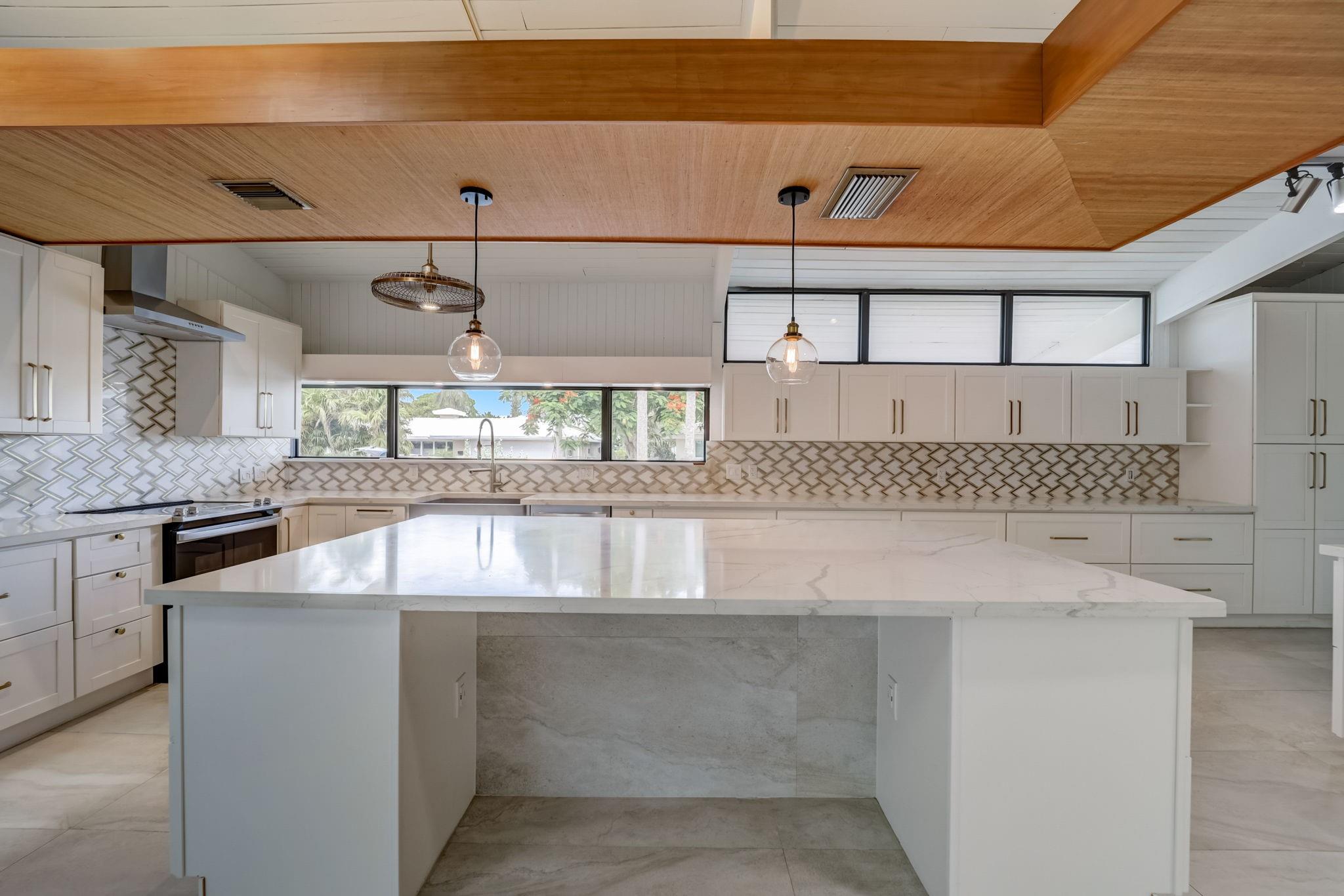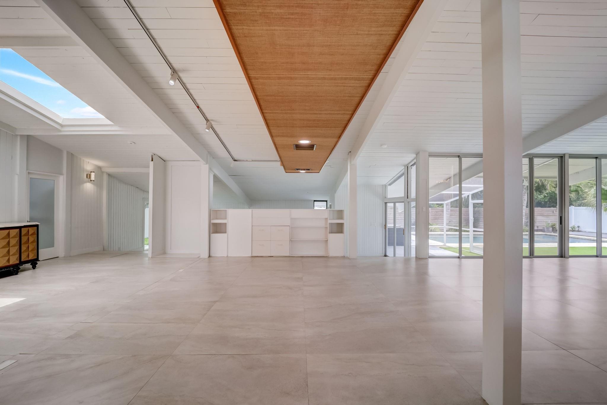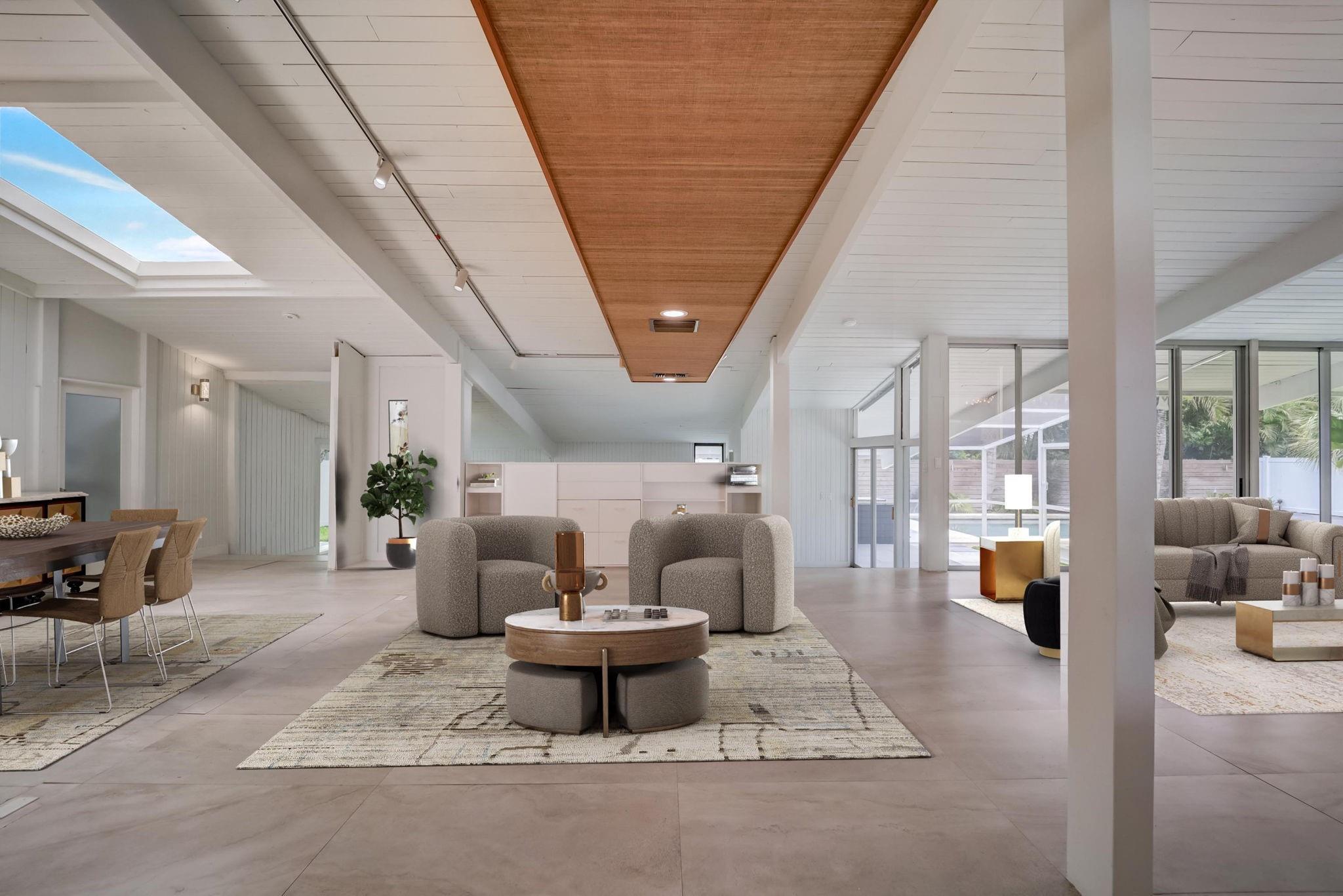 Welcome to this stunning mid-century home located in the desirable neighborhood of Coral Ridge Country Club Estates. This architectural gem offers a perfect blend of timeless elegance and modern amenities. The open-concept layout seamlessly connects the living, dining, and kitchen areas. The living areas feature large windows and sky lights that flood the space with natural light, while offering picturesque views of the surrounding landscape. One of the highlights of this remarkable property is the chef's kitchen. Equipped with top-of-the-line appliances, premium cabinetry, and a generous center island. Whether you're preparing a family meal or hosting a gathering, this kitchen is sure to impress. Brand new roof 2023 Resurfaced pool 2022