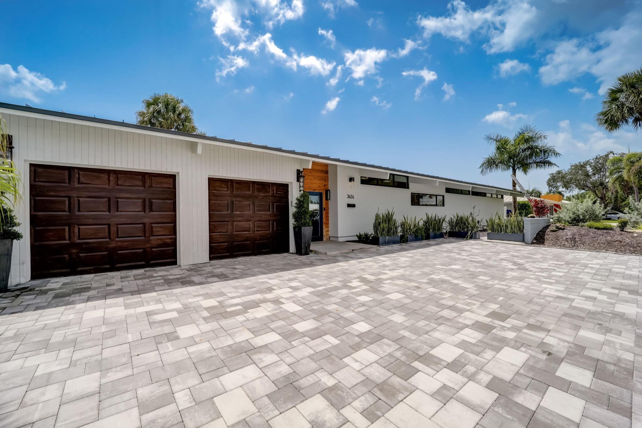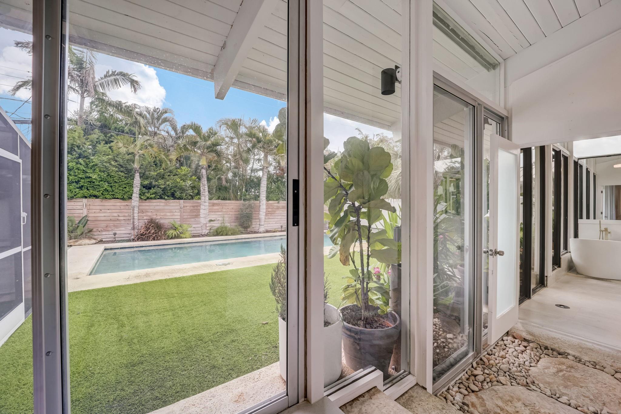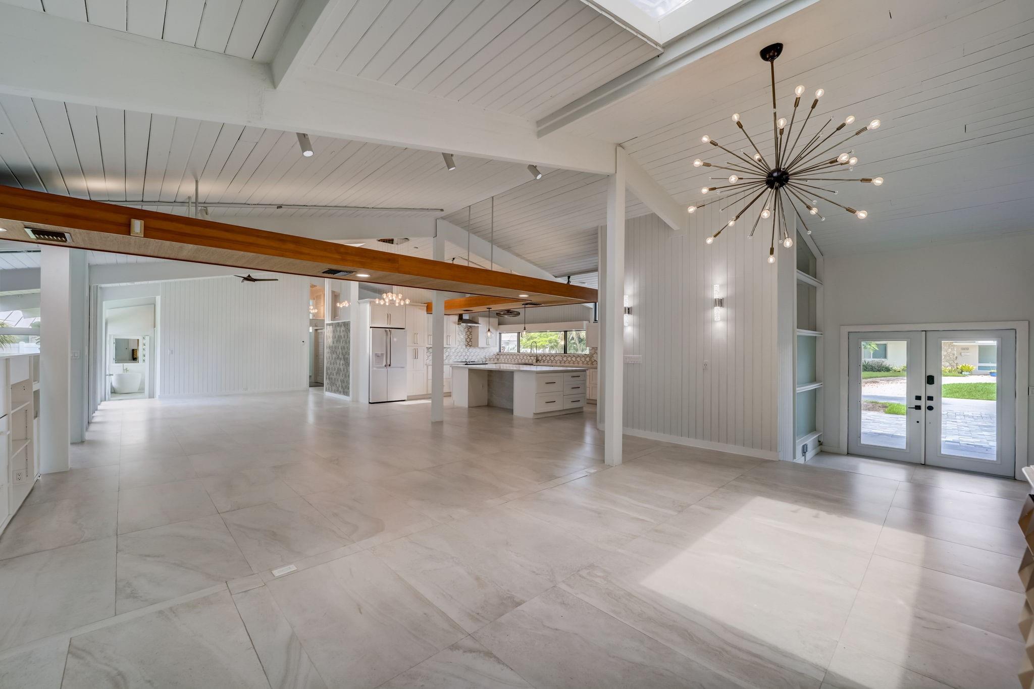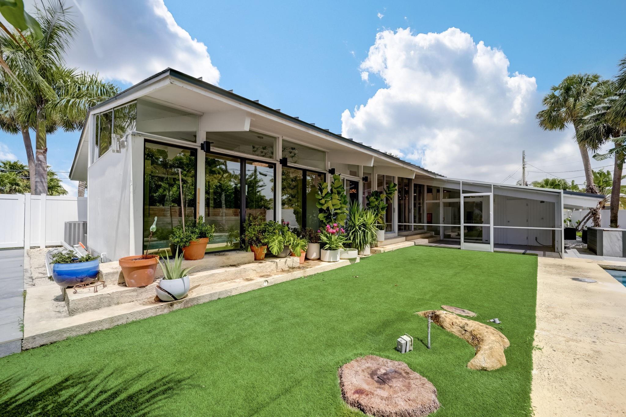 Welcome to this stunning mid-century home located in the desirable neighborhood of Coral Ridge Country Club Estates. This architectural gem offers a perfect blend of timeless elegance and modern amenities. The open-concept layout seamlessly connects the living, dining, and kitchen areas. The living areas feature large windows and sky lights that flood the space with natural light, while offering picturesque views of the surrounding landscape. One of the highlights of this remarkable property is the chef's kitchen. Equipped with top-of-the-line appliances, premium cabinetry, and a generous center island. Whether you're preparing a family meal or hosting a gathering, this kitchen is sure to impress. Brand new roof 2023 Resurfaced pool 2022