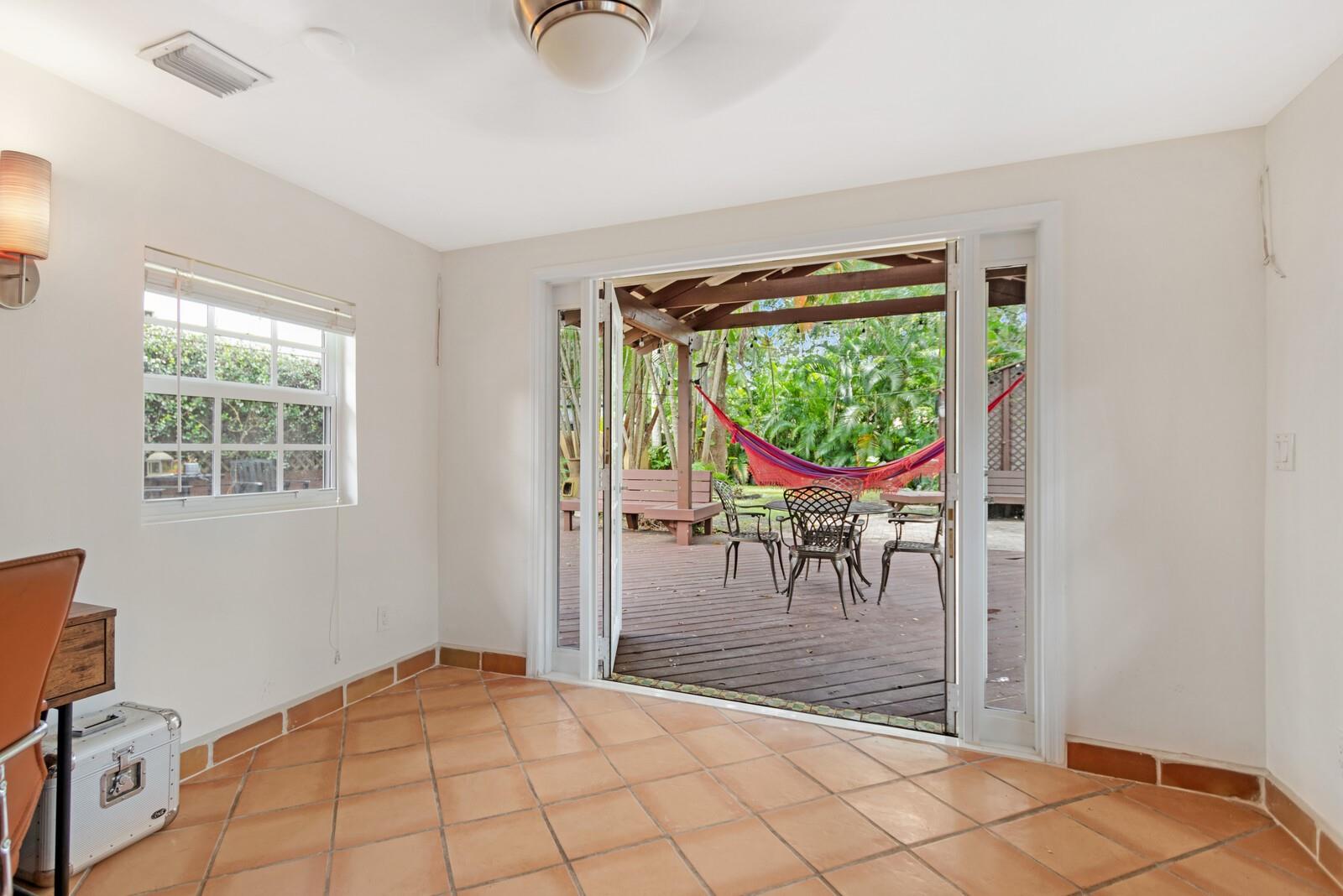 Charming Home in desirable Tarpon River neighborhood in Fort Lauderdale! Once you enter the front door, you are greeted with a Spacious Living Room & Cozy Dining Room with a wood burning fireplace! Open kitchen layout overlooking living room has stainless steel appliances! Two Large Bedrooms with Remodeled Bathrooms. Master Bathroom has Marble Finishes & Custom Vanity. Third Room can be a Bedroom, Den or Office Space and has a view of the Backyard Garden! Upgrades include All Impact Windows & Doors, Metal Roof, Newer A/C, new Gutters, Cover for Outdoor Patio, Large Pantry, & Laundry Room with Sink. Enjoy an Outdoor Oasis with wood deck & great for entertaining guests! Plenty of room for a pool! Great neighborhood with park!