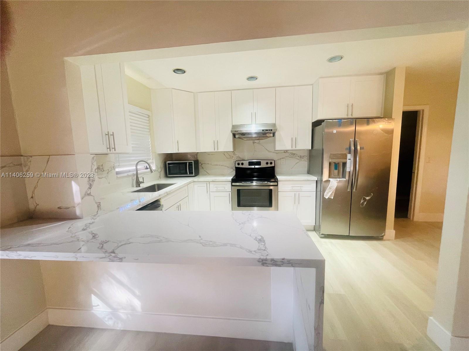 Priced to sell! Renovation completed in October! licensed roofer did entire roof maintenance and roof has good remaining useful life. A newly substantially upgraded single family home with 3 beds/2 baths in Nova Village, a desired community in Davie. Many BRAND NEW features: beautiful large kitchen premium wood cabinets and quartz counter top, stainless steel dishwasher and refrigerator, some modern chandeliers, impressive vinyl flooring and baseboards, some faux wood window blinds; garage door opener, etc. AC was just serviced! Hurricane Shutter Panels. High vaulted ceilings in living room. Ample pantries/closets. Low HOA fee. Located near highways, Nova Southeastern University, Broward College, shopping centers and stores such as Costco and Whole Foods.