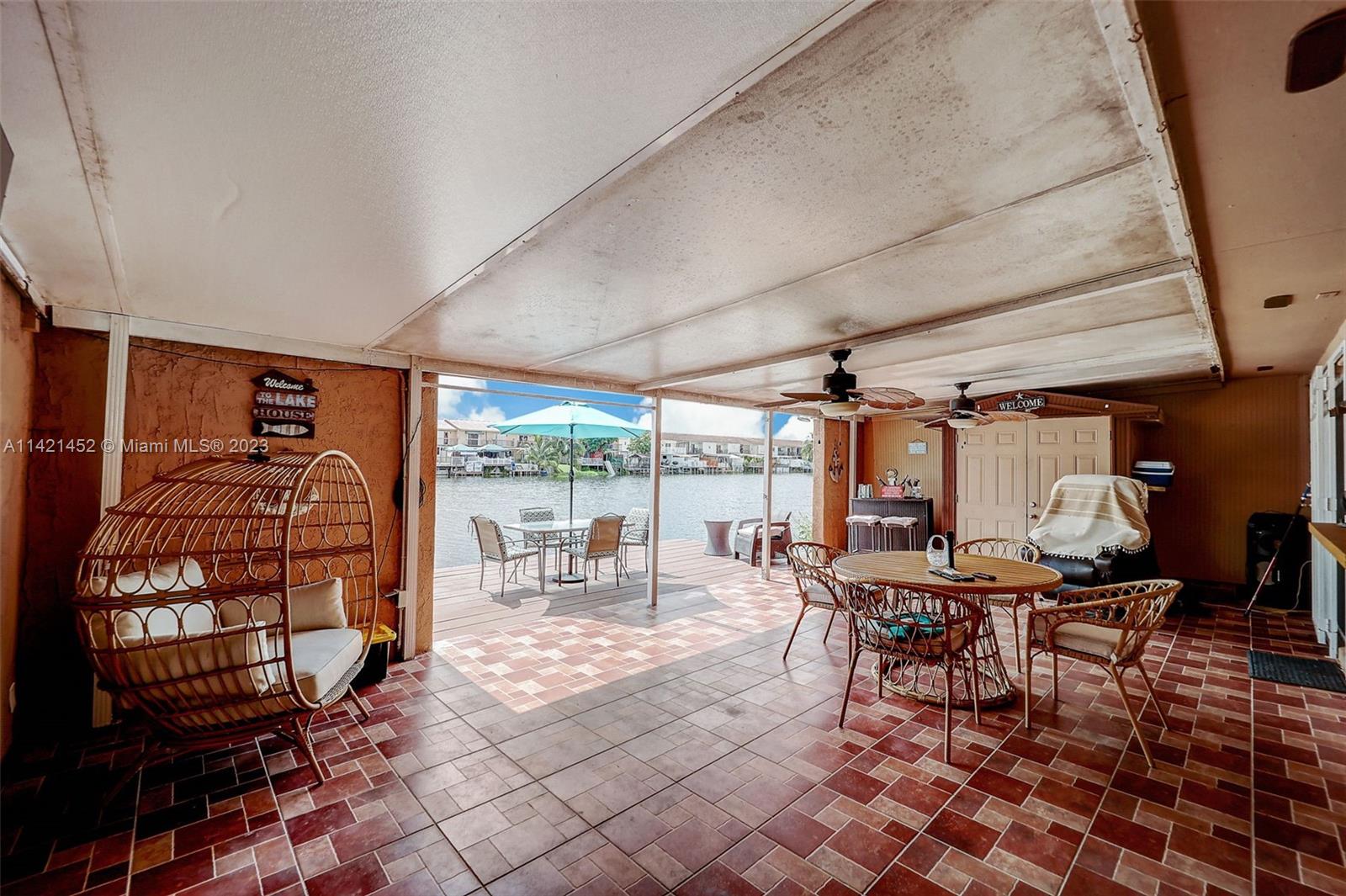 Don’t look further! This one-story single-family house in west Hialeah offers 3 beds, 2 baths. Nestled in the desirable Alameda by the Lake community. Prepare to be enchanted by the breathtaking lake views, offering a sense of tranquility that will soothe your soul. Relax on the 12 ft deck with concrete pilings, all tiled patio under the aluminum patio roof perfect for entertainment and gatherings. The vaulted ceilings inside create an open feel, updated kitchen with stainless steel appliances. Enjoy the split layout and all tile floors. A Tile roof add elegance and character. Full-size washer/dryer included. Close to great schools, and all you can need. Don't miss this opportunity for lakefront living in the City of Progress! THIS IS A MUST SEE!