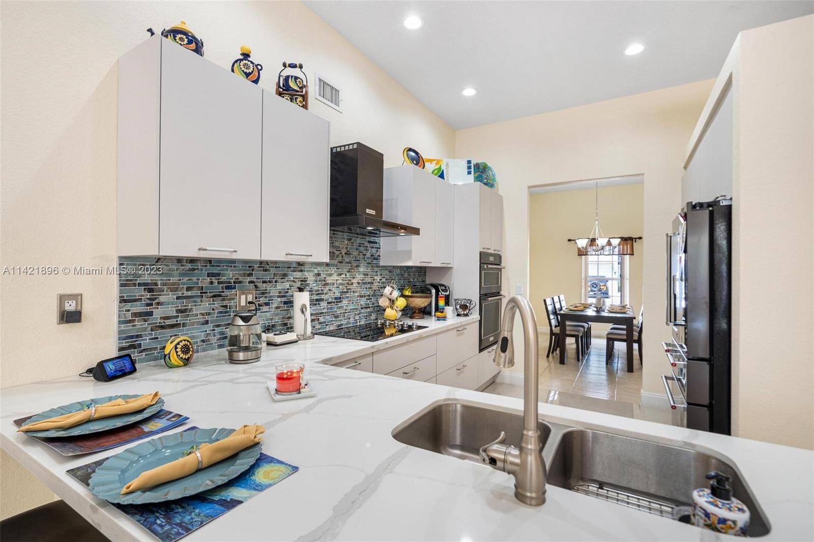 Beautiful corner house in Doral Isle, much desired Pacifica subdivision, One Story, 4 bedrooms, 2 Baths, 2 car garage, fences backyard, ceramic tiles floors, nice wood floors in all bedrooms, kitchen remodeled, Italian style cabinets, all new appliances stainless steel, guest bathroom totally remodeled, washer and dryer, new roof 3 years old, hurricane shutters. Located in the renowned Resort-Style gated community.