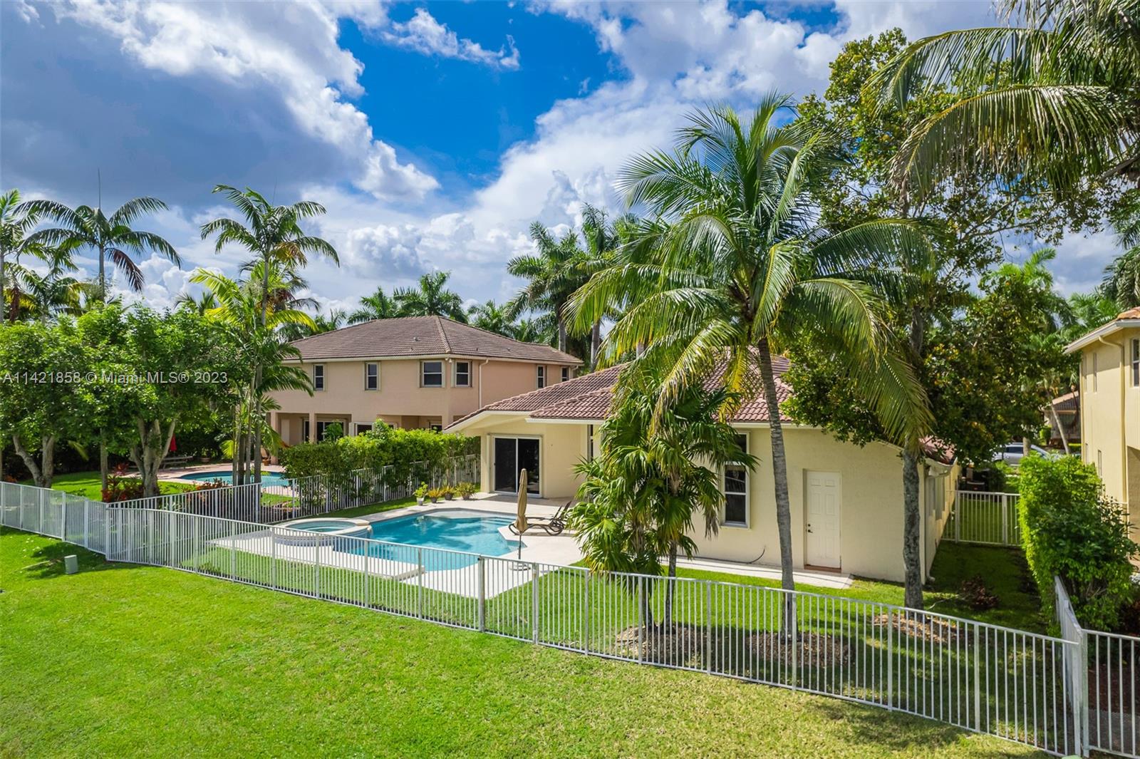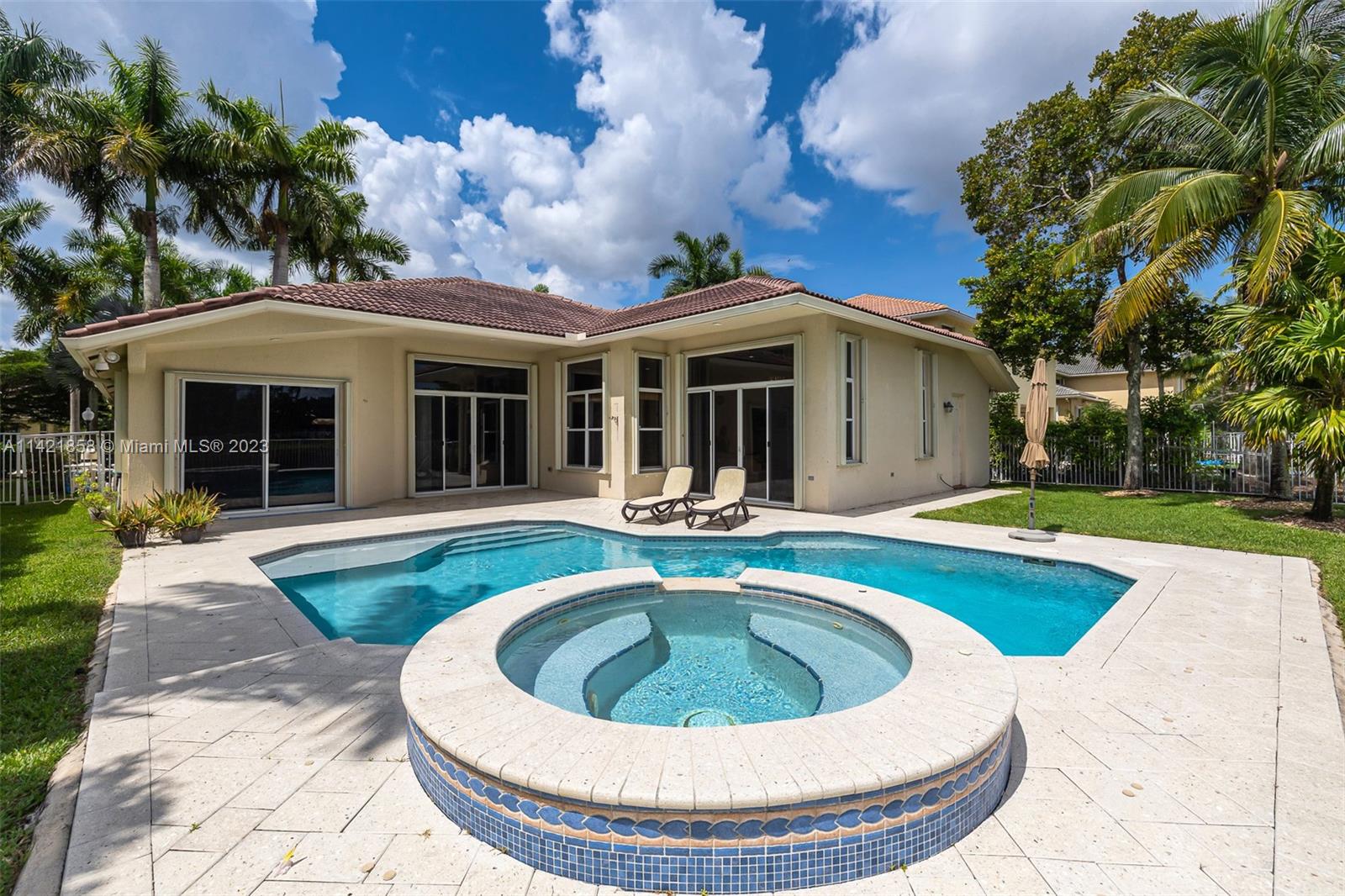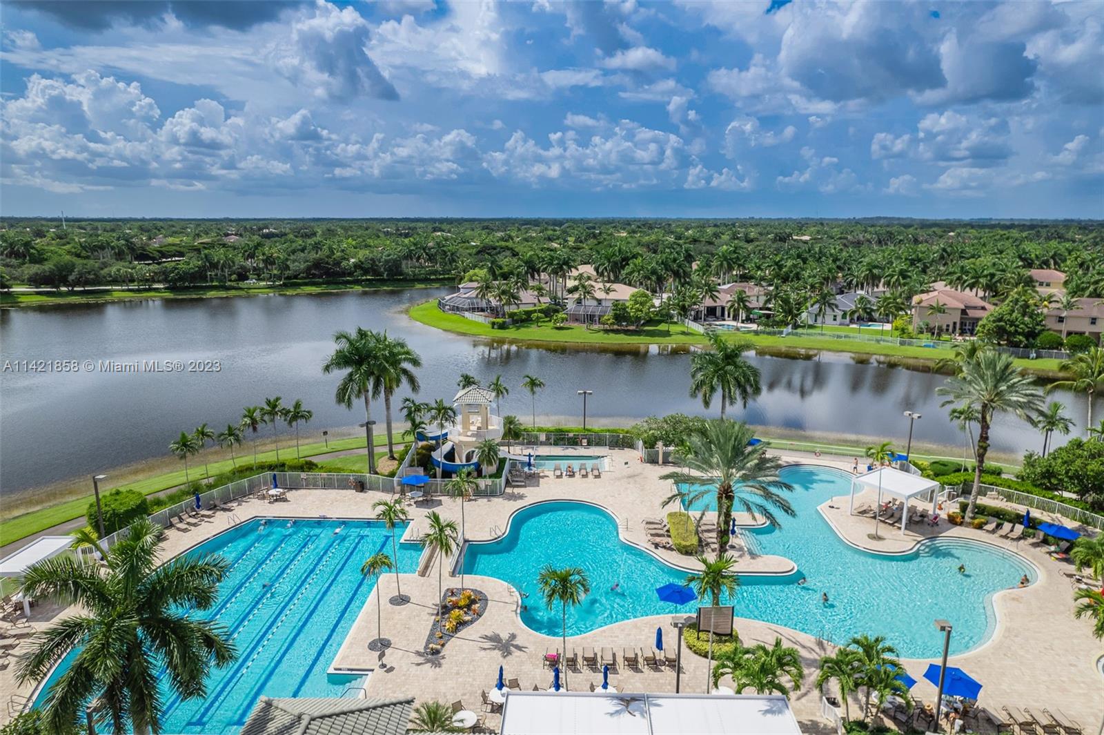 Spectacular premium location in Savanna, The Cove. Quiet royal palm tree street. Location, location, location. This water view home, has lots of natural lighting and an open, bright floor plan. Located in Gated Community of Savanna, 4 bedrooms, 3 bathrooms, 3 car garage, vaulted ceilings, laundry room, accordion shutters and an amazing lake view. Primary bedroom has 2 walk-in closets. Pool area is private. Stunning backyard with covered patio. Fabulous resort-style amenities for the entire family; clubhouse with heated lap pool, resort pool, kids pool, water slide, playground, soccer field, basketball court, hockey rink, BBQ area, miniature golf, and much more. 24 hour guarded gated community near to Weston Regional Park, Publix, restaurants and stores. Excellent A+ schools.