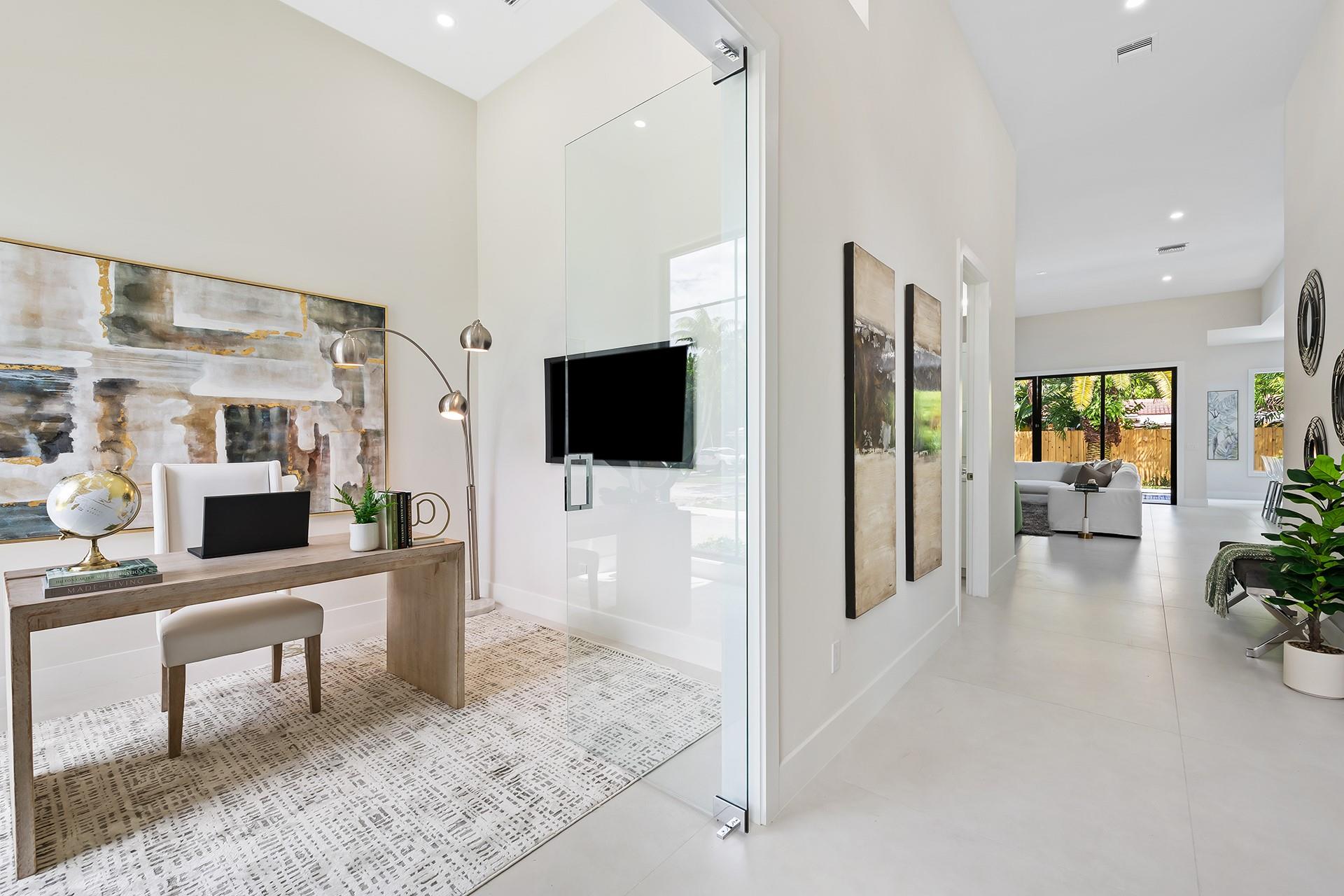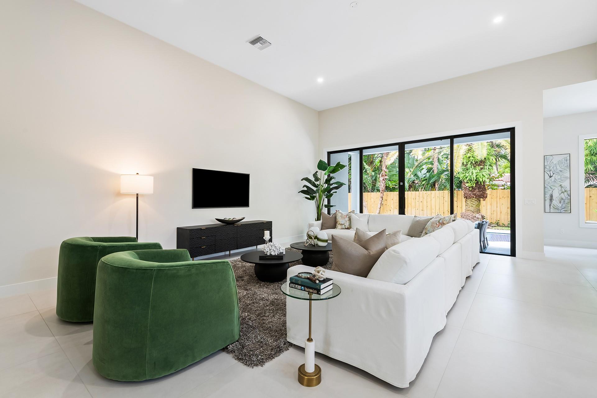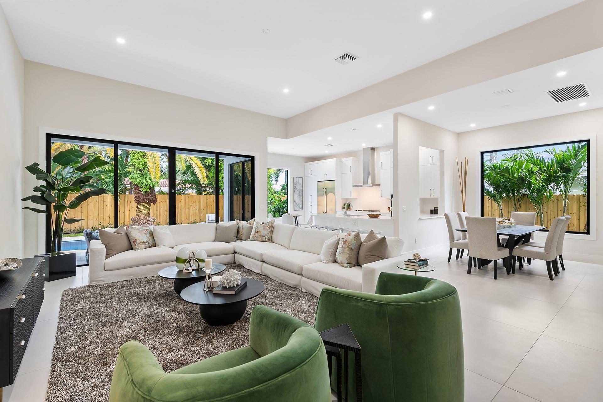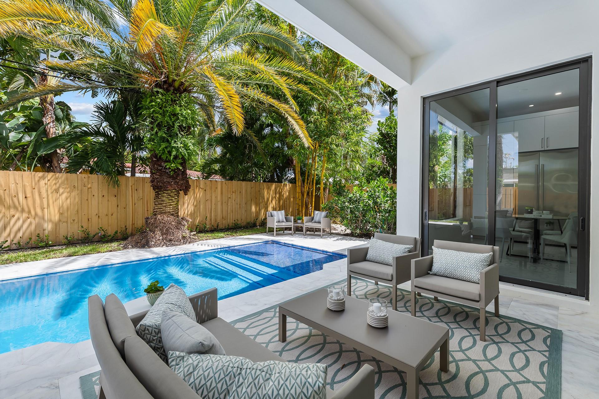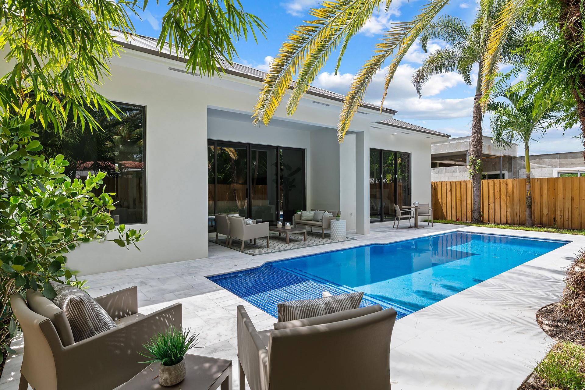 **READY FOR OCCUPANCY** | NEW CONSTRUCTION In E. Fort Lauderdale. Inspired by Transitional Contemporary Design meeting all the requirements of today's buyer. The bright open floor plan is enhanced by 11 & 13 ft ceilings & walls of glass providing an open concept lifestyle. Multiple sliding doors blend indoor & outdoor living spaces. A covered loggia overlooks the pool & tropical landscaping. The large eat in kitchen opens onto the enormous great room & dining room. The primary suite boasts a coffered ceiling, 2 large walk-in closets & spa inspired bathroom. 2 additional bedrooms, 2 additional full bathrooms, a designated home office & laundry room complete the floor plan. Minutes from restaurants, supermarkets, shopping, fitness centers, parks and the beach. Square footage from architect.