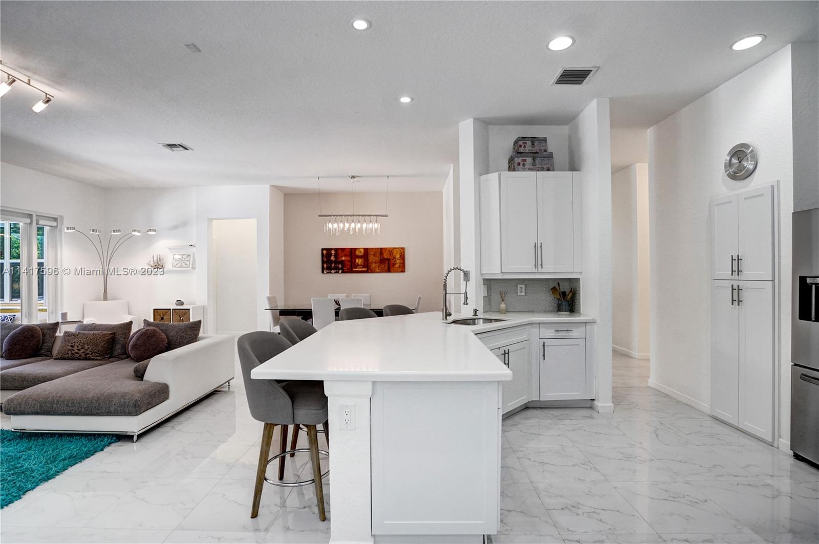 Welcome to your dream home in the exclusive resort style, guard-gated community of Savanna. Enter this beautiful home to find stunning porcelain flooring, open concept, renovated bathrooms, and a modern chef's kitchen that’s a culinary enthusiast's delight featuring induction stove top, quartz countertops, high-end stainless steel appliances and abundant space for meal prep. An enclosed patio overlooks a modern salt-water pool with a gorgeous new pool deck. Beautiful window treatments highlight the entire home. Amazing community amenities include community pool and a water slide, a playground, miniature golf, a soccer field and so much more. All 'A" rated schools, HOA Paid quarterly, this is an amazing property.