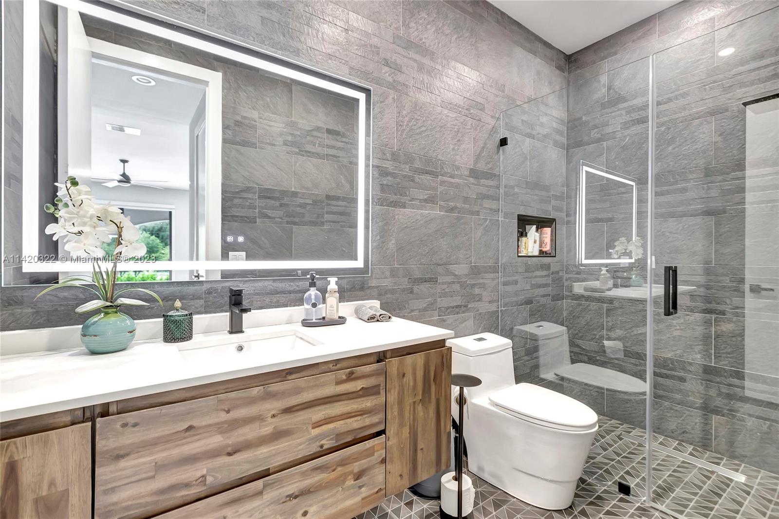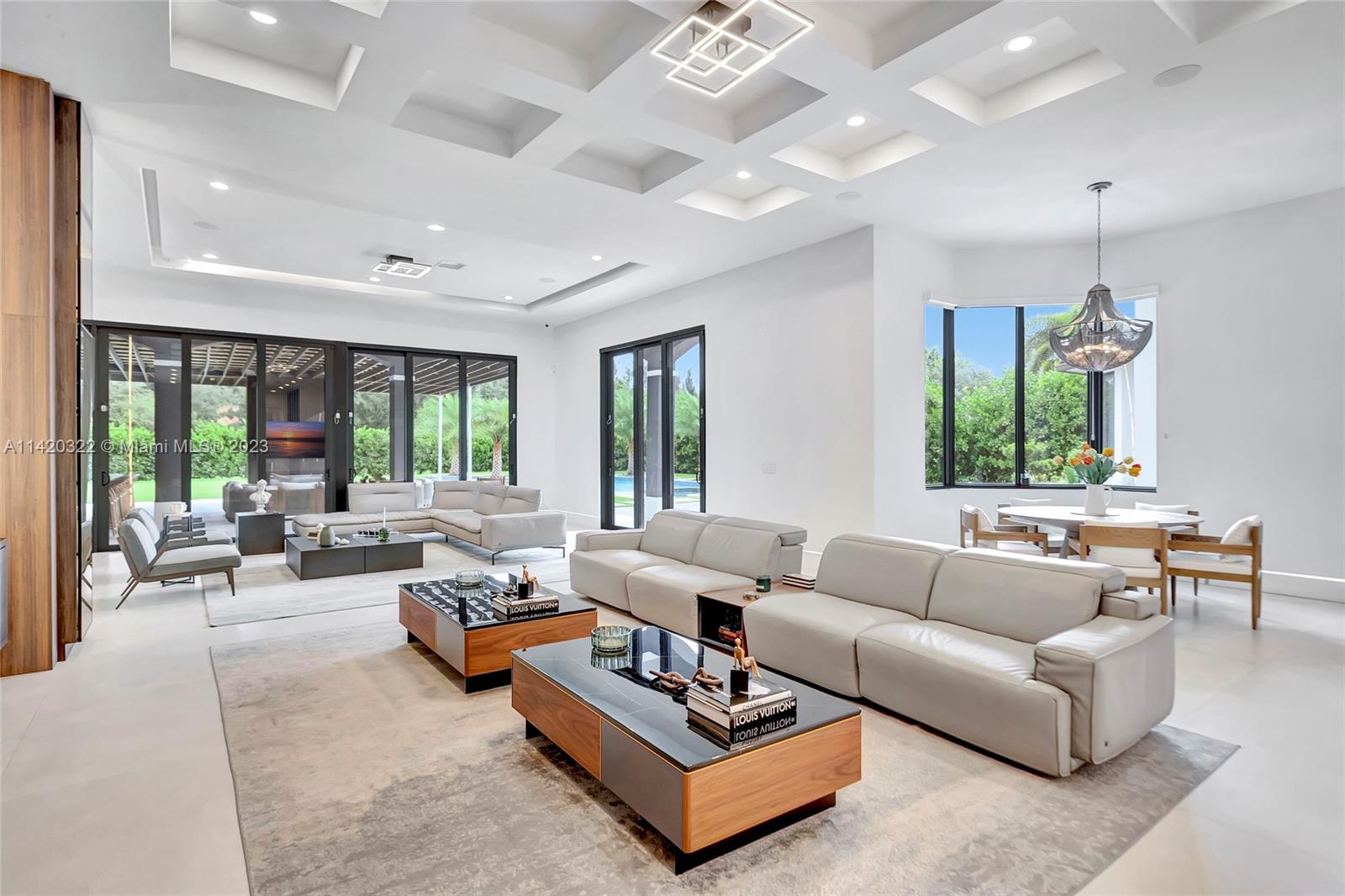 One of a kind masterpiece fully remodeled with top quality finishes & No expense spared. Majestic entrance with luxury pivot door, high 24' ceilings, floating stairs & bright backyard views. Home features 8 beds, 9.5 baths + office & a state-of-the-art theatre room. Modern LED baseboards, Surround system & Impact windows/doors throughout. Kitchen is every chef’s dream including exotic Taj Mahal quartzite countertops, gas stove, wine cooler & top-of-the-line Dacor/Miele appliances. Designer handcrafted stone wall for wine collectors. Tropical paradise backyard fully equipped for the perfect entertainer featuring a 70’x30’ pool with swim up bar/infinity edge waterfall, custom summer kitchen, pergola, sunken seating area, & green space for outdoor activities. 4 car garage & oversized driveway