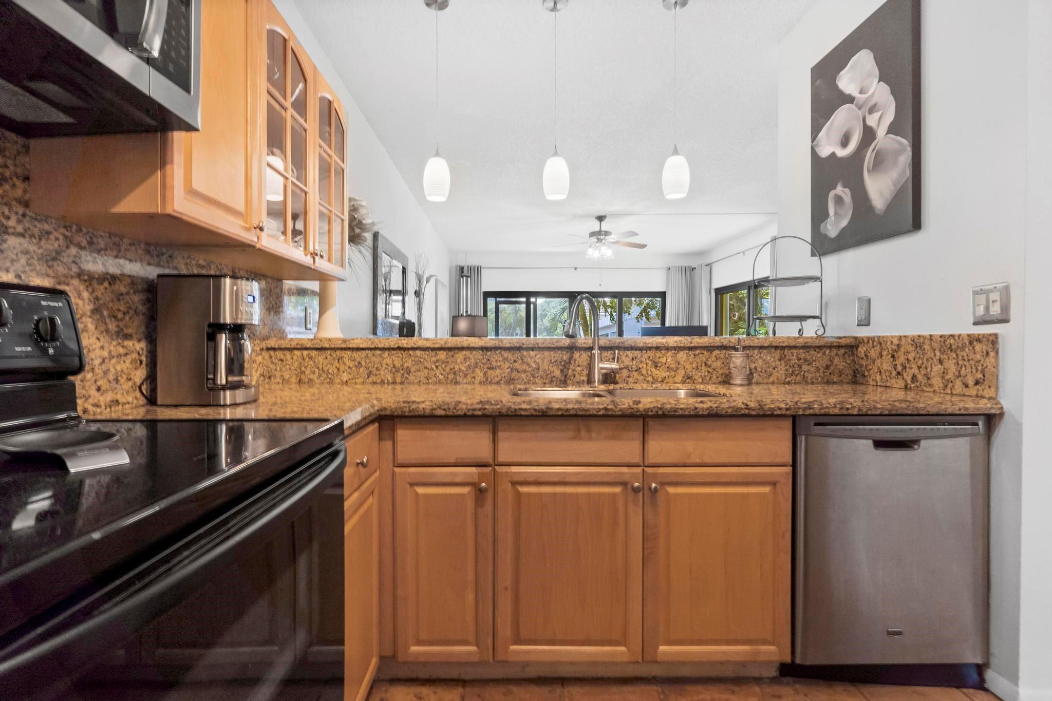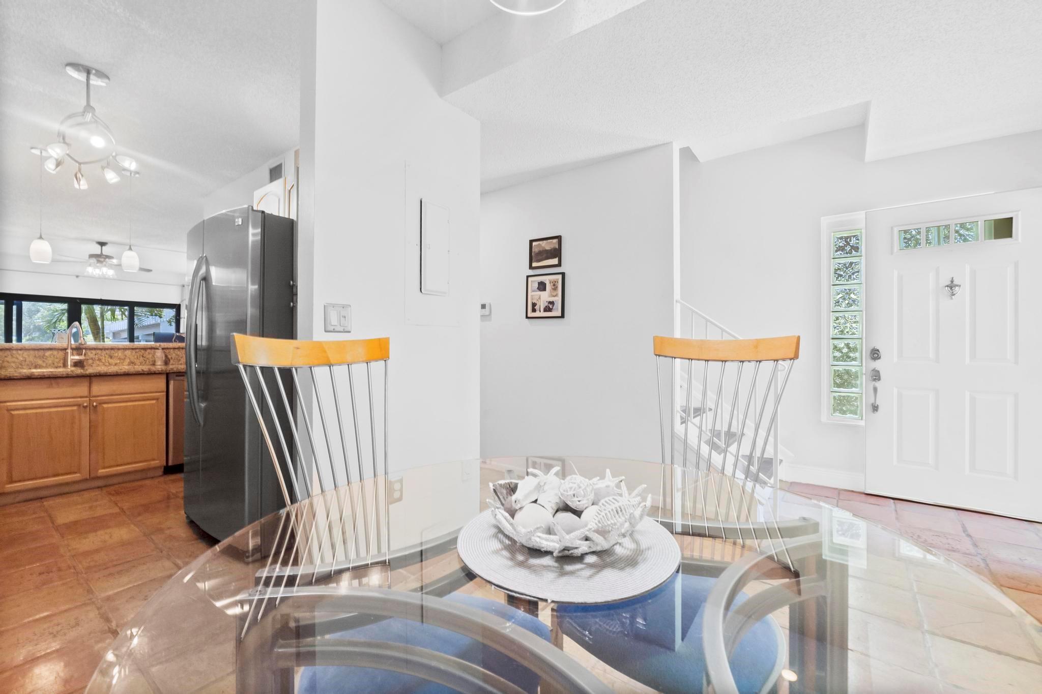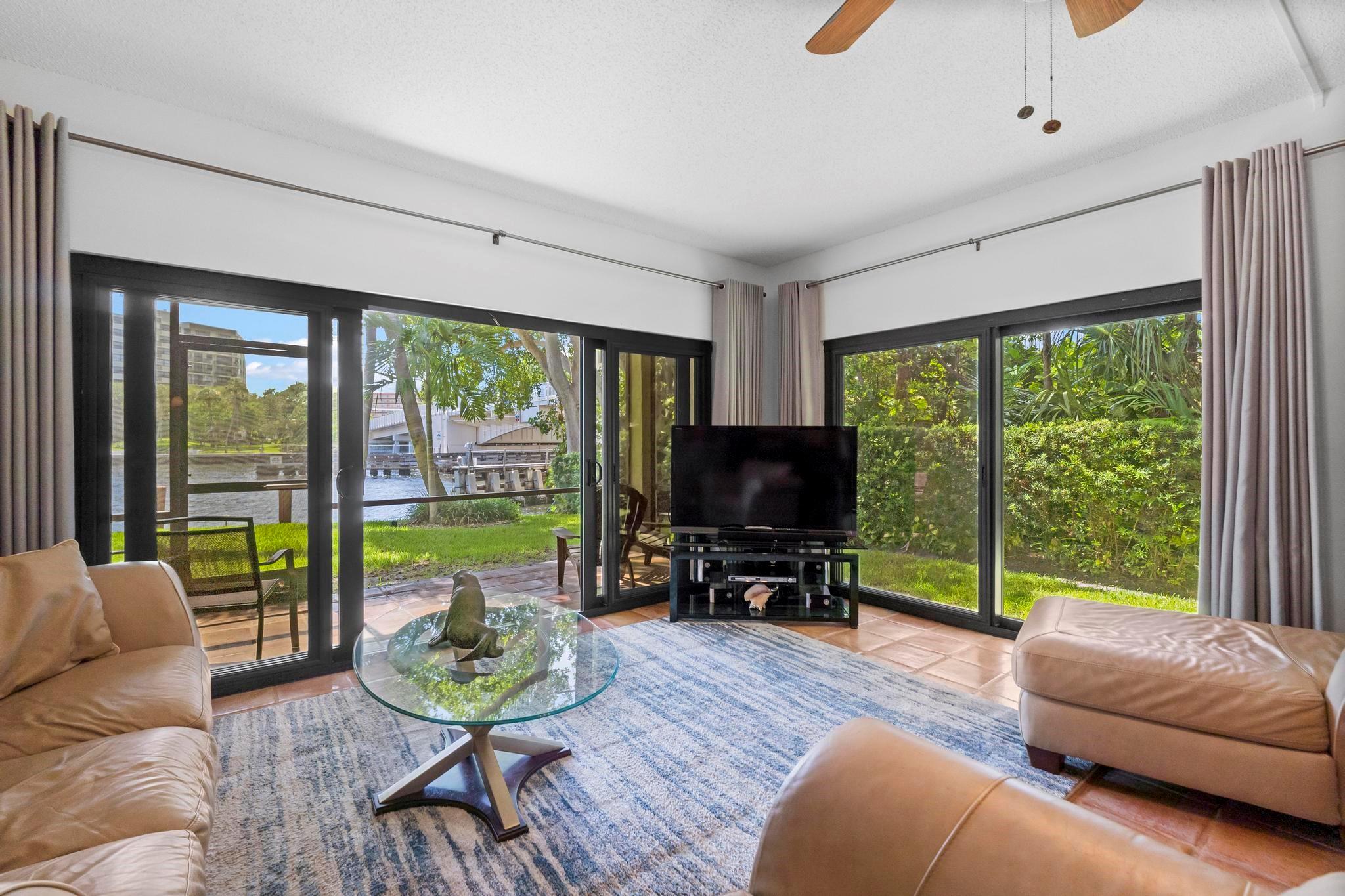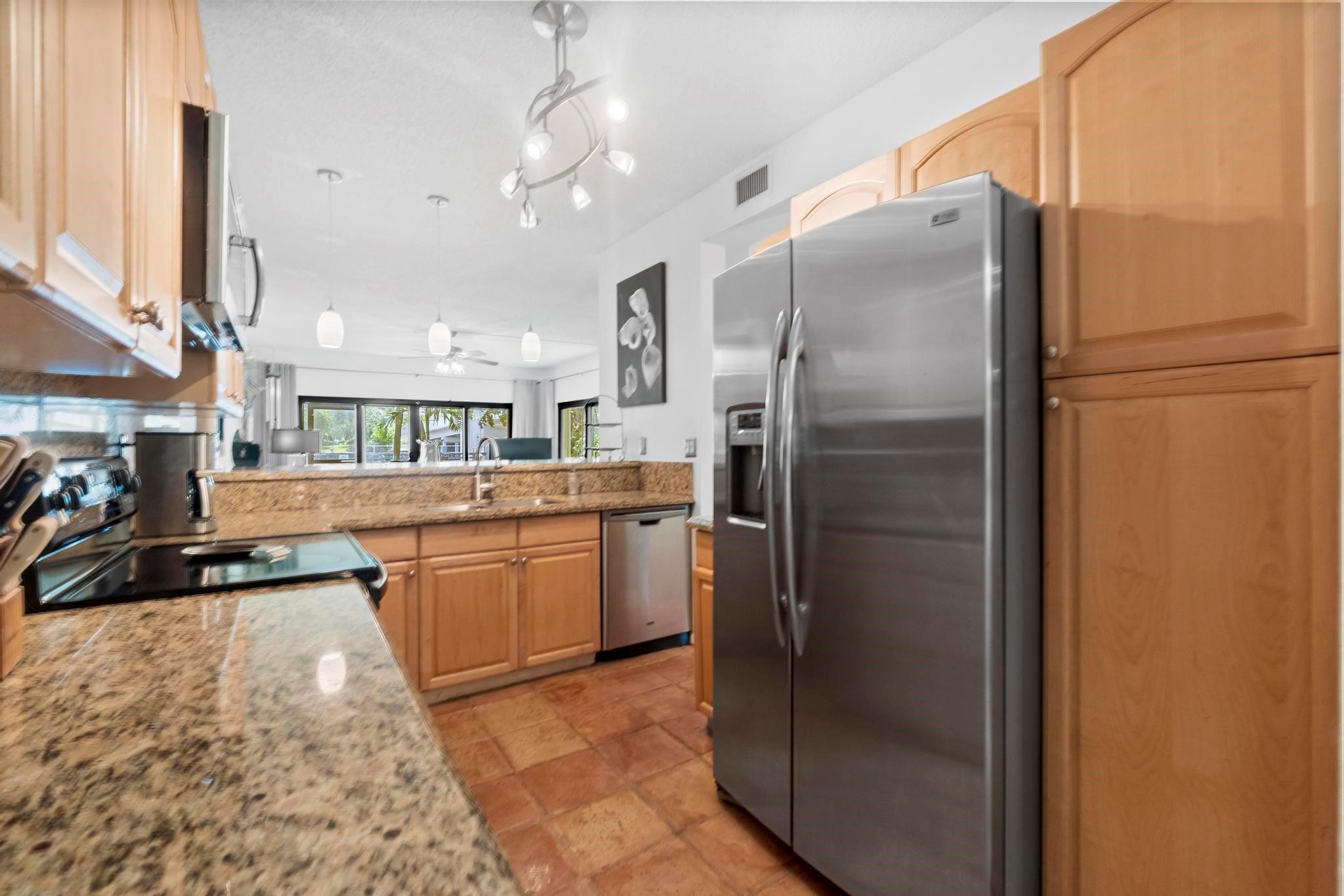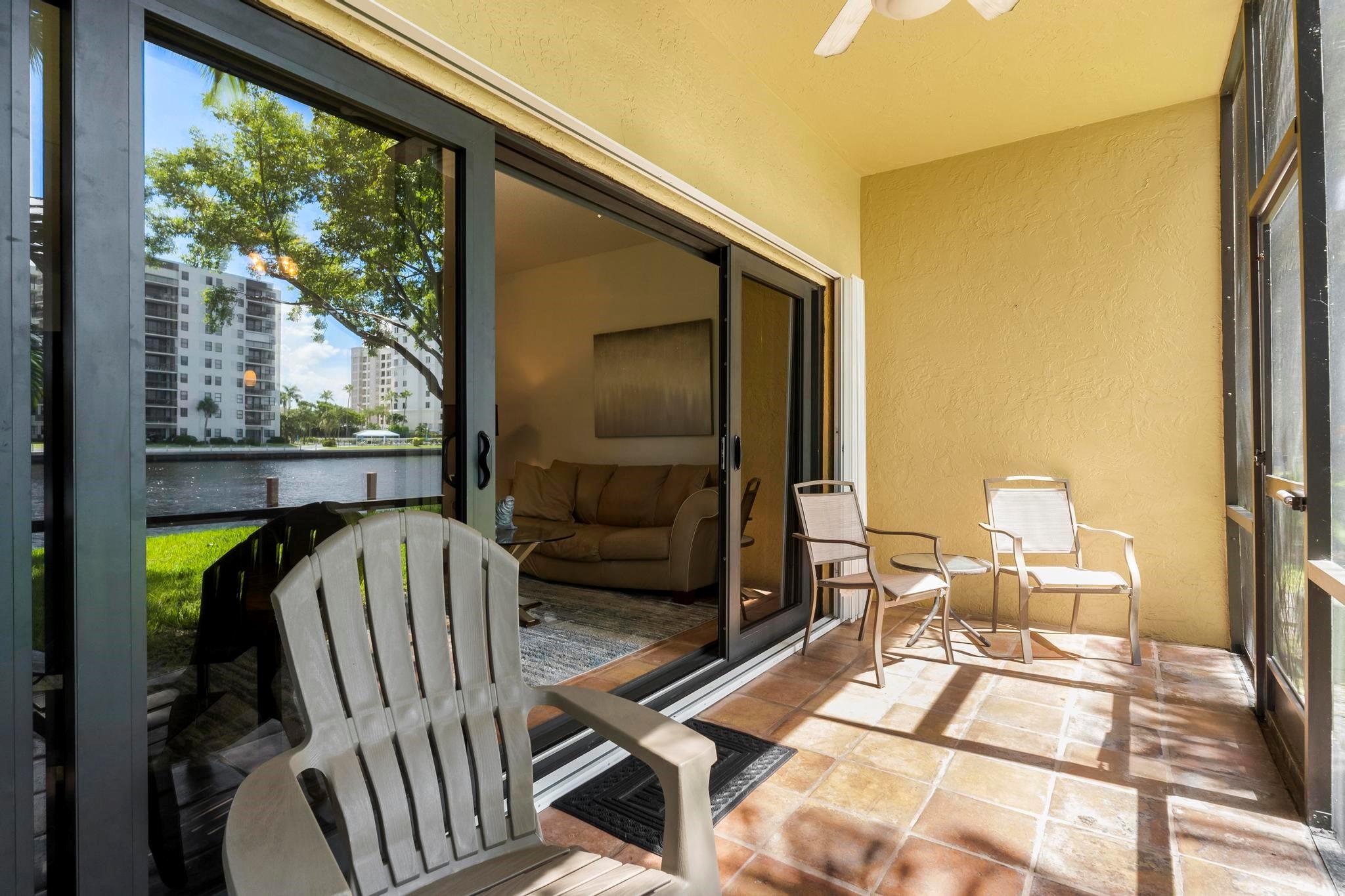 Rarely available beautifully remodeled & furnished end unit townhome w/private side yard is located directly on the Intracoastal & 1 bridge south of the Hillsboro Inlet! Many recent updates, including all bathrooms, gourmet kitchen with stainless appliances, granite counter tops and raised bar area. First floor has tile flooring. The bedroom located on the main level can be used as an office. Living/Dining room with 12' sliding doors to screened porch, with Intracoastal views. Upstairs has wood floors! Master suite w/vaulted ceiling. Guest bedroom & full bath. Combo of impact doors & windows & storm shutters. 1 car garage & assigned parking for 2nd car. Private patio. Heated pool w/hottub. Walk to beach, all the newer restaurants & shopping! Maintenance fee includes water, sewer & trash.