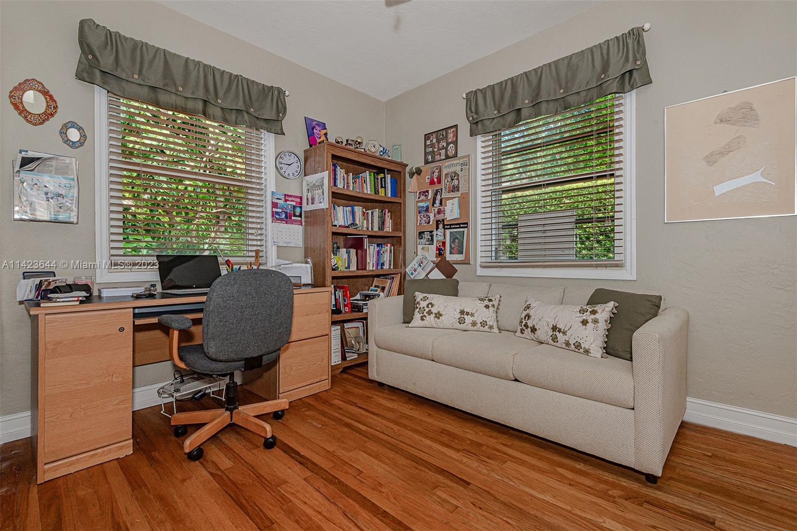 Lovely two bedroom, two bathroom home plus family room in downtown Coral Gables. Walk to Miracle Mile, theatres and restaurants. This beautiful home has been completely updated and kept in immaculate condition. House has impact windows and doors, circular driveway for six cars, alarm system, sprinkler system, ample closets, beautiful landscaping, and a great backyard with concrete wall and spacious entertaining area. Kitchen has lots of light with white quartz countertops and stainless steel appliances. Washer, dryer and dishwasher are brand new. Roof is 22 yr old, recently professionally certified to be in perfect, water tight condition. Plumbing is almost 100% copper and PVC. This house is in perfect, move-in condition. Do not miss the opportunity to own a great home at this price.