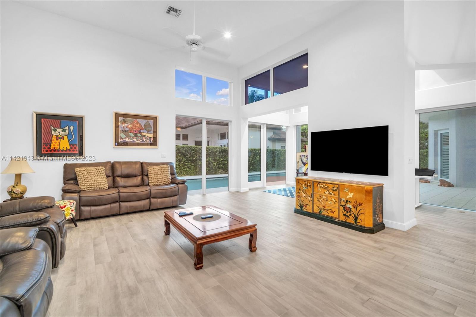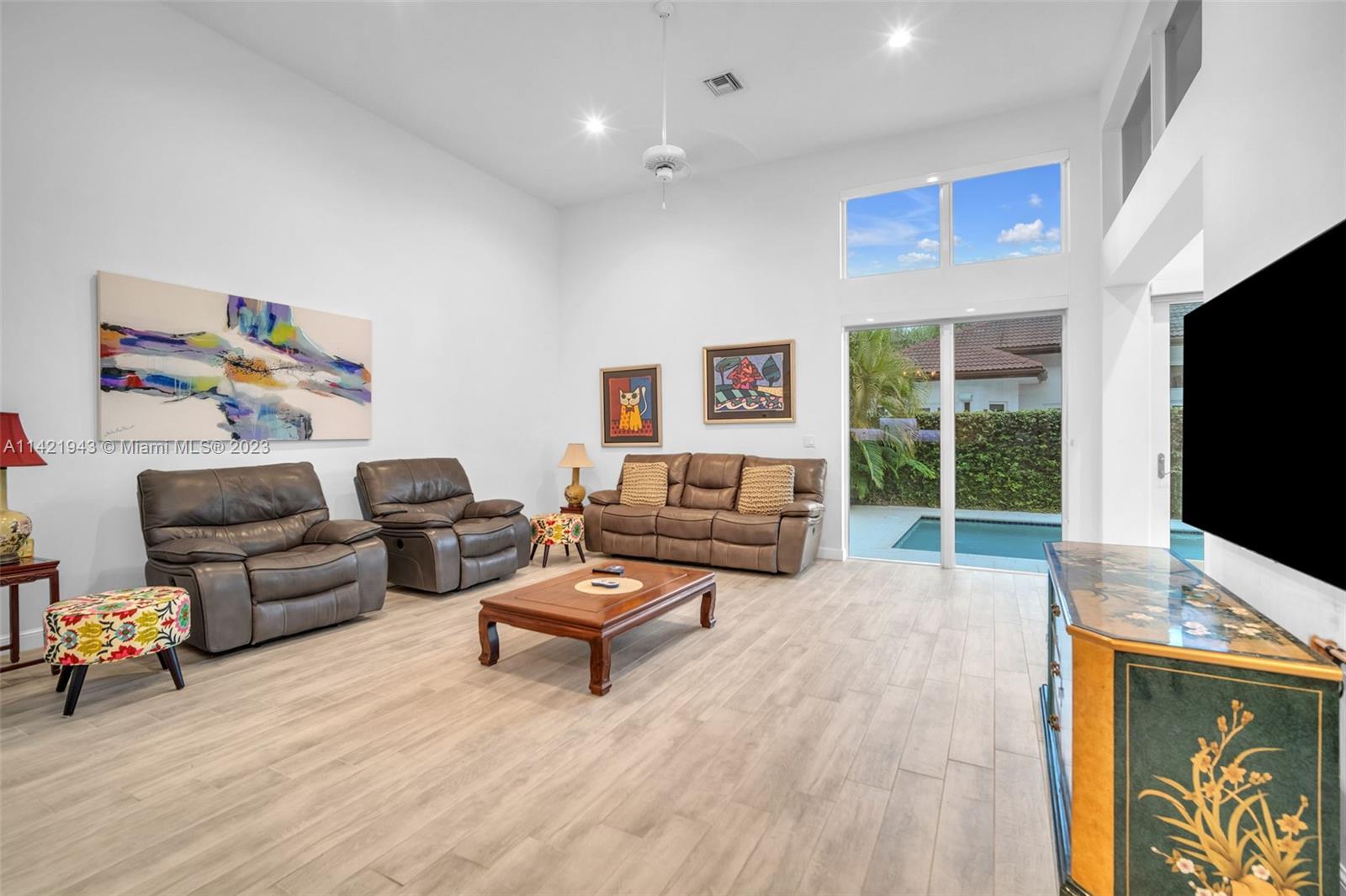 This 3 bed 3 bath + office has captivating high ceilings creating an airy & spacious ambiance, allowing natural light to flood the interior illuminating every corner. Indulge in the ultimate pampering experience with the new, modern master bathroom with spa-like atmosphere. Expansive family pool designed for both relaxation & fitness allowing you to maintain an active & healthy lifestyle right in the comfort of your own backyard. Open-plan layout seamlessly connects living, dining, & kitchen areas, making it an ideal space for hosting memorable events & creating lasting memories. Amenities include 24 hr guarded gate, 3 clay tennis courts, gym, yoga, clubhouse, basketball, soccer, multiple lakes, manicured grounds & tons of shade created by stunning oak trees throughout the community.