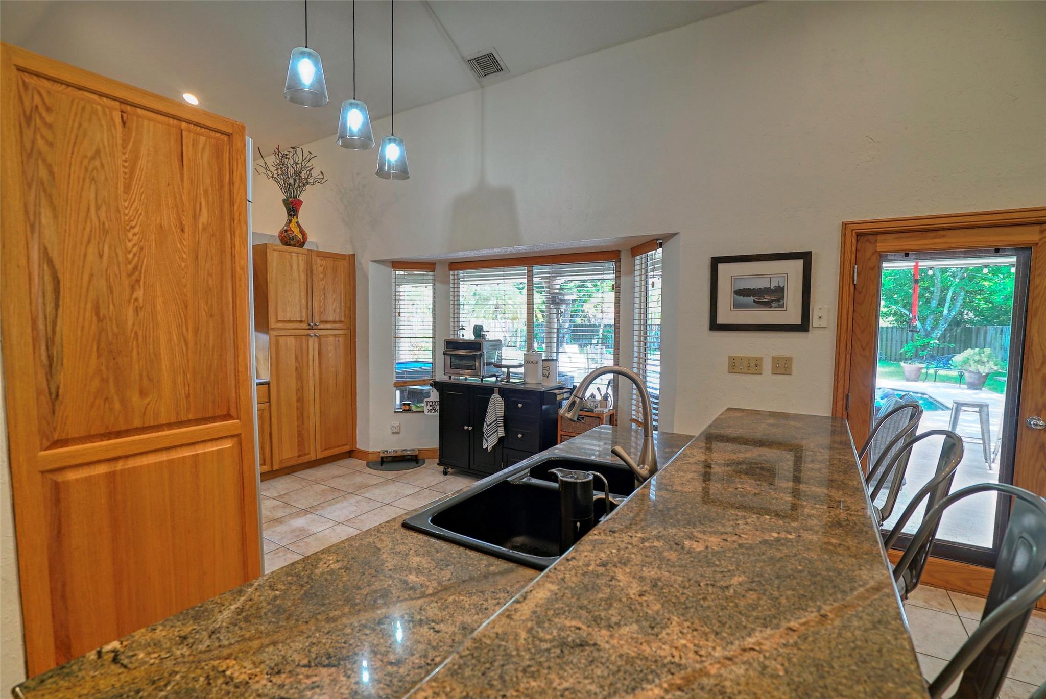 Welcome to this stunning 3-bedroom home with an additional bedroom suite, nestled in the sought-after Shenandoah. The open floor plan, vaulted ceilings, and ceramic tile create a captivating ambiance. The large gourmet kitchen with French doors leads to the inviting pool area. Imagine laughter as guests enjoy the saltwater pool and spa. A full pool bathroom offers convenience for outdoor living. Tranquility awaits in the master bedroom on the 1st floor, with an expansive master bathroom. Upstairs, two bedrooms and an extra bedroom offer versatile spaces. The roof is approximately 4 years old. Excellent shopping, delightful restaurants, and easy access to major expressways, you will have everything at your fingertips.