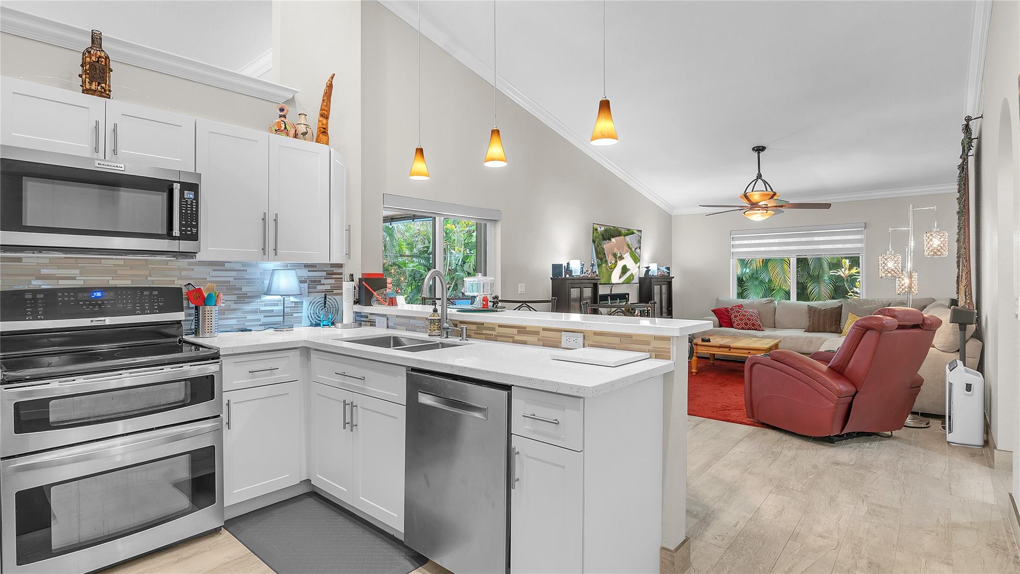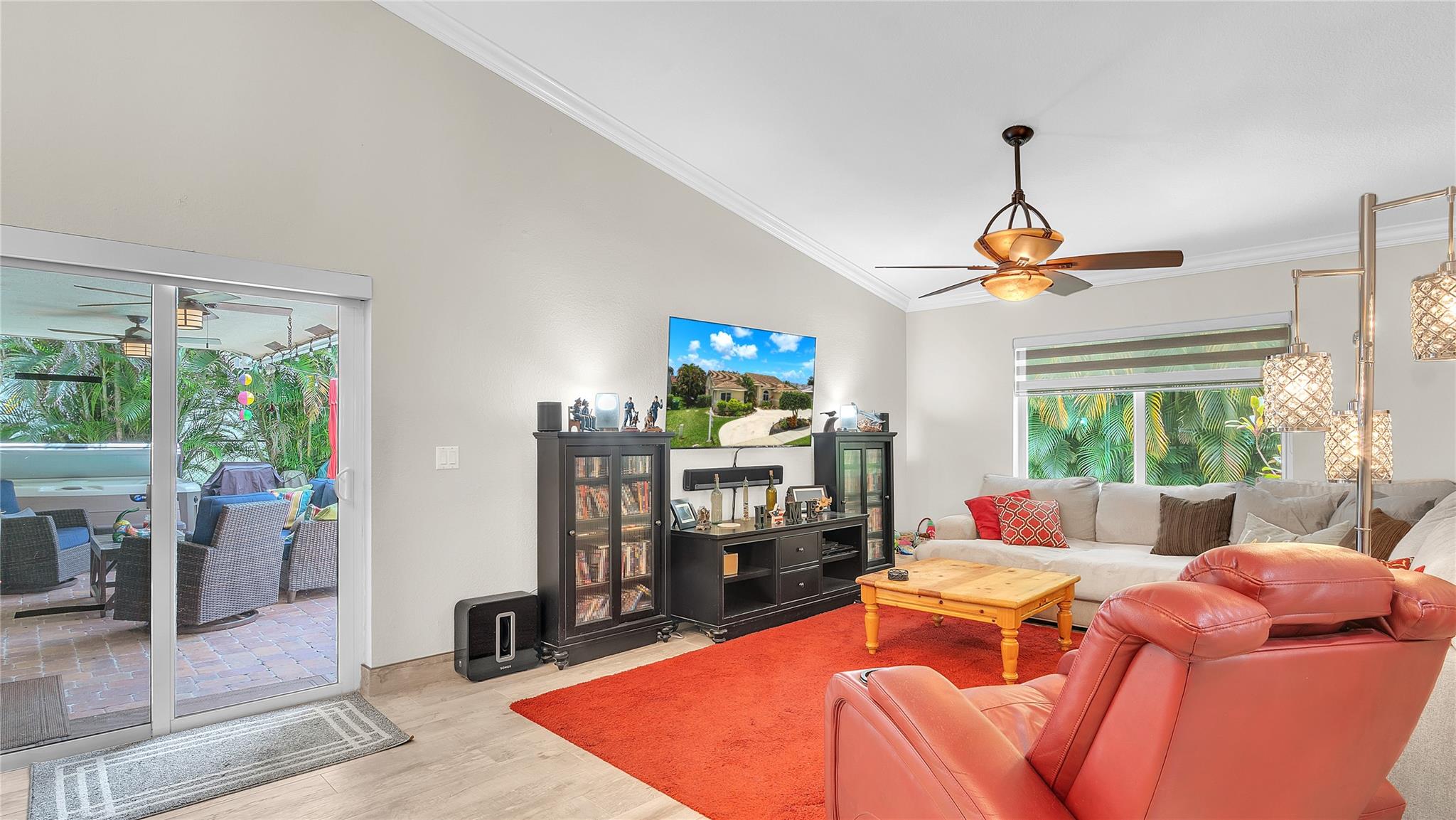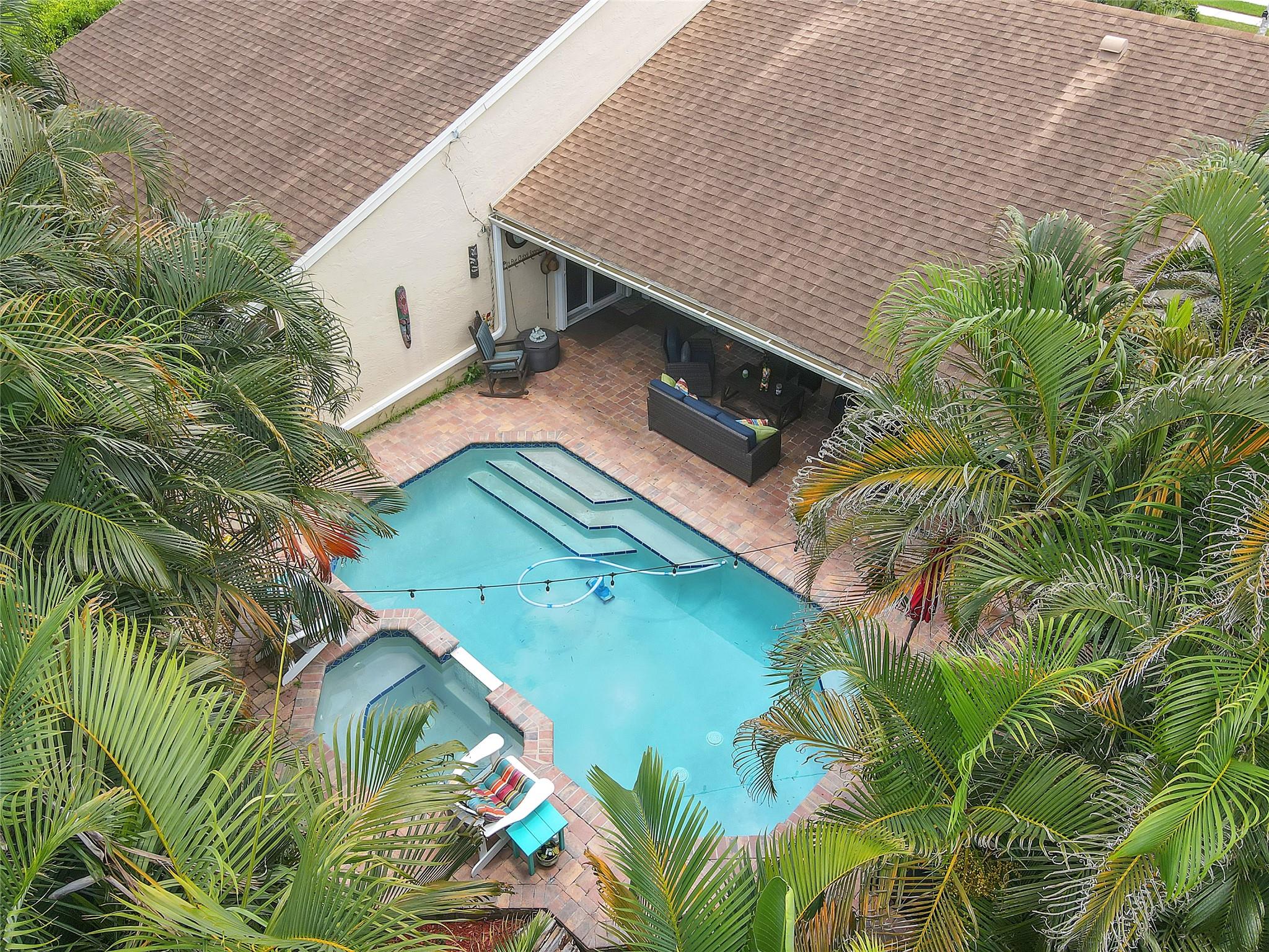 Situated in the quiet community of Nob Hill Palms, ½ Mile from Excellent schools, this pristine 3BR/2BA home boasts Heated Swimming Pool! No detail overlooked with Wood-like Tile flooring throughout the entire home, vaulted ceilings w/crown molding, high impact windows & doors! Gourmet kitchen boasts lots of counter space, pantry, SS Appliances & double oven! Walk in closets in the oversized bedrooms with lots of natural light & all custom Light Filtering Dual Shades throughout! Both modern baths feature double vanities but nothing says Relax & unwind like your stunning master en suite! Fully fenced private backyard, huge covered lanai & still ample room for playsets & toys! Features include 2 New Dual AC Zones, Roof 2016, 50 amp RV Hookup, epoxy sealed garage w/ silent opener & much more!