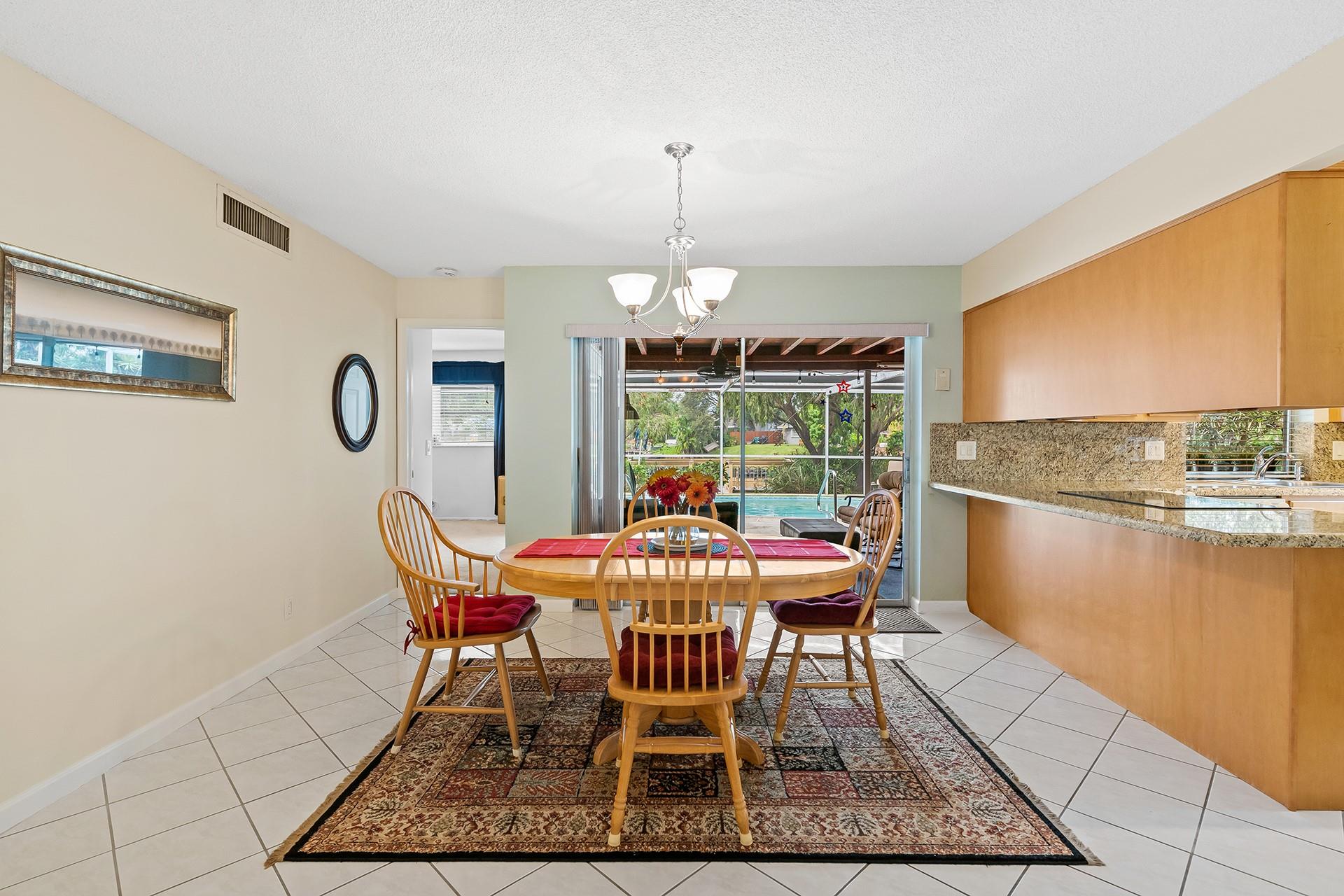 This charming 3 bedroom 2 bathroom lake front home is located in the desirable Palm Aire Village West. Enjoy stunning water views from your own private dock, perfect for fishing, or simply relaxing and taking in the scenery. Unwind on warm summer days with a swim in your screened-in pool or entertain friends and family at the outdoor dining area. Inside you will find an eat-in kitchen with plenty of counter space as well as a formal dining room. Plus, this home also features an attached garage and recently updated bathrooms for added convenience. Don’t miss out on this amazing opportunity - schedule a viewing today!