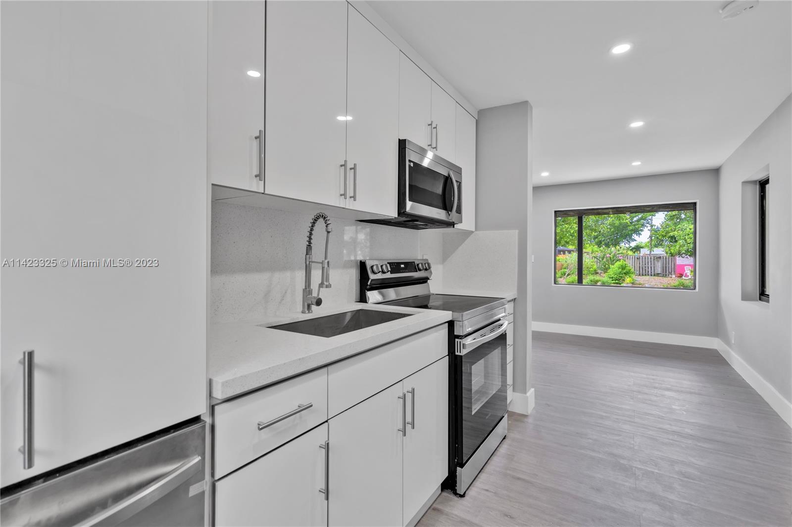 Tastefully updated cozy home with a modern theme ready to move in featuring 2 bedrooms / 1 bathrooms, located in a very quiet neighborhood minutes from the beach. As you walk in you are greeted with an open floor plan with a completely renovated kitchen featuring quartz countertops and SS appliances. New light fixtures, vinyl plank floors, and updated bathroom. Home features impact windows and doors, and a new AC. Roof replaced in 2015. Home also features a walk in laundry room and storage area with new washer & dryer. No HOA. Minutes from great schools, major highways, banks, and new shopping centers.