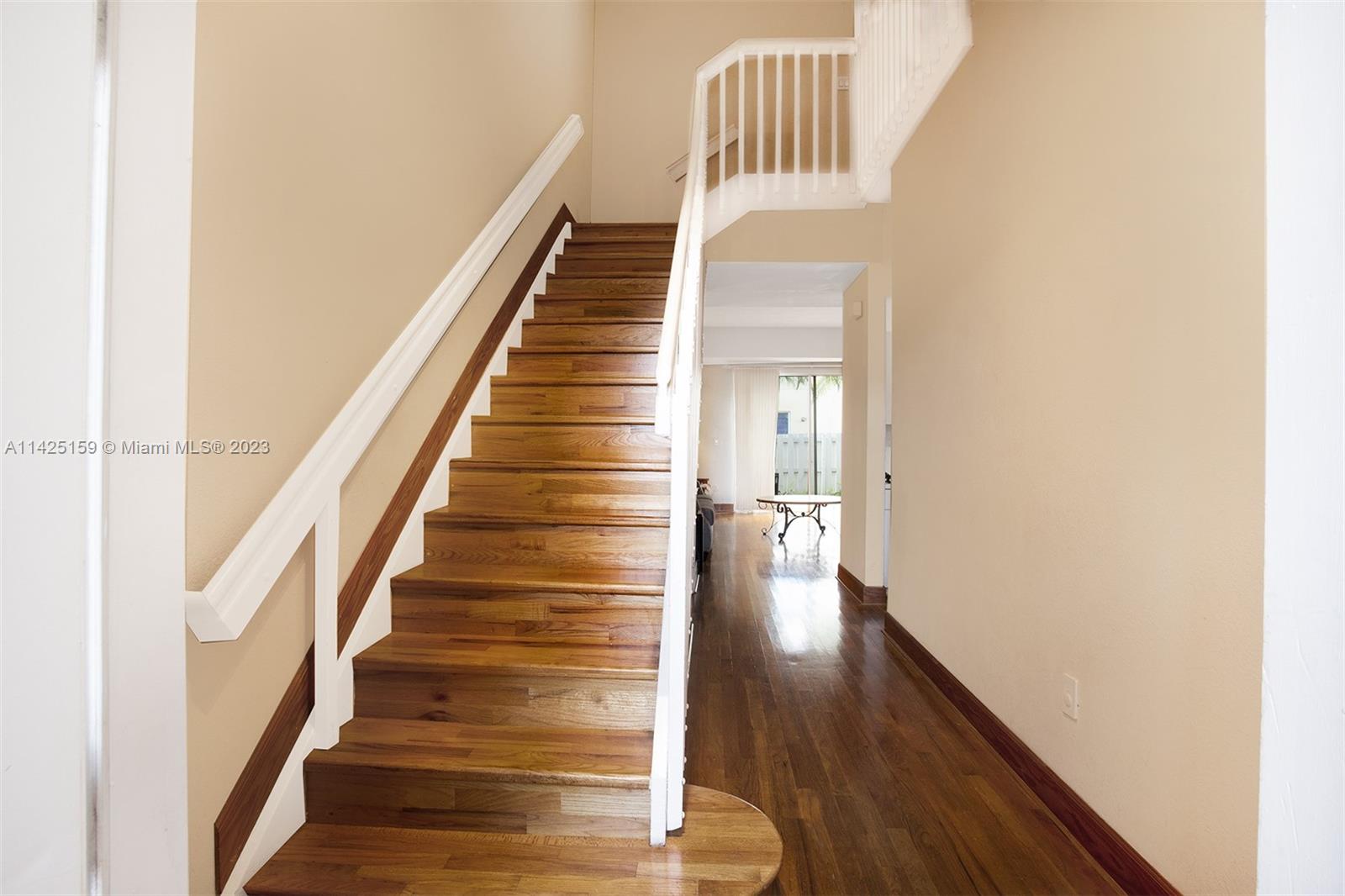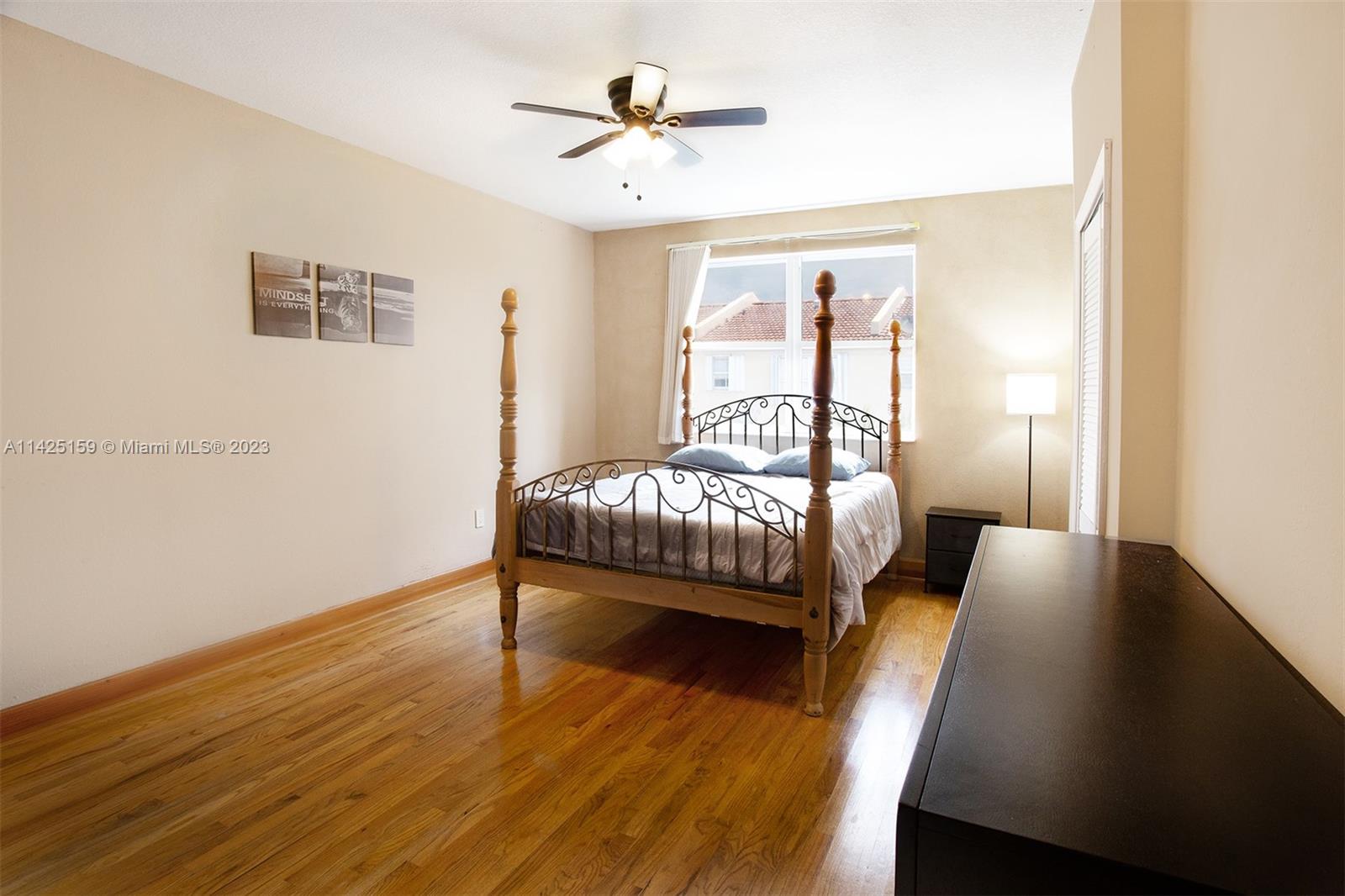 Welcome to Hawksnest of Eagle Cove, the Extremely desirable gated community in the heart of Doral. This Beautiful 2 Bedroom 2 1/2 Bath split level offers wood floors throughout the living spaces with natural light from every room. This home features an open view kitchen with Range/Oven, Microwave, Refrigerator, Dishwasher and Full size Washer/Dryer Room. The garage has been converted to a bonus room with A/C. Entertain your family and friends in the spacious living room with ample space on your private fenced and paved patio. Two Master baths and walk-in closets upstairs for privacy. One bathroom has Double sinks and a circular Bathtub. The community pool is just steps away. Very low HOA $178.mo. Great Schools, Supermarkets, Restaurants and easy access to Highways with so much more to do.