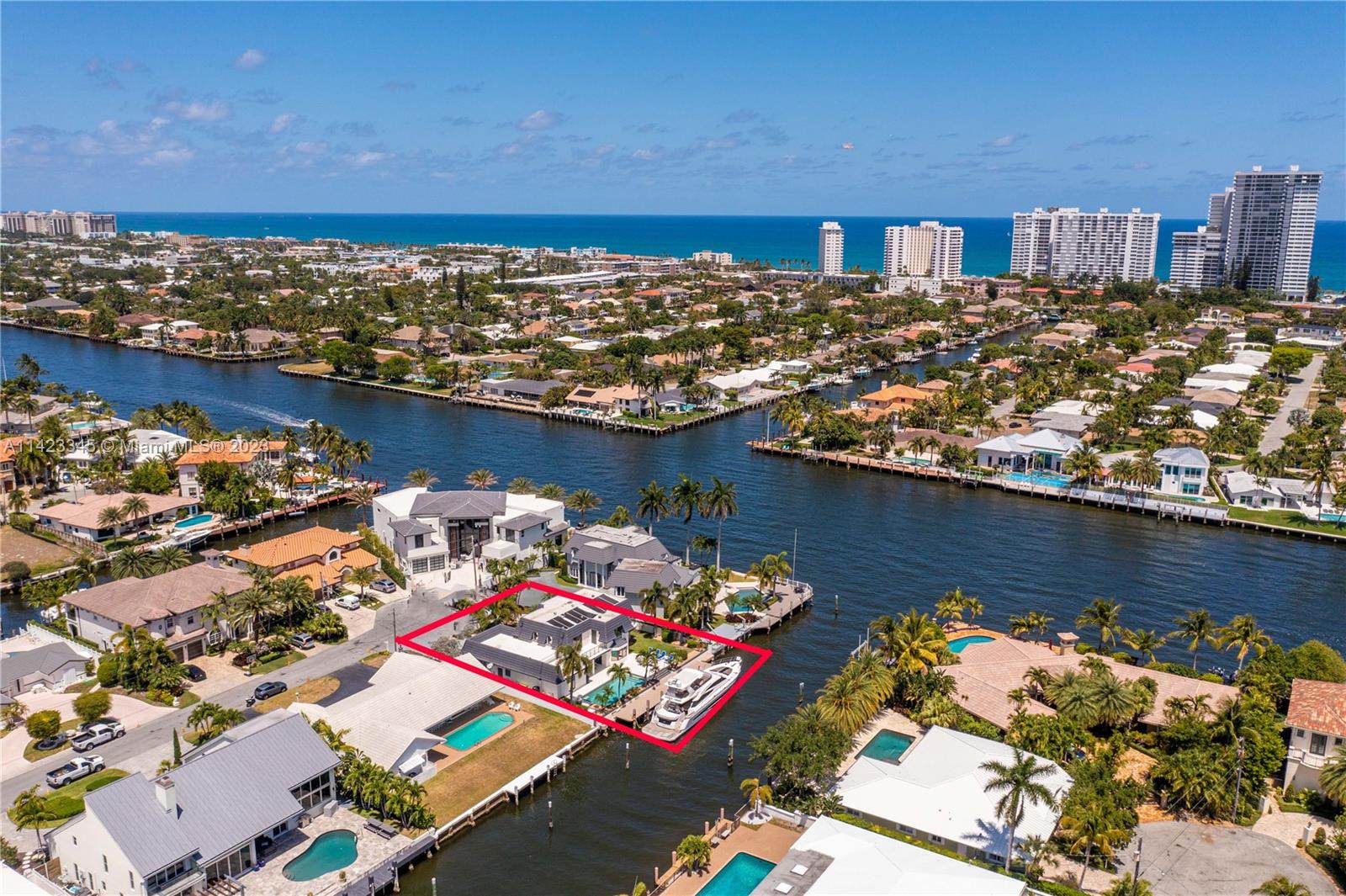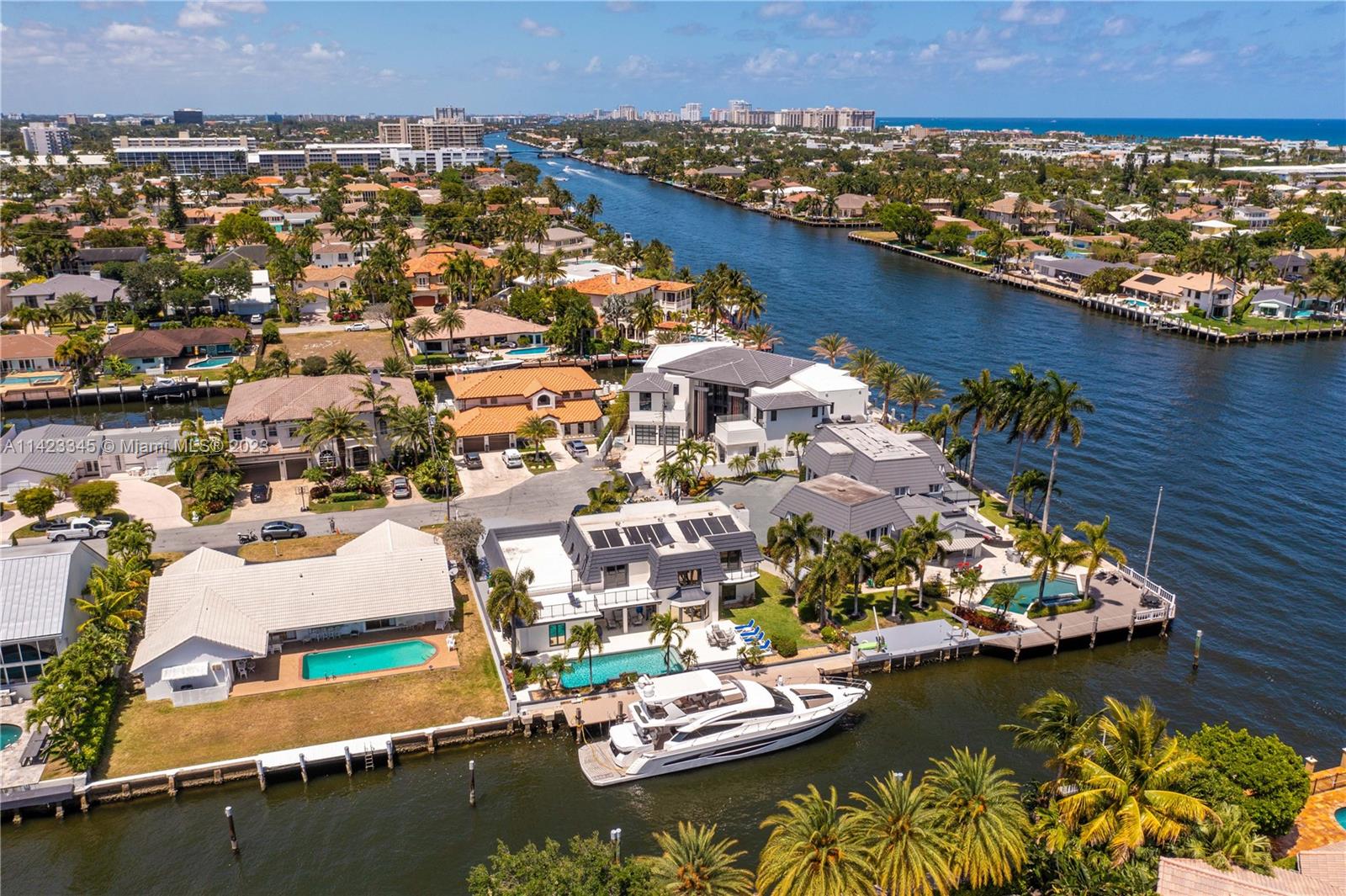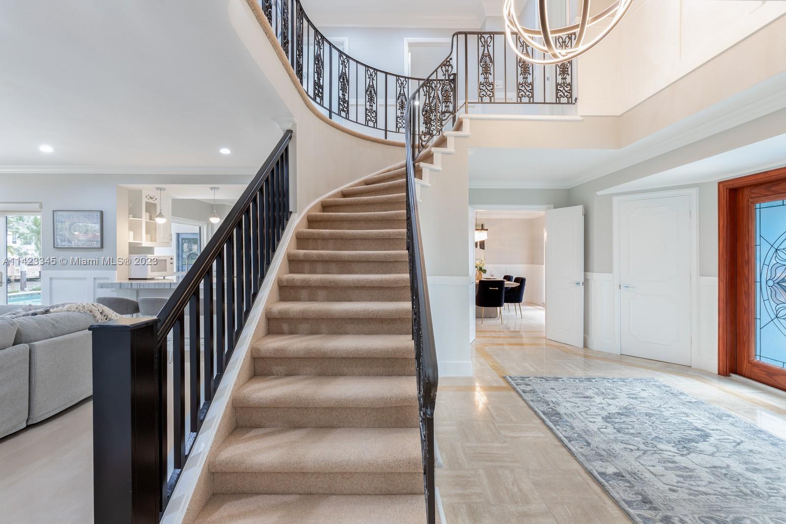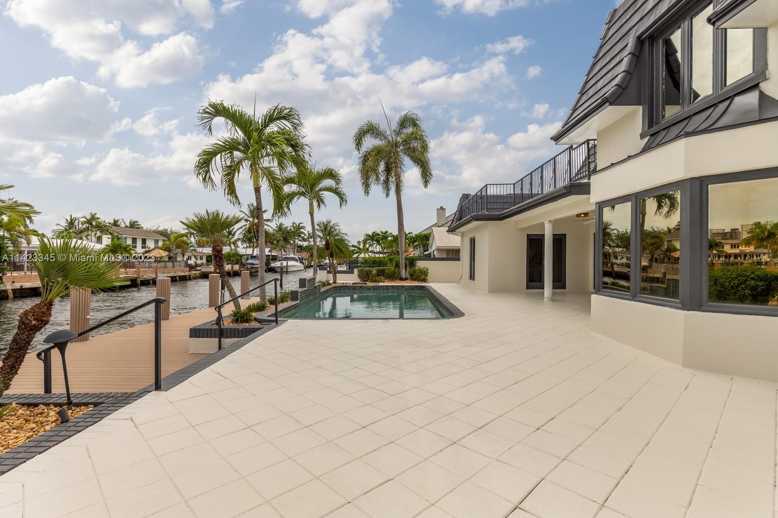 Welcome to this exquisite waterfront home with a pool, nestled in the highly prestigious Coral Ridge Country Club community. This stunning home embraces the epitome of waterfront living, offering breathtaking views of the sparkling waters from nearly every angle. Whether you're gazing out from the living room, kitchen, or master suite, you'll be captivated by the serene beauty of the water. 90' of Trex dock provides the perfect spot to dock your yacht and sets the stage for unforgettable boating experiences along the Intracoastal Waterway. The homes layout is thoughtfully designed, seamlessly blending comfort with elegance. Enter through the formal double door with a grand circular staircase. The open kitchen seamlessly integrates with the living and dining area.
