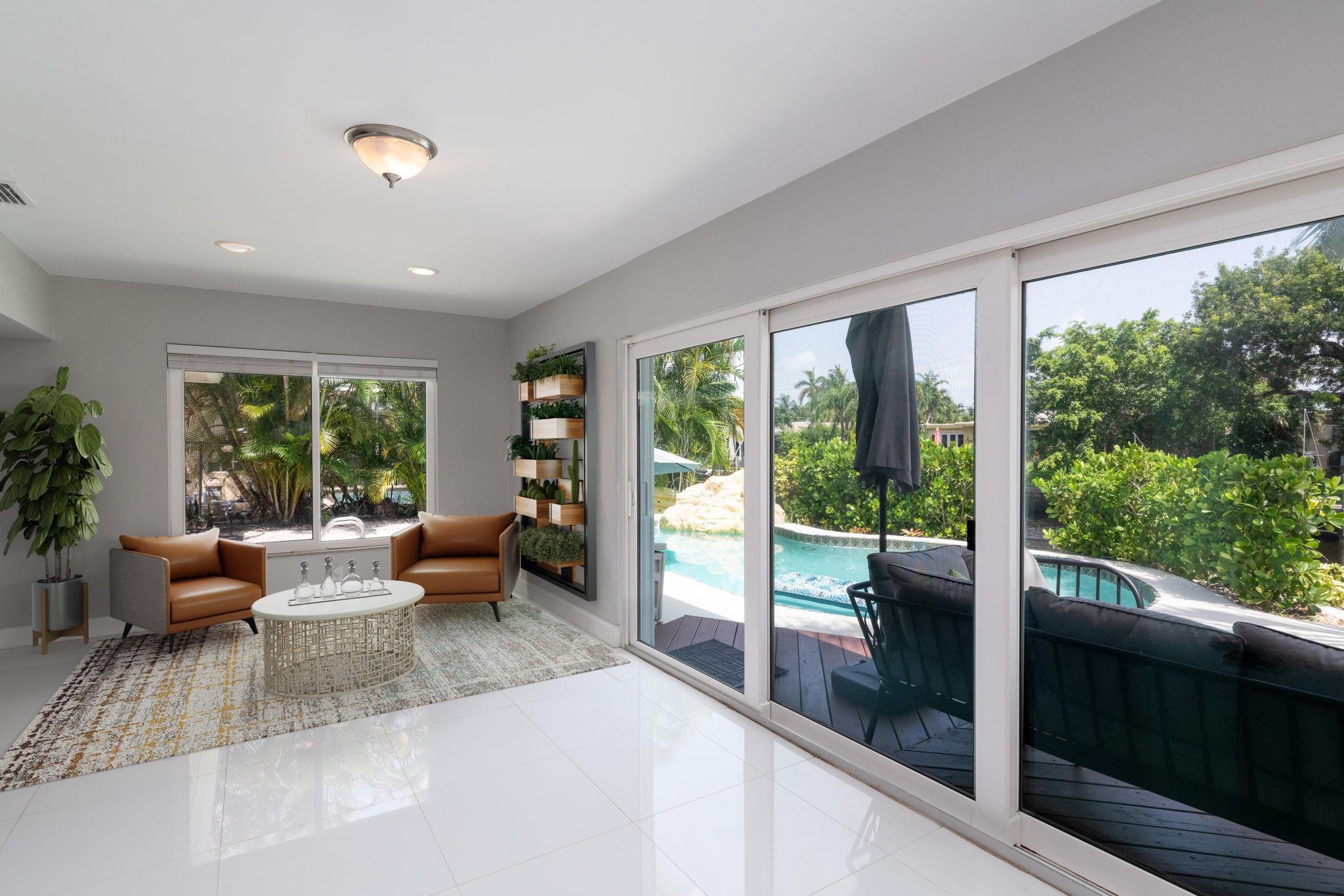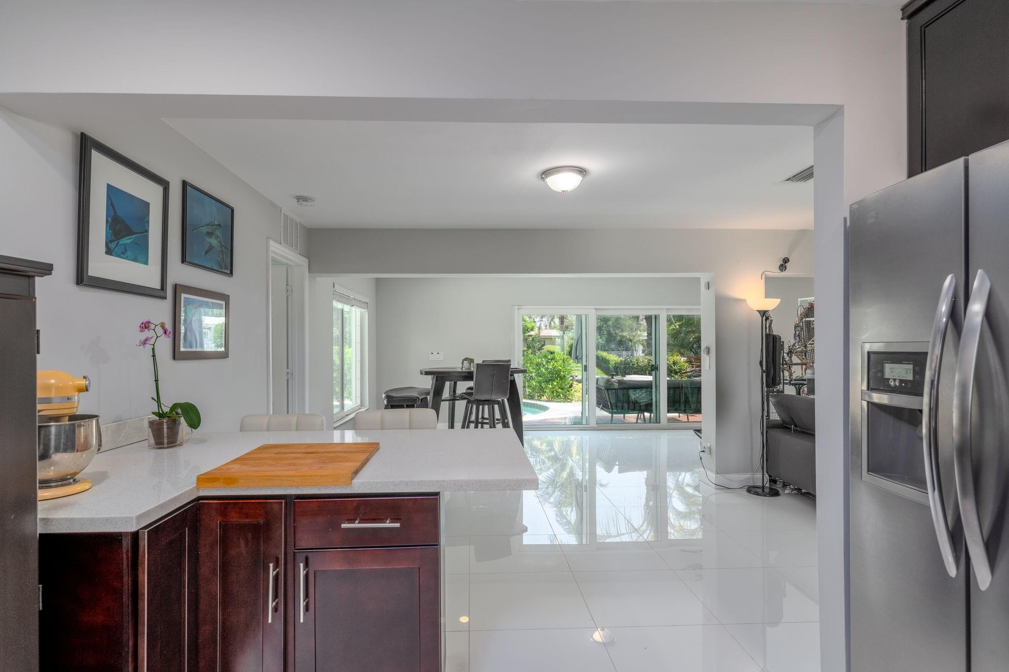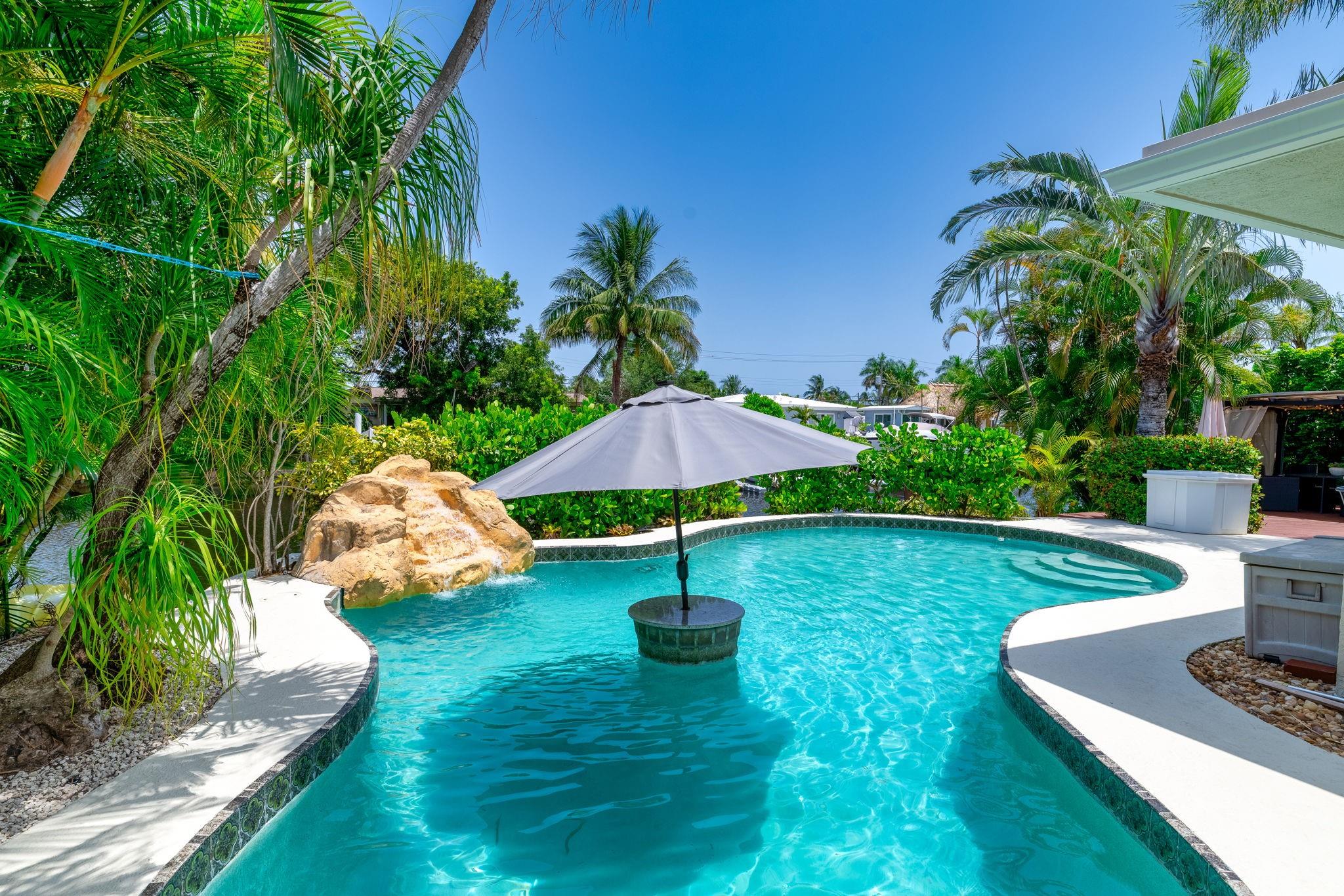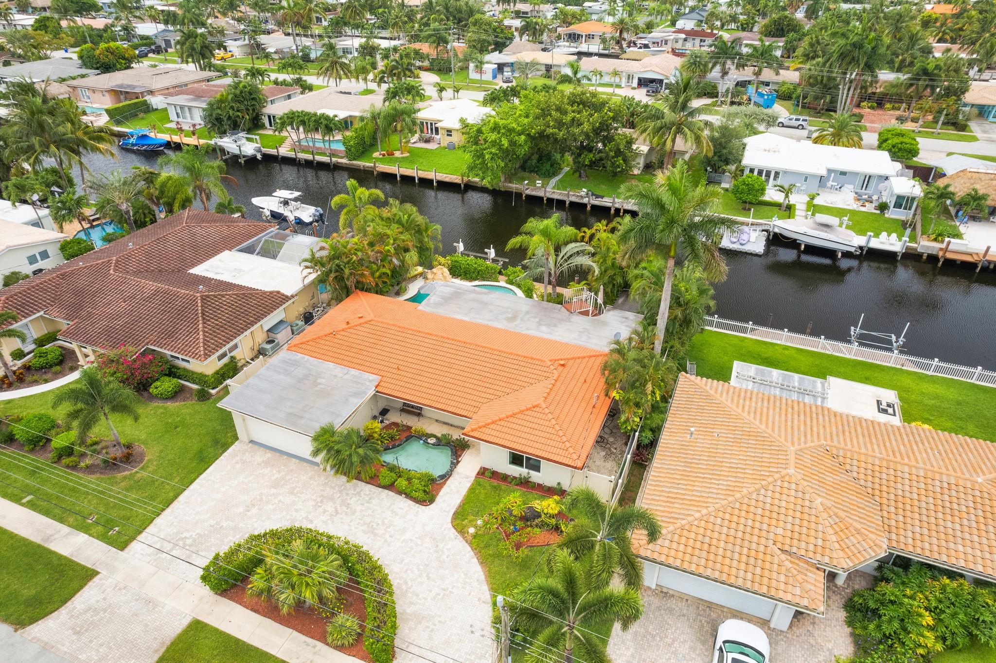 True Florida living abounds in this bright updated open plan 4bed2.5bath pool home on quiet cul-de-sac. Enjoy 75' of frontage on a wide ocean access canal with 10,000lb boat lift and 11 foot clearance at high tide. Large white tile floors with modern vinyl flooring in the bedrooms. Kitchen has new countertops. Primary bath enjoys new dual sinks and custom tile shower with rain fall and body jets. Large curved paver drive with two car garage. Impact windows, doors and garage door. Generator ready! Heated pool! Complete fresh paint inside and out top to bottom. Seawall footer four years new. Relax and enjoy your pool, pergola and water view day or night on a freshly painted wood deck. Come take a look! This one won't disappoint.