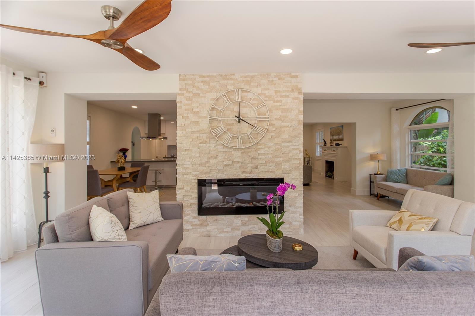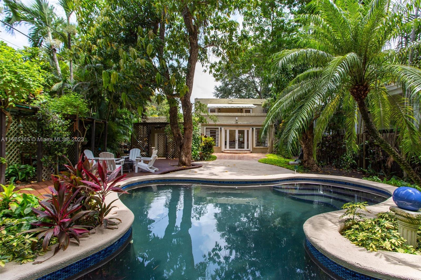 Renovated 1925 Old Spanish Two-story 3/2 with 150' deep lot and pool in prime Coral Gables location! The first floor comprises the foyer entry, spacious formal living room w/ fireplace, family room in the back of the home with views of the deep lot and pool, formal dining room off the renovated kitchen, and 1 full bath. Upstairs consists of 3 spacious bedrooms w/ 1 full renovated bath and large balcony accessed by 2 bedrooms. Lush landscaping provides poolside privacy & creates a dreamy tropical lagoon style vibe. Detached 1 car garage. Close to Granada Golf Course, Country Club of Coral Gables, Miracle Mile, and all the amazing amenities The City Beautiful has to offer. Coral Gables Living!