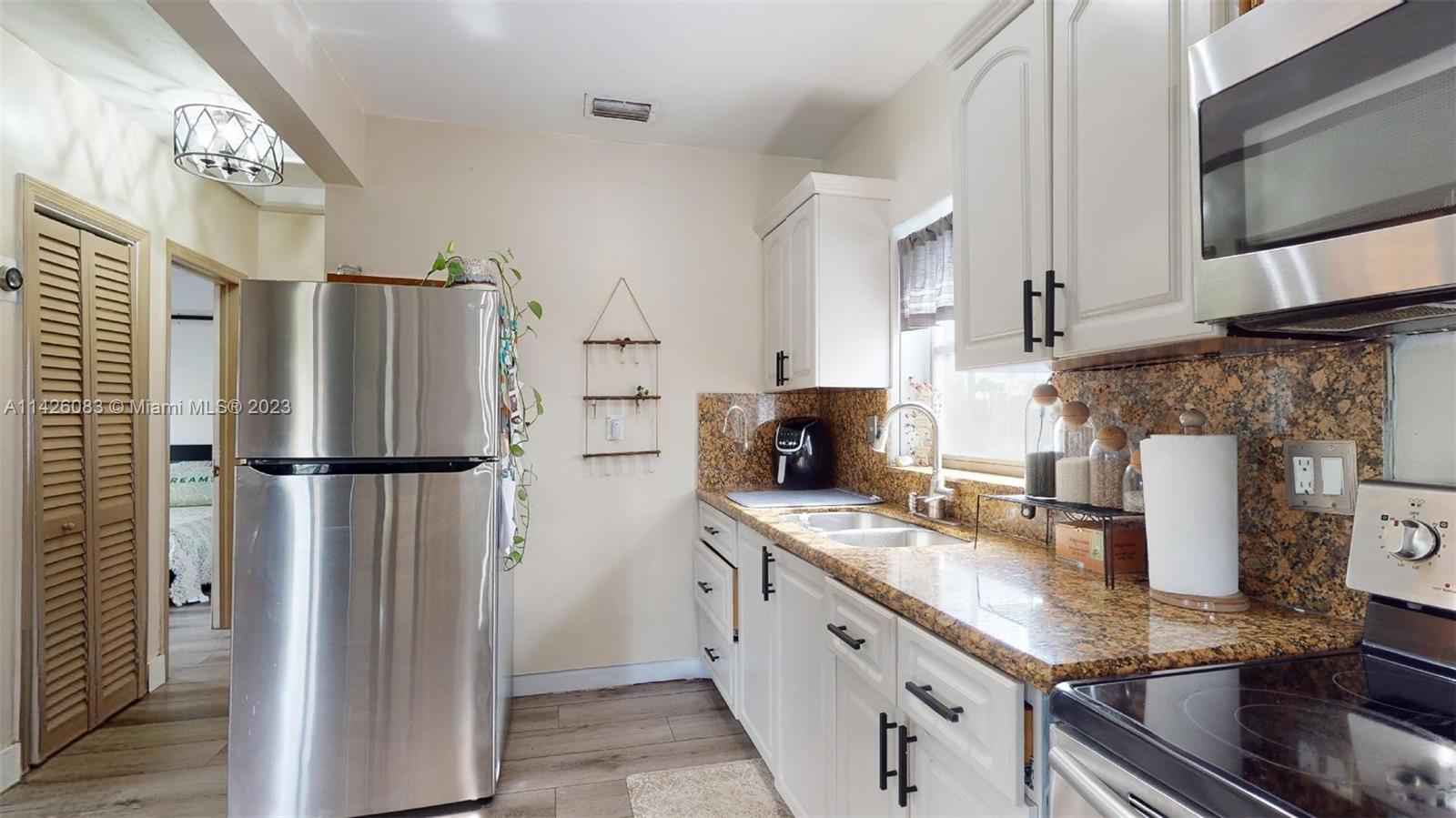 Updated 2 Bedroom 1.5 Bath with Carport and Front Porch. This home features Vinyl flooring throughout, updated kitchen with granite counter top, hurricane impact windows, Roof installed in 2021. A/C about 6 yrs old, with electronic filler and UV light, tankless water heater, upgraded electrical system, new aluminum fence, new shed. Two Houses from Canal. Beautiful Wide Street with Grassed Median & Double Sidewalks. Near Public Park & Waterfront Bike Path. Close to City Pool & Recreation. Easy Walk to Schools, Shops & Worship. Right on MTA Bus Route. See Matterport Video in Broker Remarks GO TO SHOW ASSIST