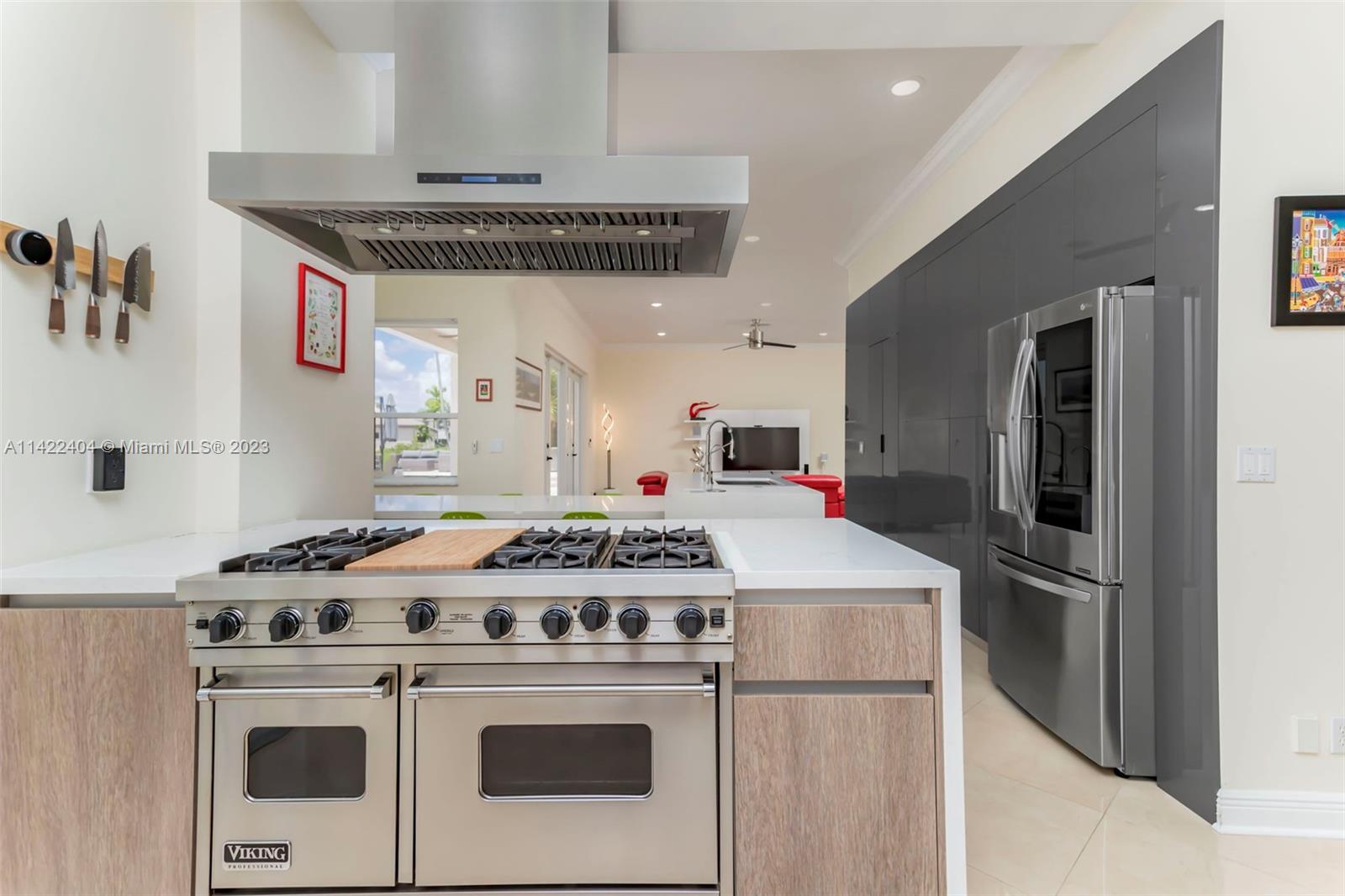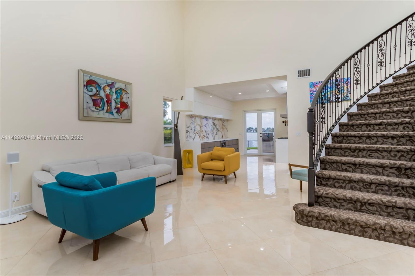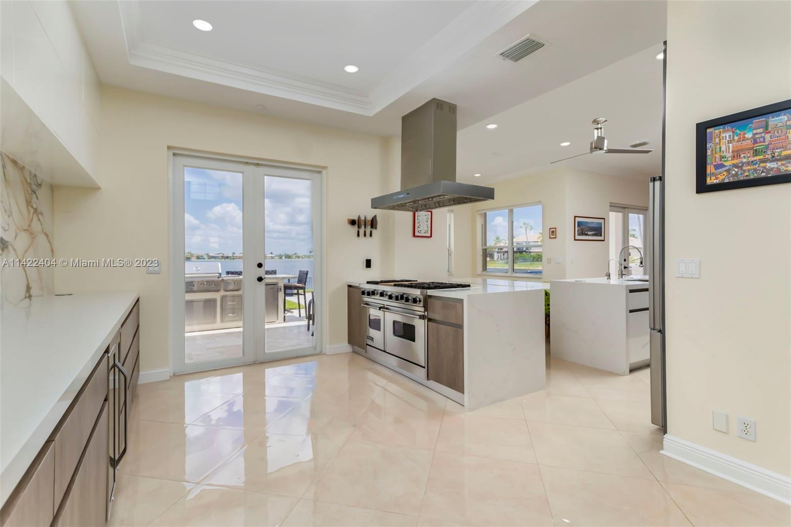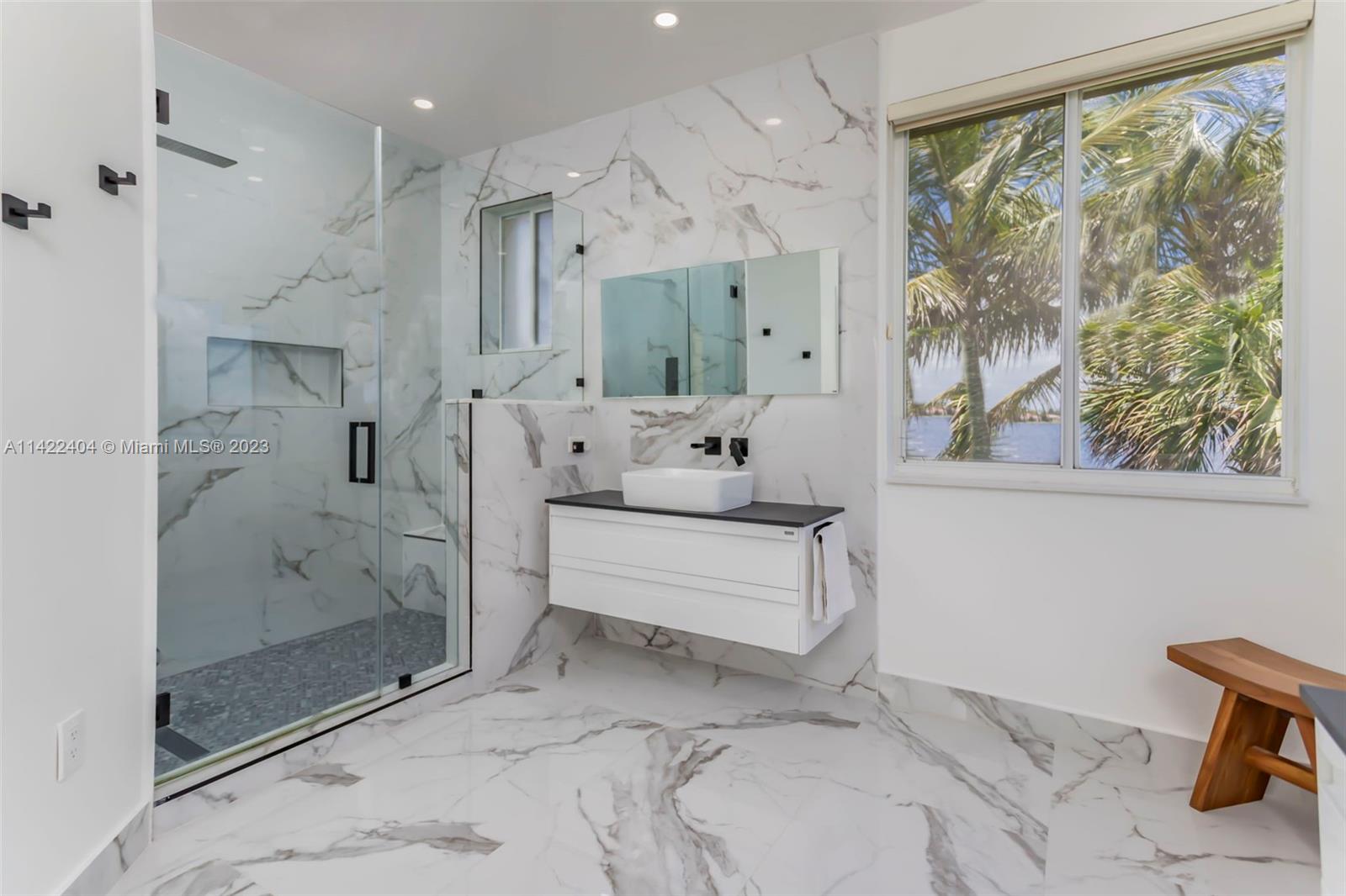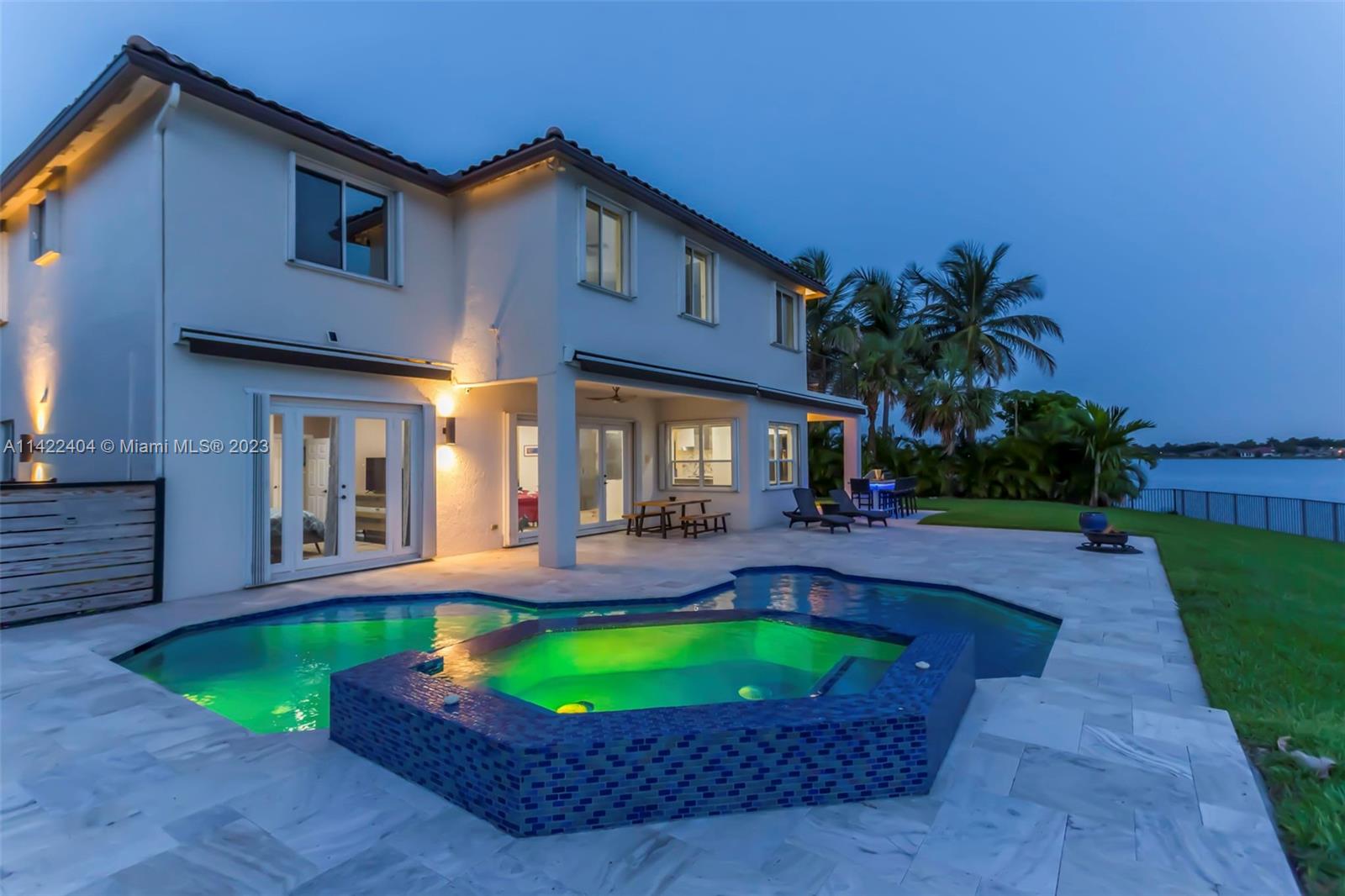Completely remodeled modern home in Sunset Lakes. This stunning property is the essence of luxury living. Its large circular travertine paved driveway & lush landscape welcomes you. Enter the custom wrought iron doors & be captivated by the grand staircase. Main level features 3 bedrooms & cabana bath. Kitchen is completely upgraded w/ new quartz countertops, a gas stove, SS appliances, a walk-in pantry & a generously sized island. The oversized primary suite includes a seating area & an extended balcony w amazing lake views. Elevate your living standards w the completely remodeled modern style primary bathroom. The backyard oasis includes automated awnings, an outdoor kitchen, heated saltwater pool & spa. ROOF 2020. Solar panels, generator & accordion shutters throughout.