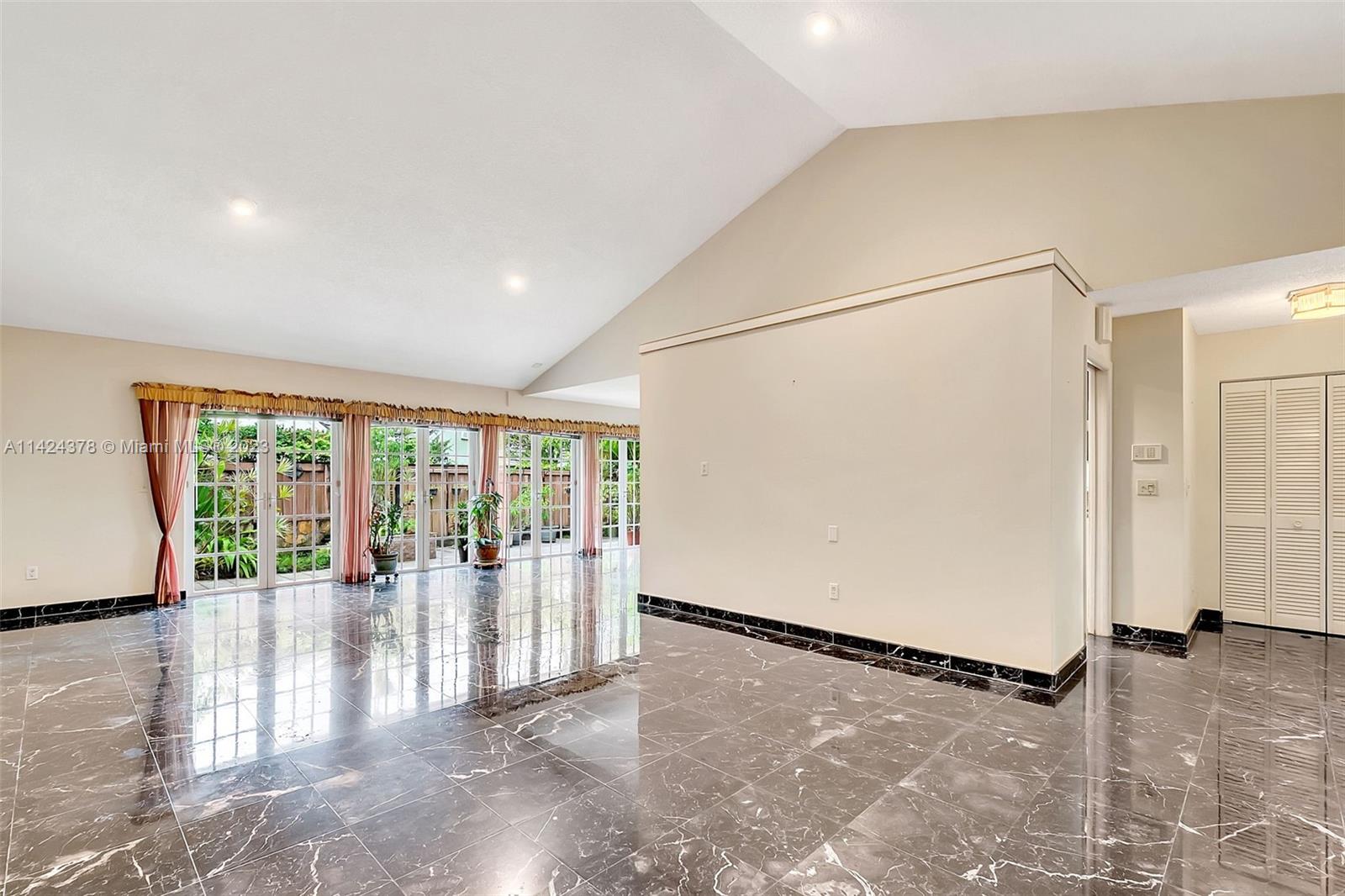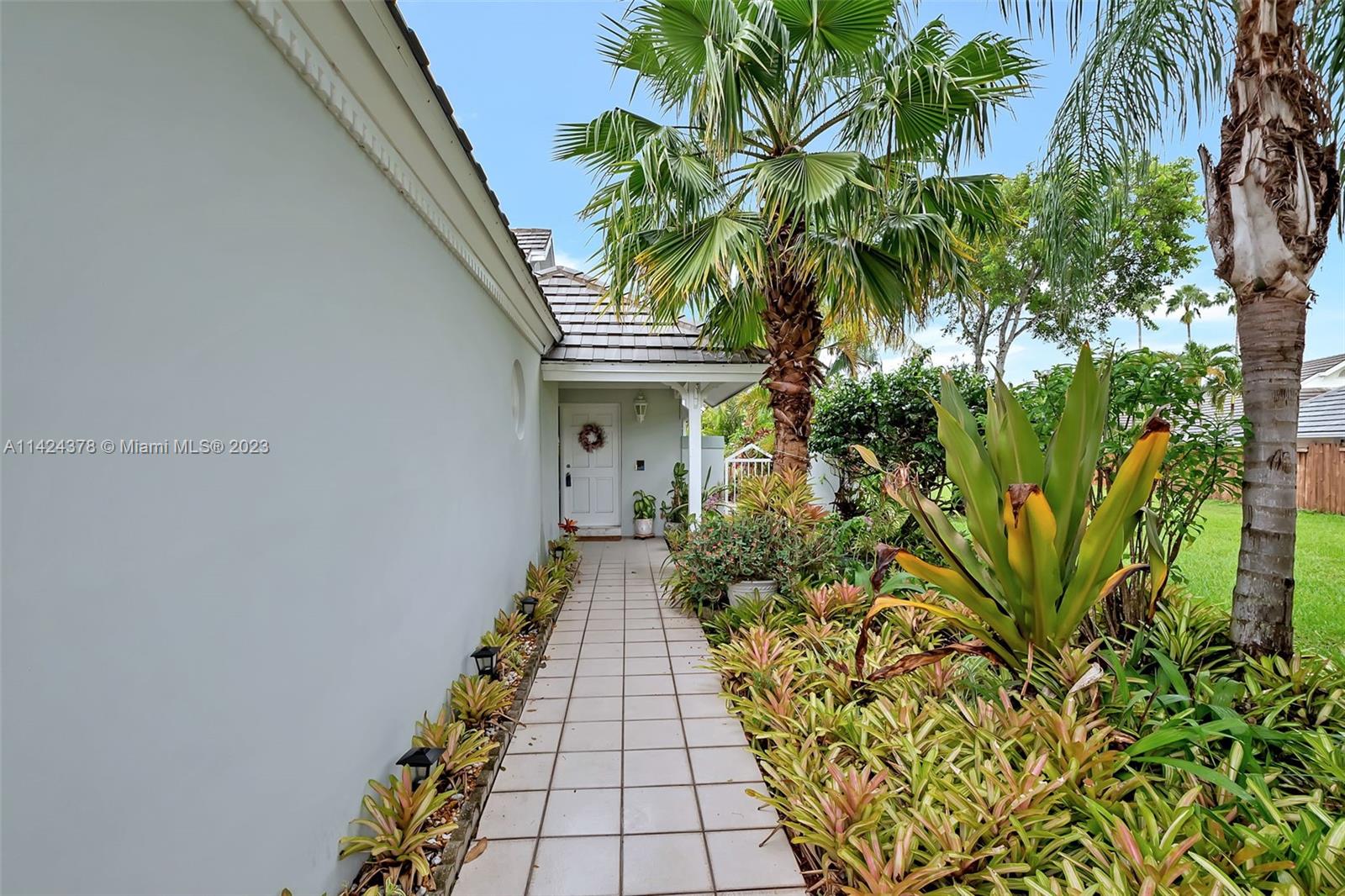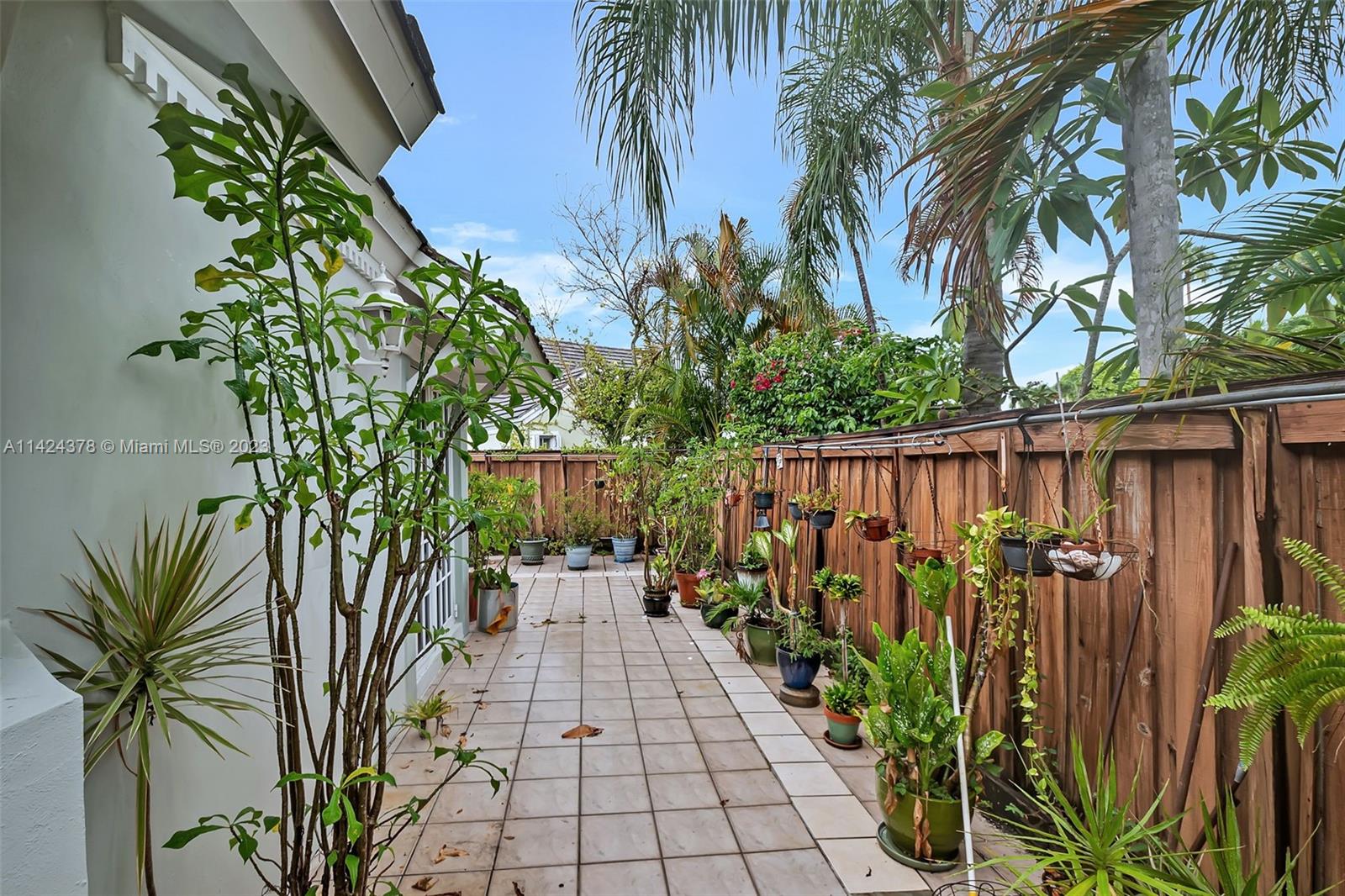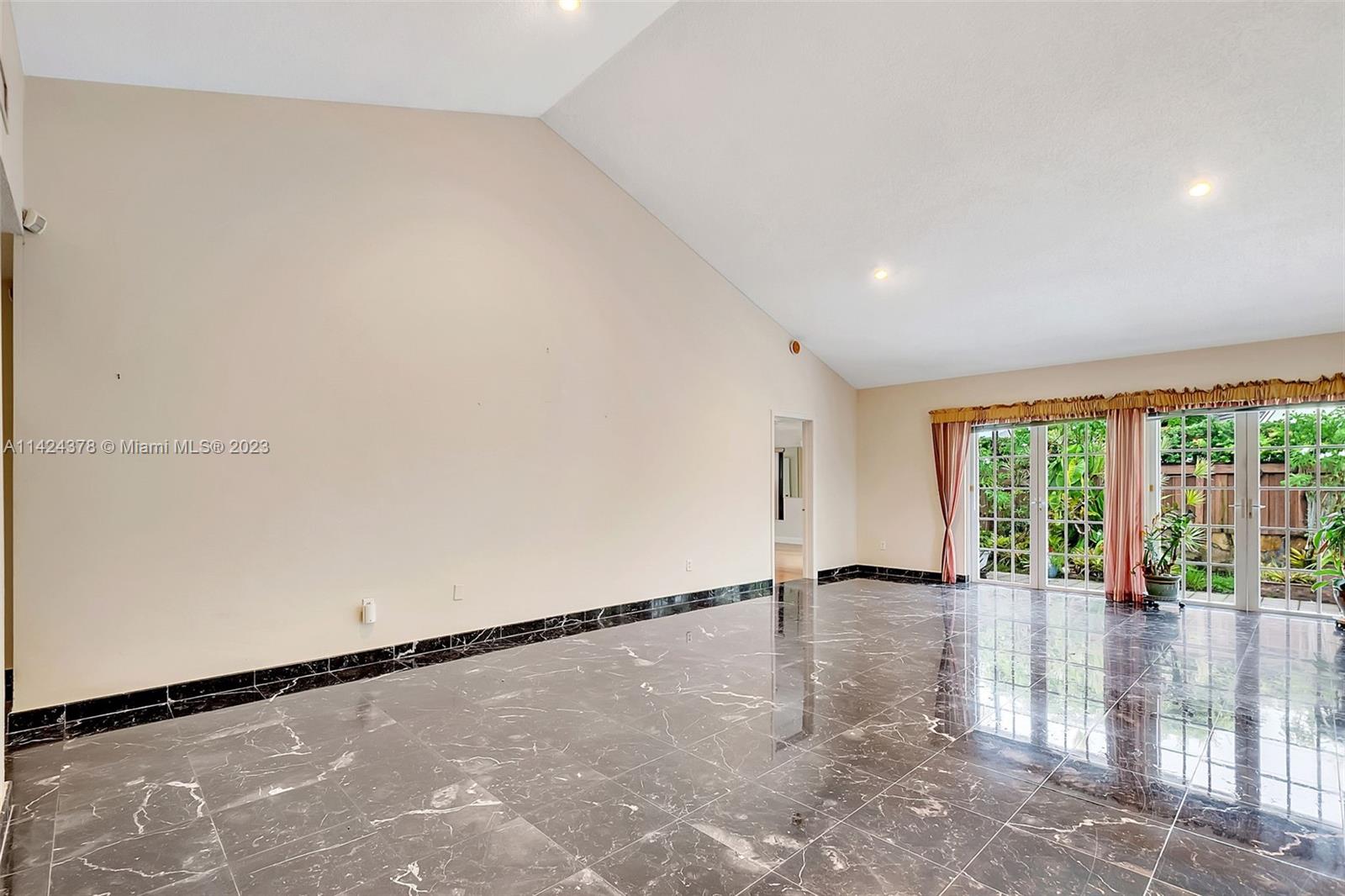 Amazing opportunity to own in sought-after Doral Woods. A prestigious secured, Country Club Gated community located in the heart of Doral. This spacious three bedroom, two bath home located at the end corner of a cul-de-sac, adjacent to the greenway with easy access to the community pool, clubhouse and playground, situated across an ample guest parking area. Home is located on a private corner lot with no back neighbor to your private yard/patio. Kitchen has been tastefully updated with stainless steel appliances and granite countertops. Open floor plan, with high ceilings, and multiple French doors leading to your private patio oasis. Oversized bedrooms and bathrooms. laundry room, Titan water Heater, plus a two-car garage. Do not miss out on this one! Easy to show, call listing agent.