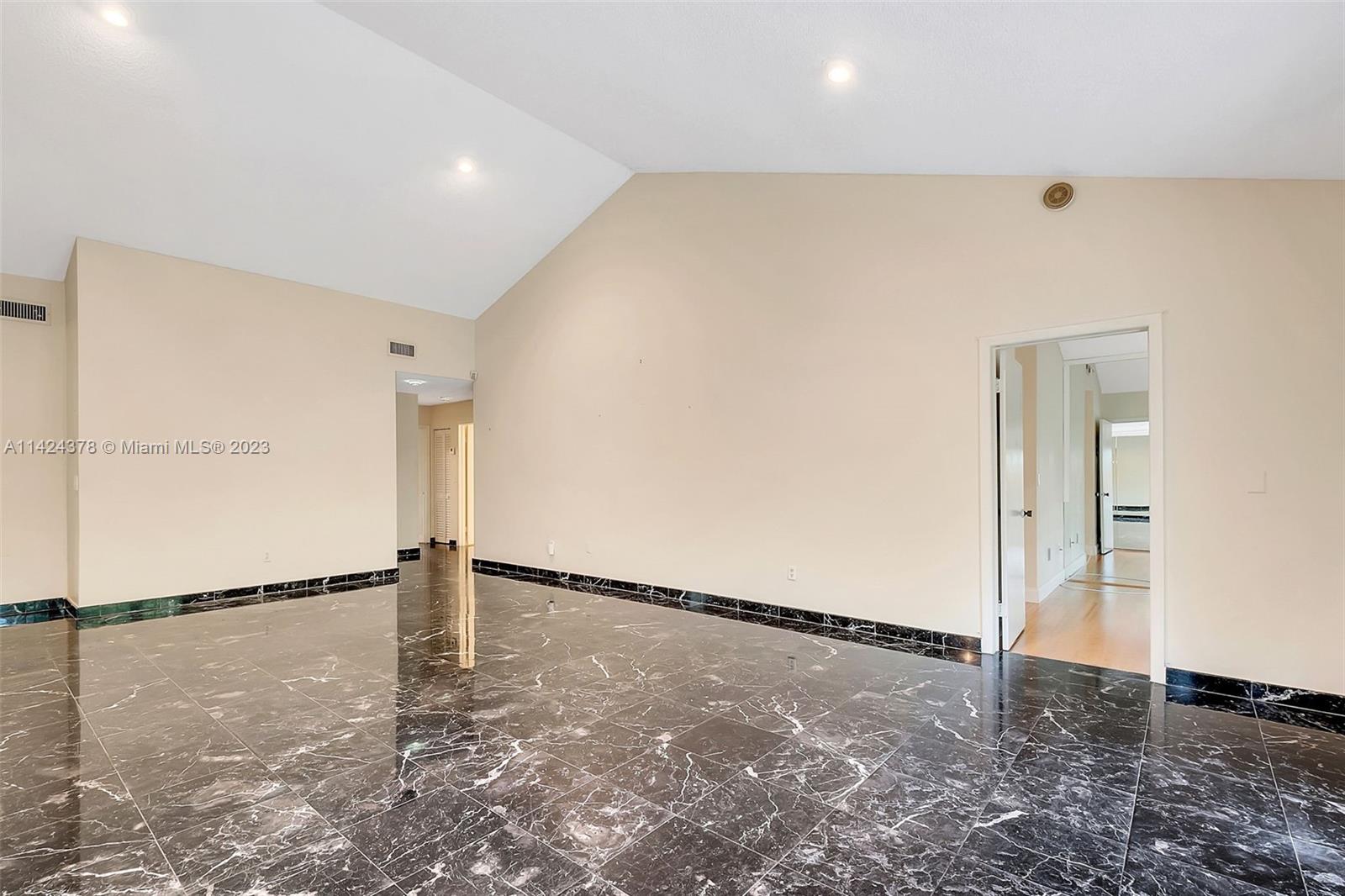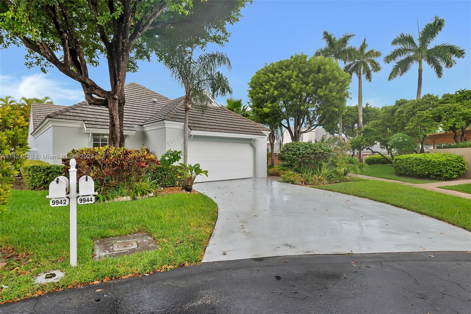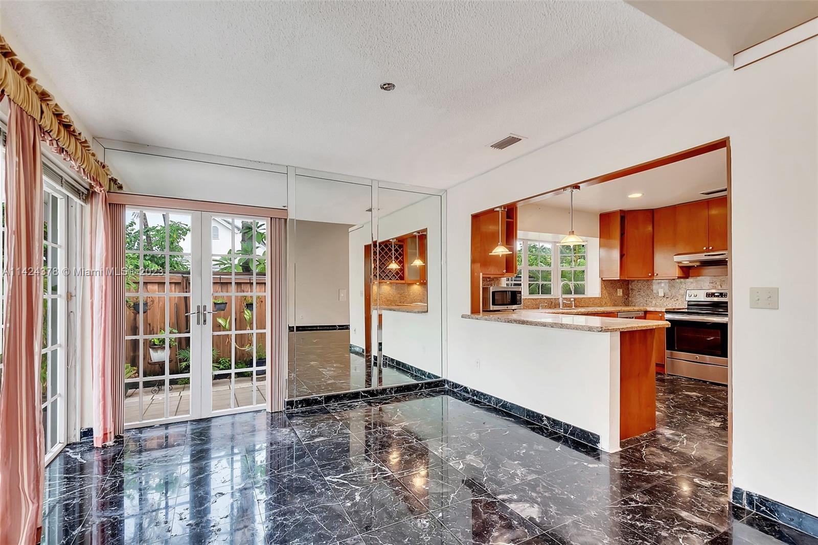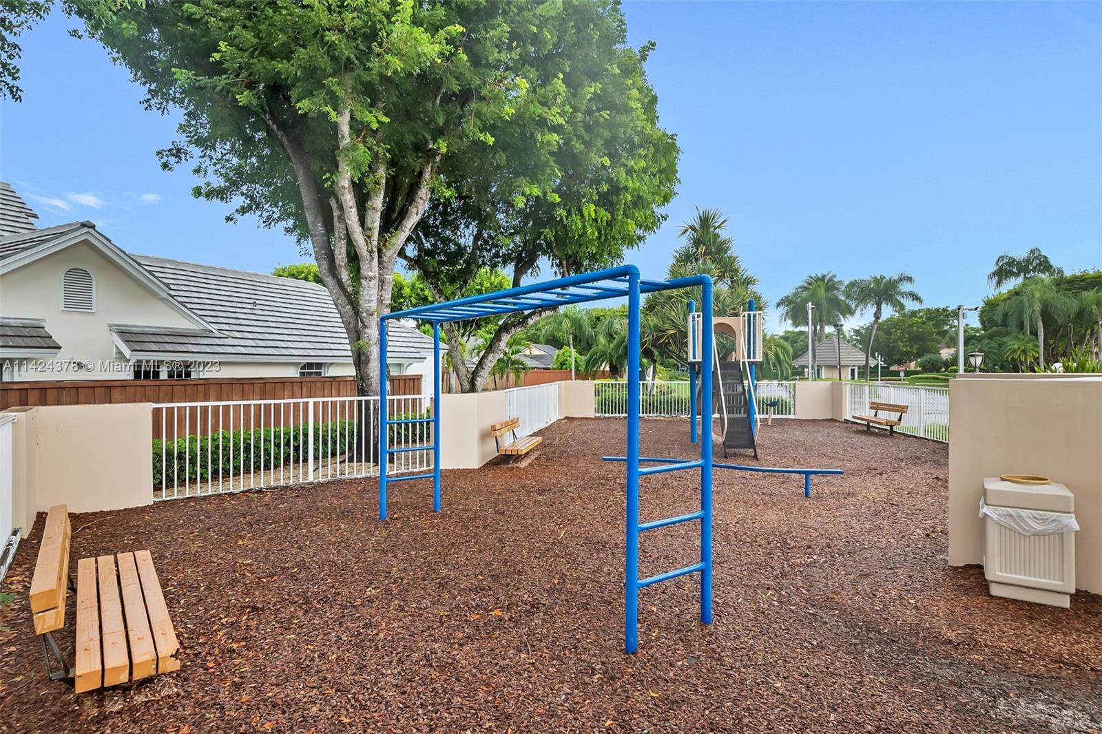 Amazing opportunity to own in sought-after Doral Woods. A prestigious secured, Country Club Gated community located in the heart of Doral. This spacious three bedroom, two bath home located at the end corner of a cul-de-sac, adjacent to the greenway with easy access to the community pool, clubhouse and playground, situated across an ample guest parking area. Home is located on a private corner lot with no back neighbor to your private yard/patio. Kitchen has been tastefully updated with stainless steel appliances and granite countertops. Open floor plan, with high ceilings, and multiple French doors leading to your private patio oasis. Oversized bedrooms and bathrooms. laundry room, Titan water Heater, plus a two-car garage. Do not miss out on this one! Easy to show, call listing agent.