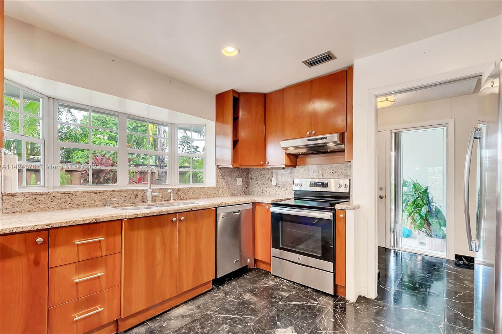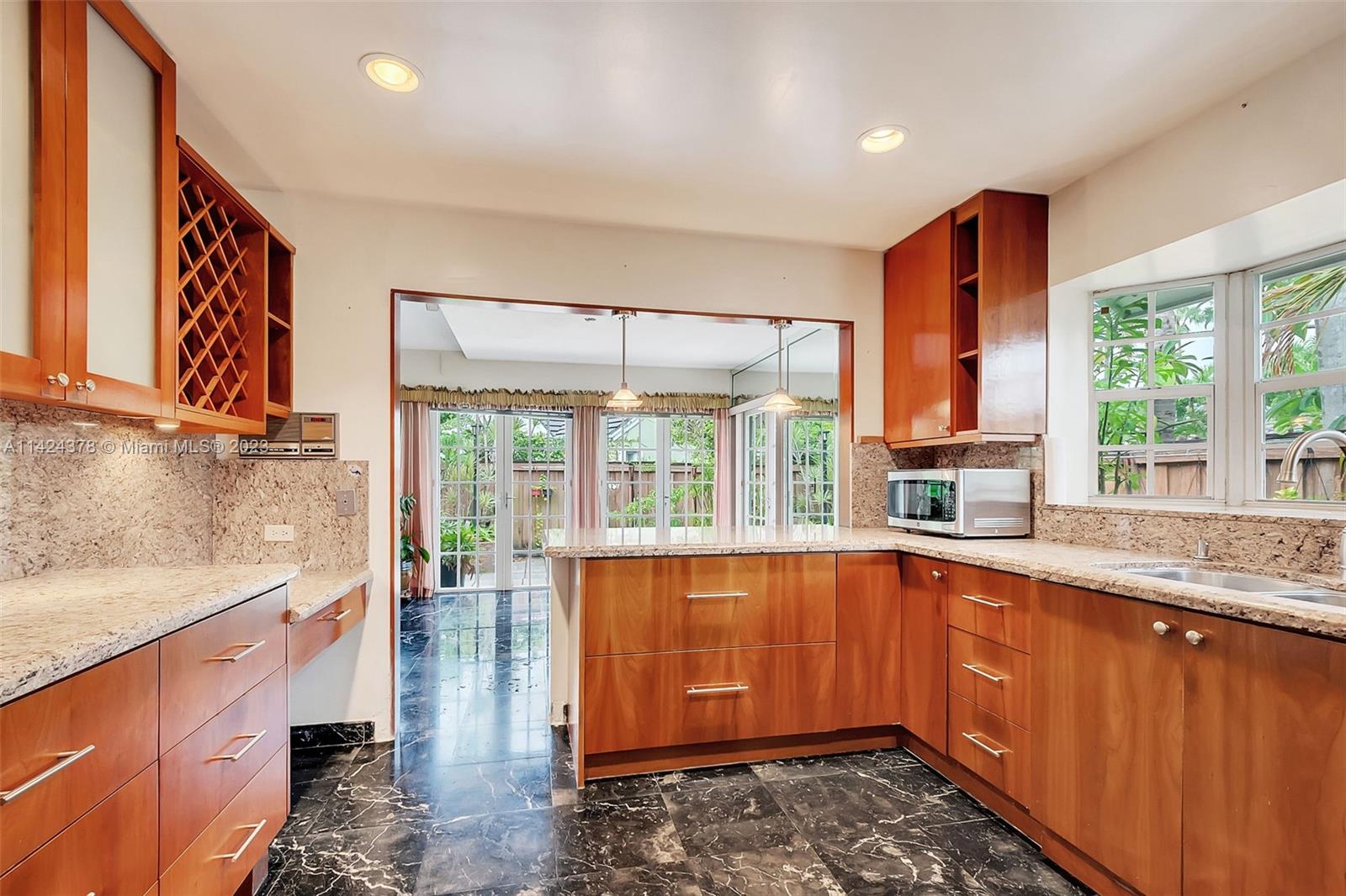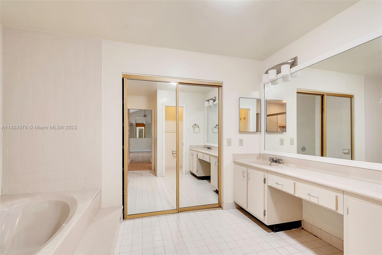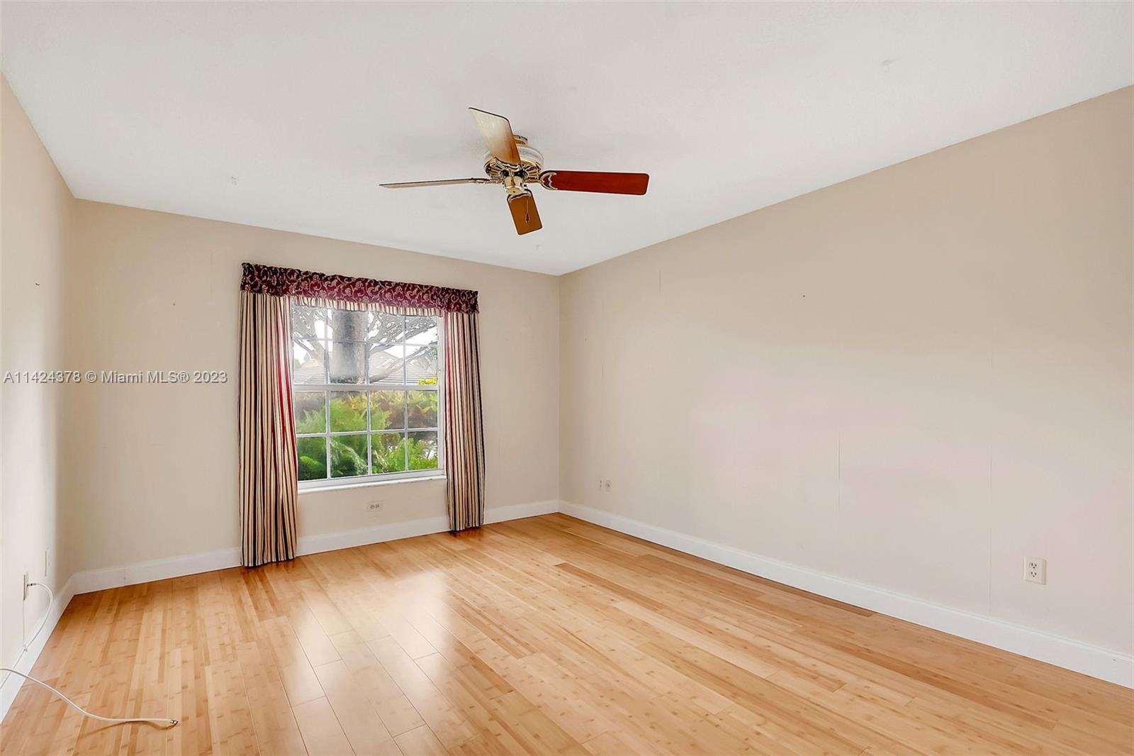 Amazing opportunity to own in sought-after Doral Woods. A prestigious secured, Country Club Gated community located in the heart of Doral. This spacious three bedroom, two bath home located at the end corner of a cul-de-sac, adjacent to the greenway with easy access to the community pool, clubhouse and playground, situated across an ample guest parking area. Home is located on a private corner lot with no back neighbor to your private yard/patio. Kitchen has been tastefully updated with stainless steel appliances and granite countertops. Open floor plan, with high ceilings, and multiple French doors leading to your private patio oasis. Oversized bedrooms and bathrooms. laundry room, Titan water Heater, plus a two-car garage. Do not miss out on this one! Easy to show, call listing agent.