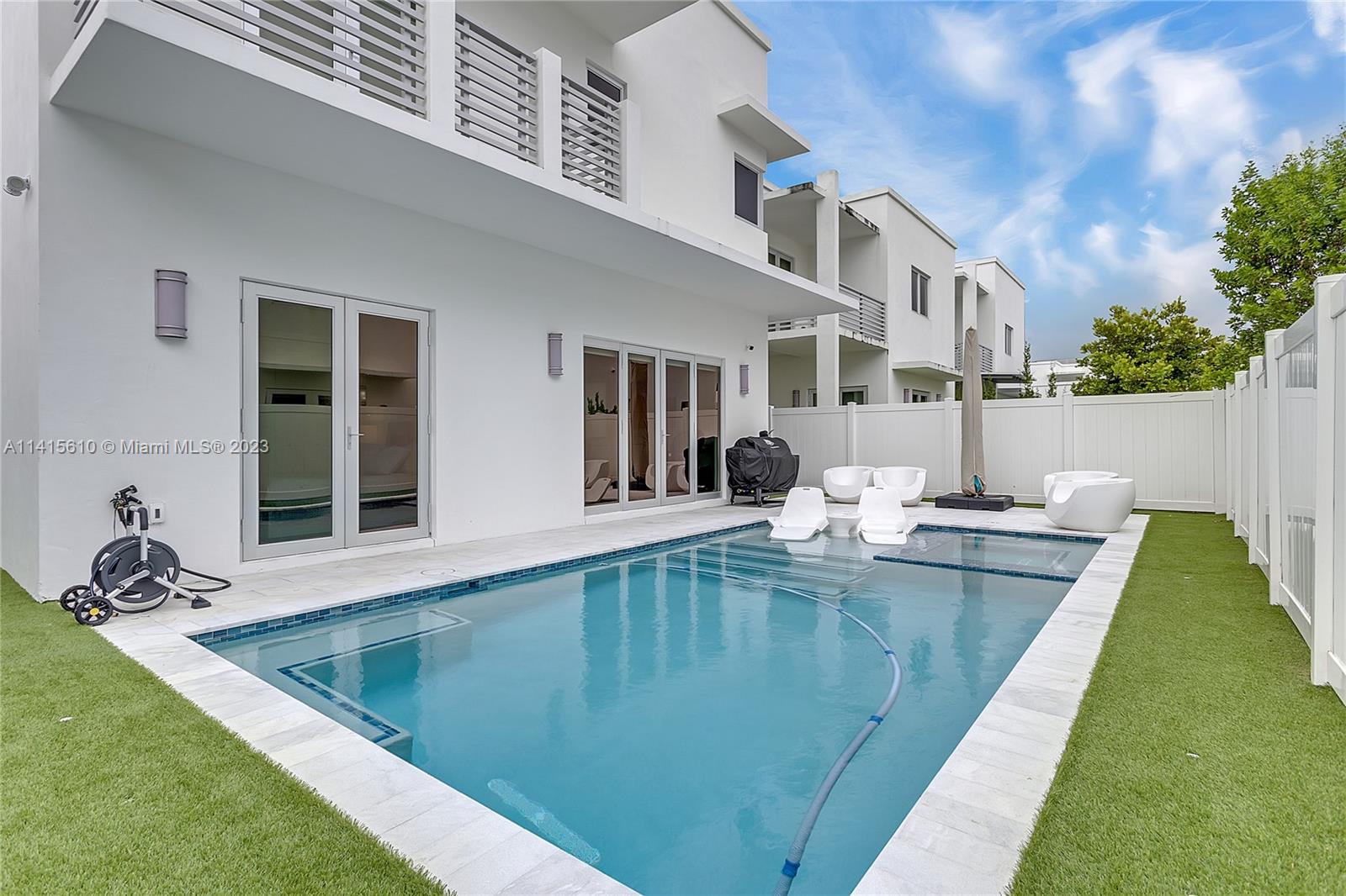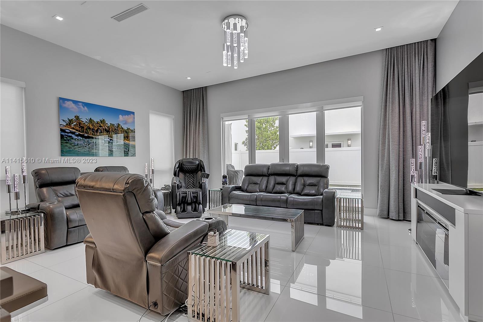 Welcome to this modern marvel in Oasis Park Square at Doral. This property features 5 bedrooms, 5.5 bathrooms, a pool, and a bonus roof deck with panoramic views. Inside, enjoy sleek design, a glass wine room, and open living spaces. The master suite offers a spacious retreat with an ensuite bathroom. Remaining bedrooms are generously sized for comfort. The backyard features a pool for sunny days. Note: Sale includes furniture. Massage chair in the living room and kobalt workbench and tool boxes do not convey.