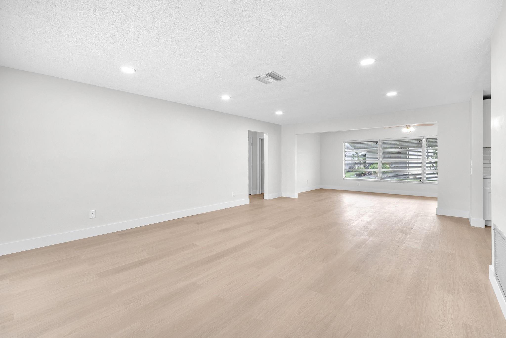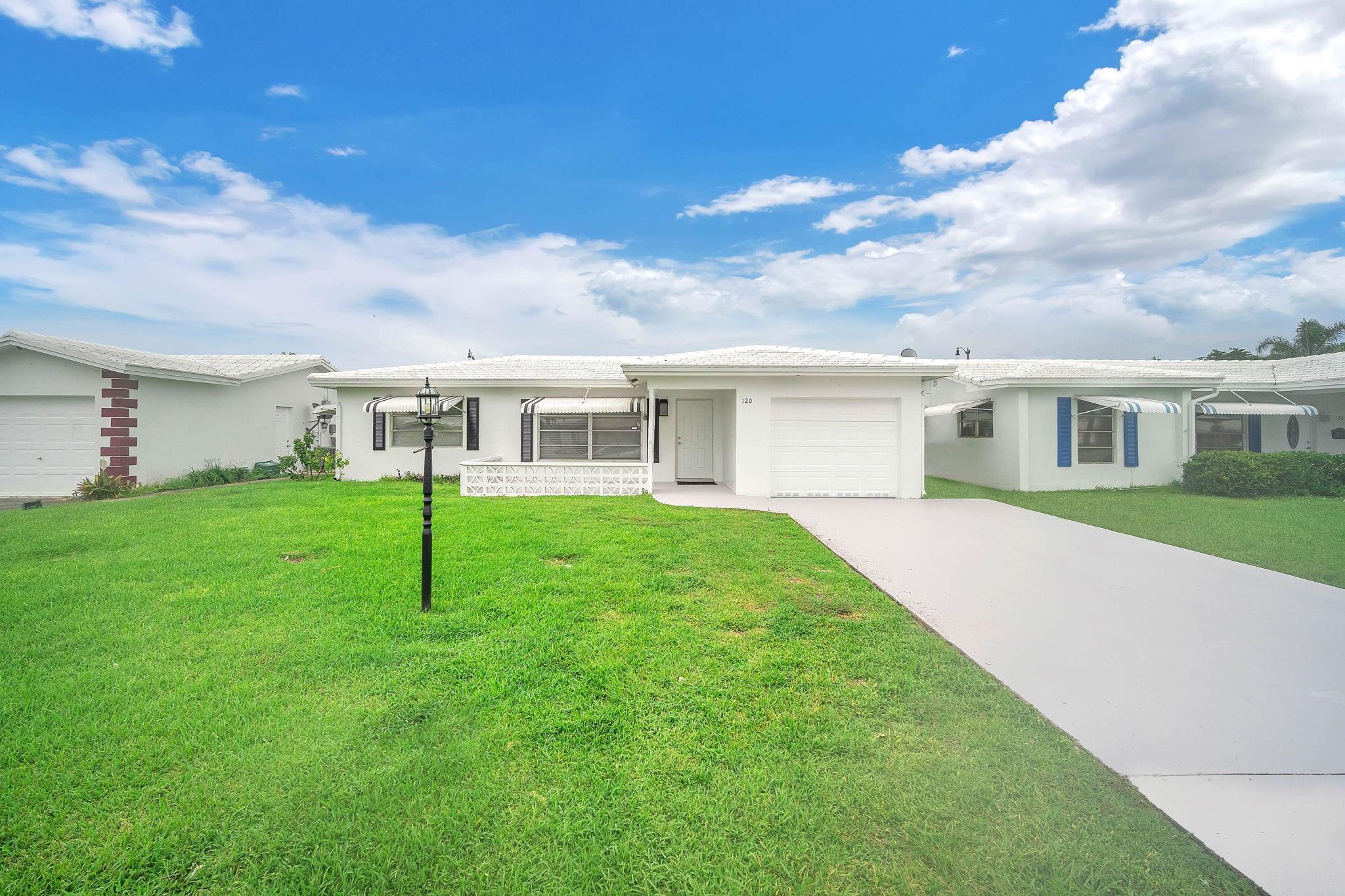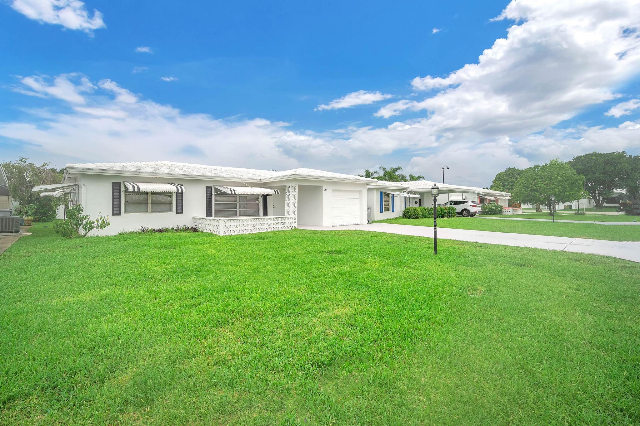 Beautifully updated 2/2 home with brand new roof. Property offers open floor plan including updated bathrooms & kitchen with quartz countertops & brand new SS appliances. Home is fully hurricane protected with new roof in 2023, AC 2019 & accordion shutters (install prior to closing). Interior, exterior & garage are freshly painted. Home is like new & 100% move in ready. Community is pet friendly & includes 2 clubhouses, pools, saunas, gym, shuffleboard, bocce ball, courtesy bus, painting exterior of home, sprinklers & resident only access to golf on community private 9-hole course. Wonderful 55+ community & great location. NO land lease. Easy to show.